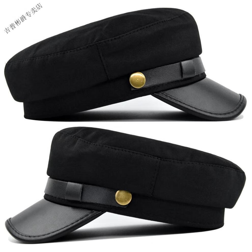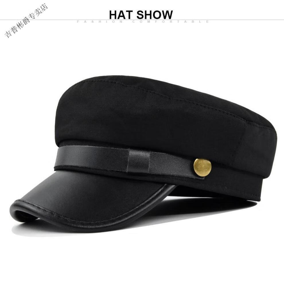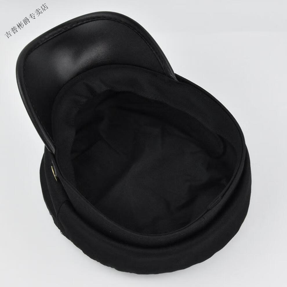 JEEP SPIRIT hat men's autumn and winter beret autumn and winter metal buckle octagonal hat octagonal hat woolen hat flat hat Republic of China trendy style BE123-1 black M (56-58cm)