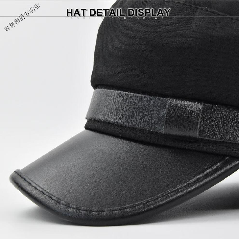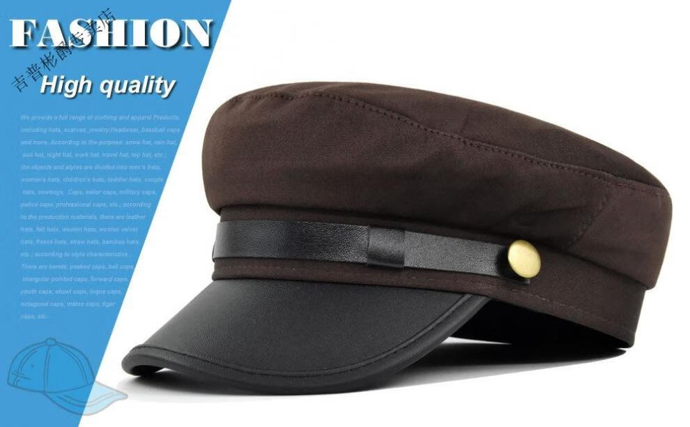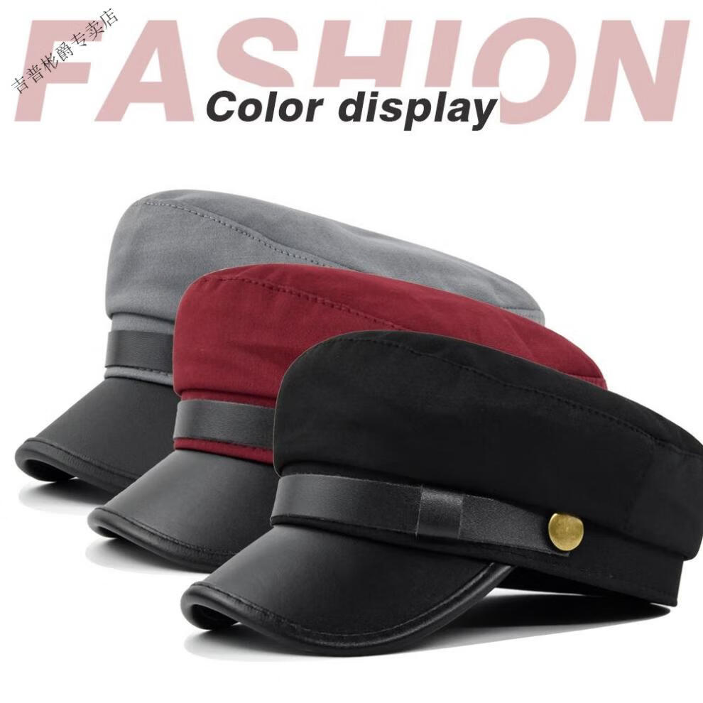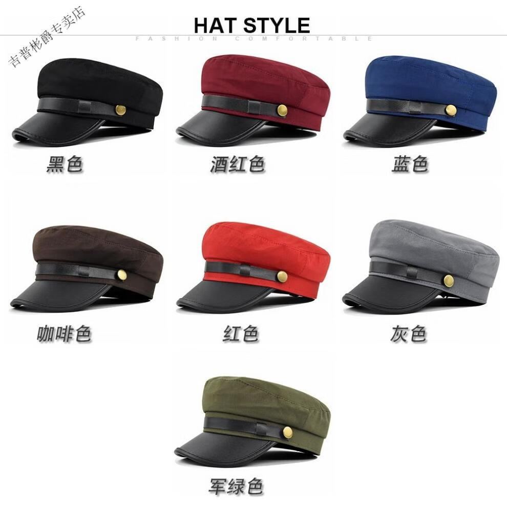 JEEP SPIRIT hat men's autumn and winter beret autumn and winter metal buckle octagonal hat octagonal hat woolen hat flat hat Republic of China trendy style BE123-1 black M (56-58cm)