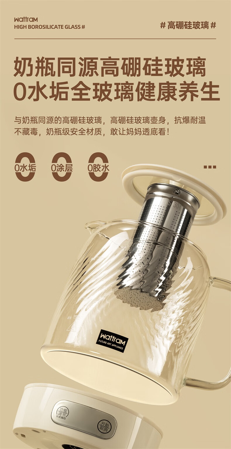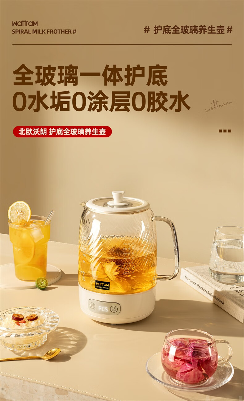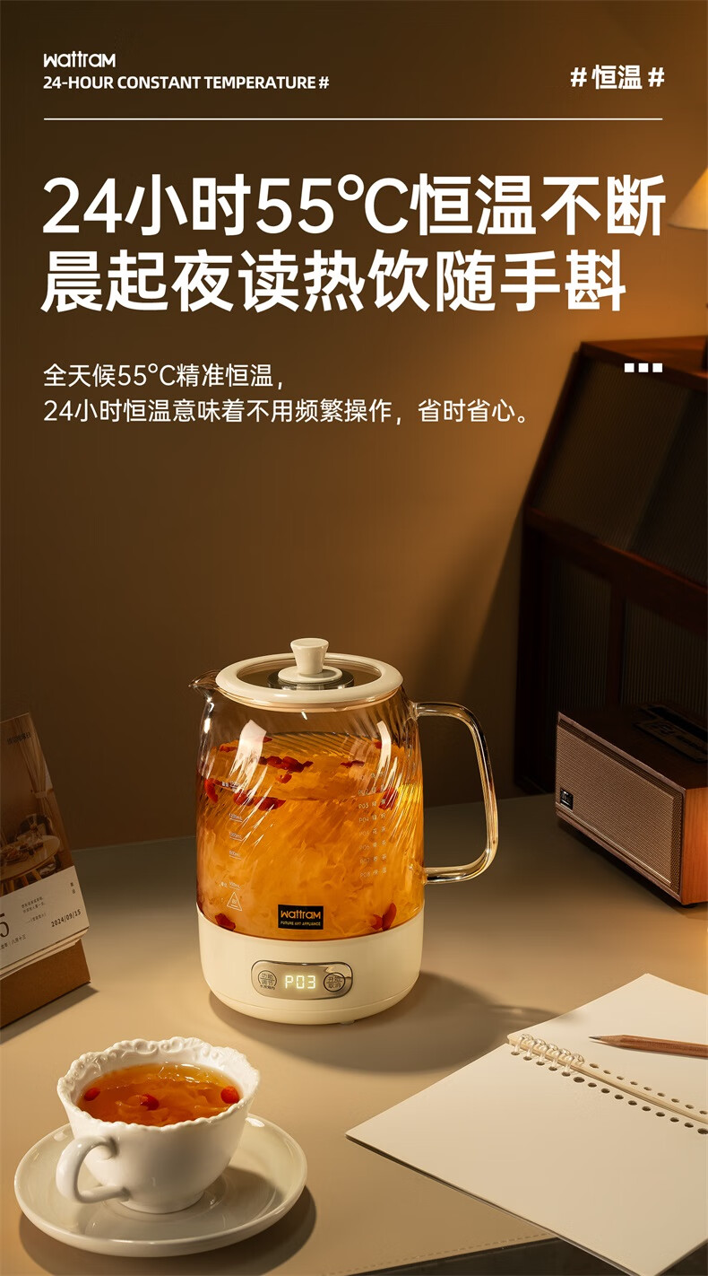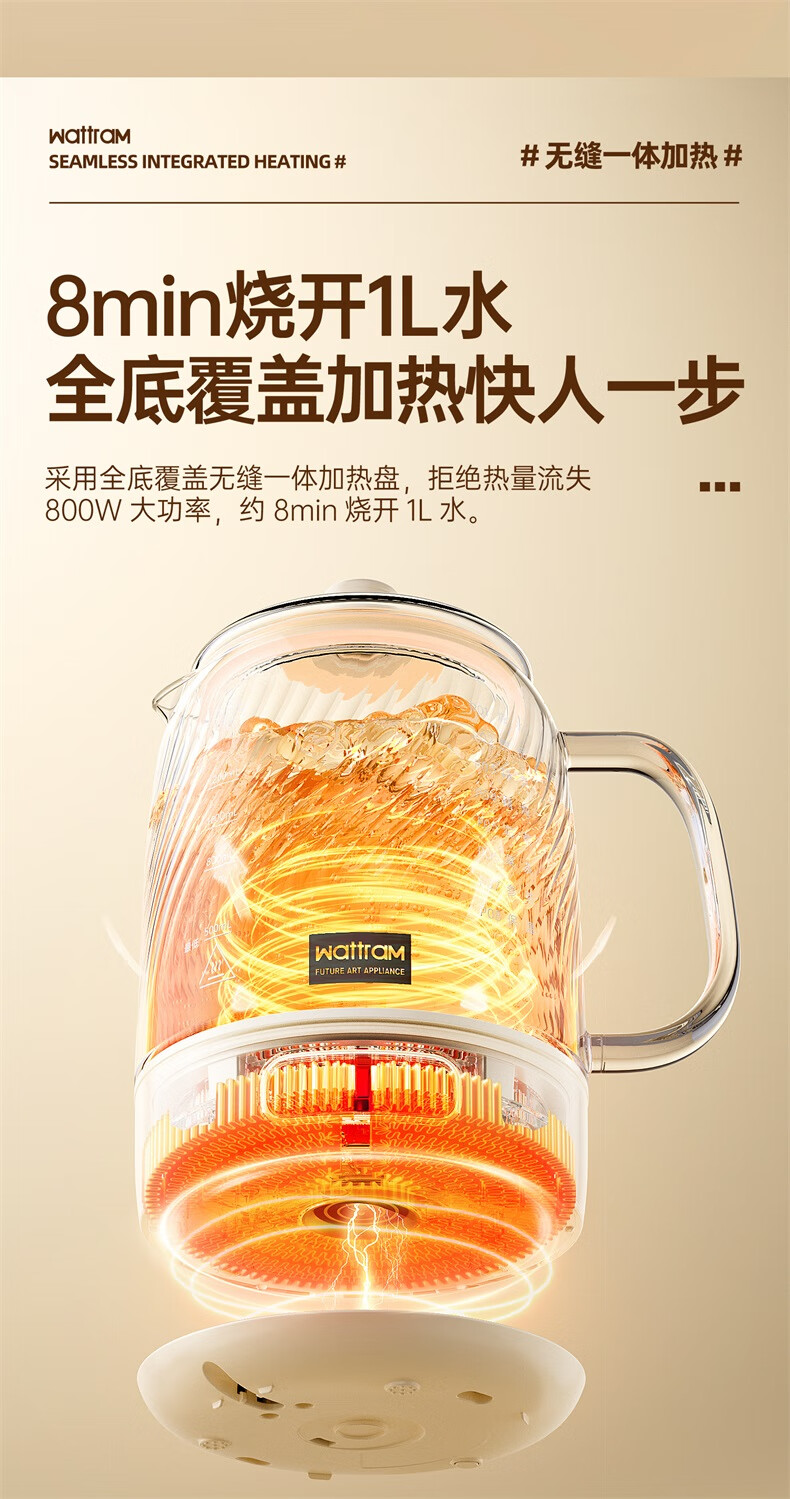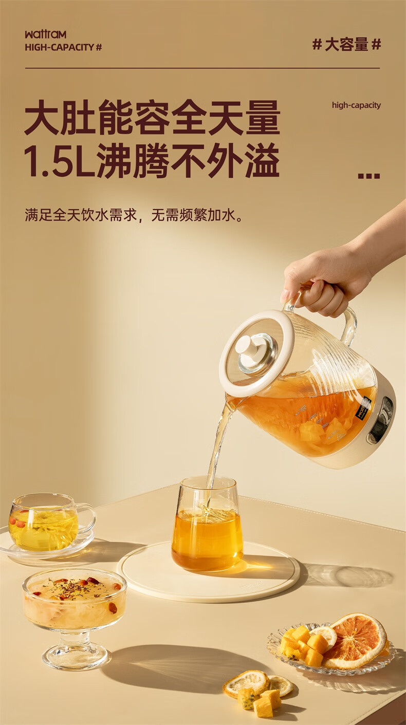 Nordic Woland all-glass health pot constant temperature home multi-functional office small flower tea electric ceramic stove tea maker 1.5L (tea leakage)