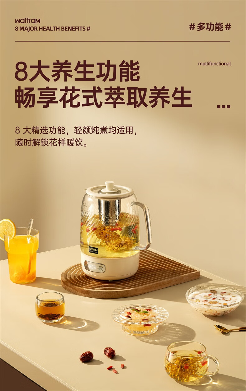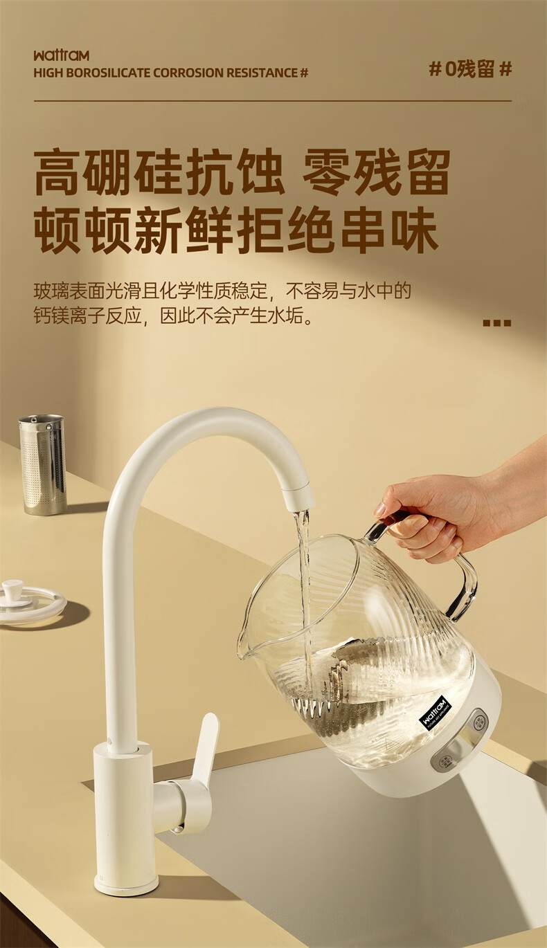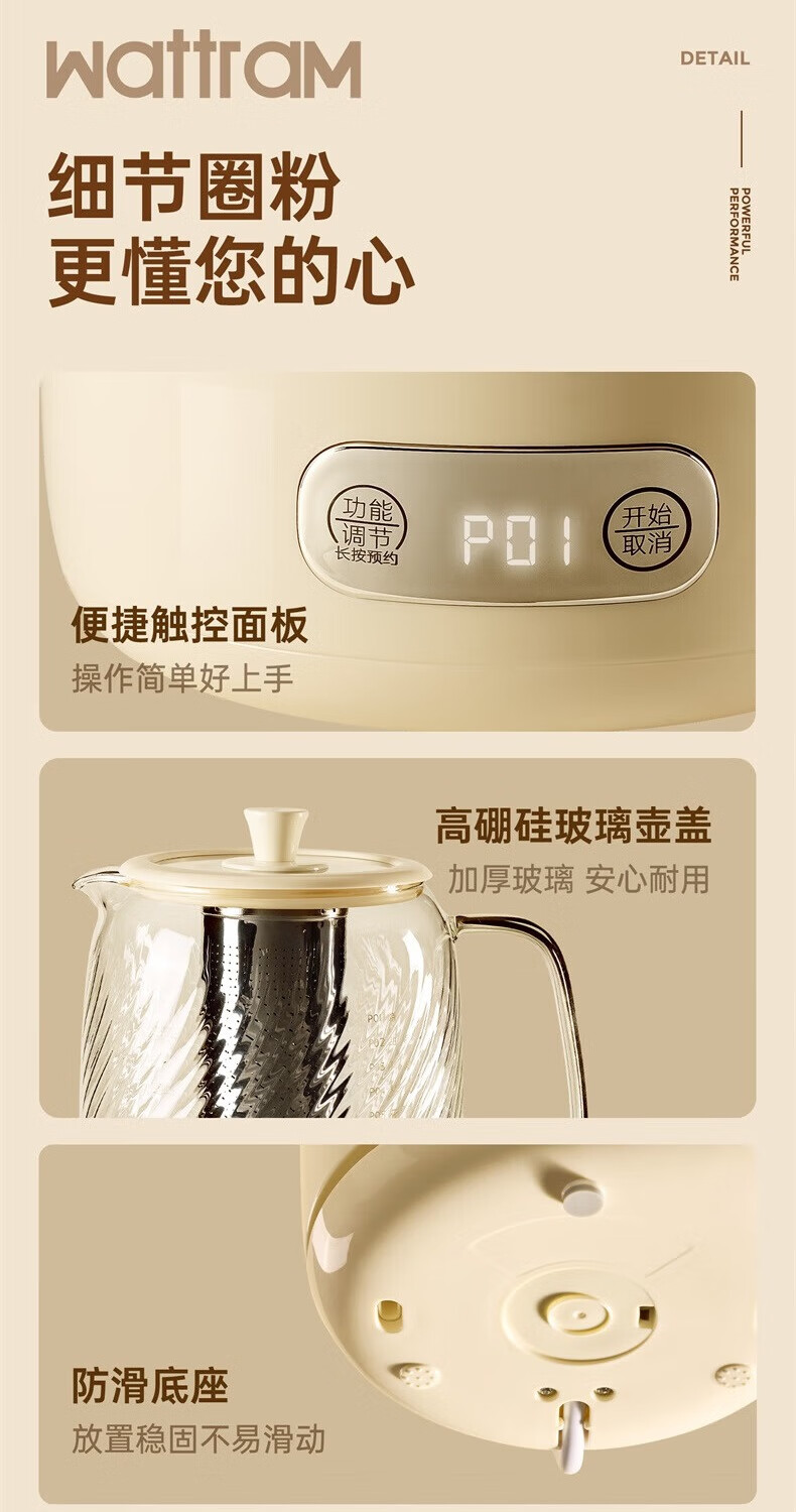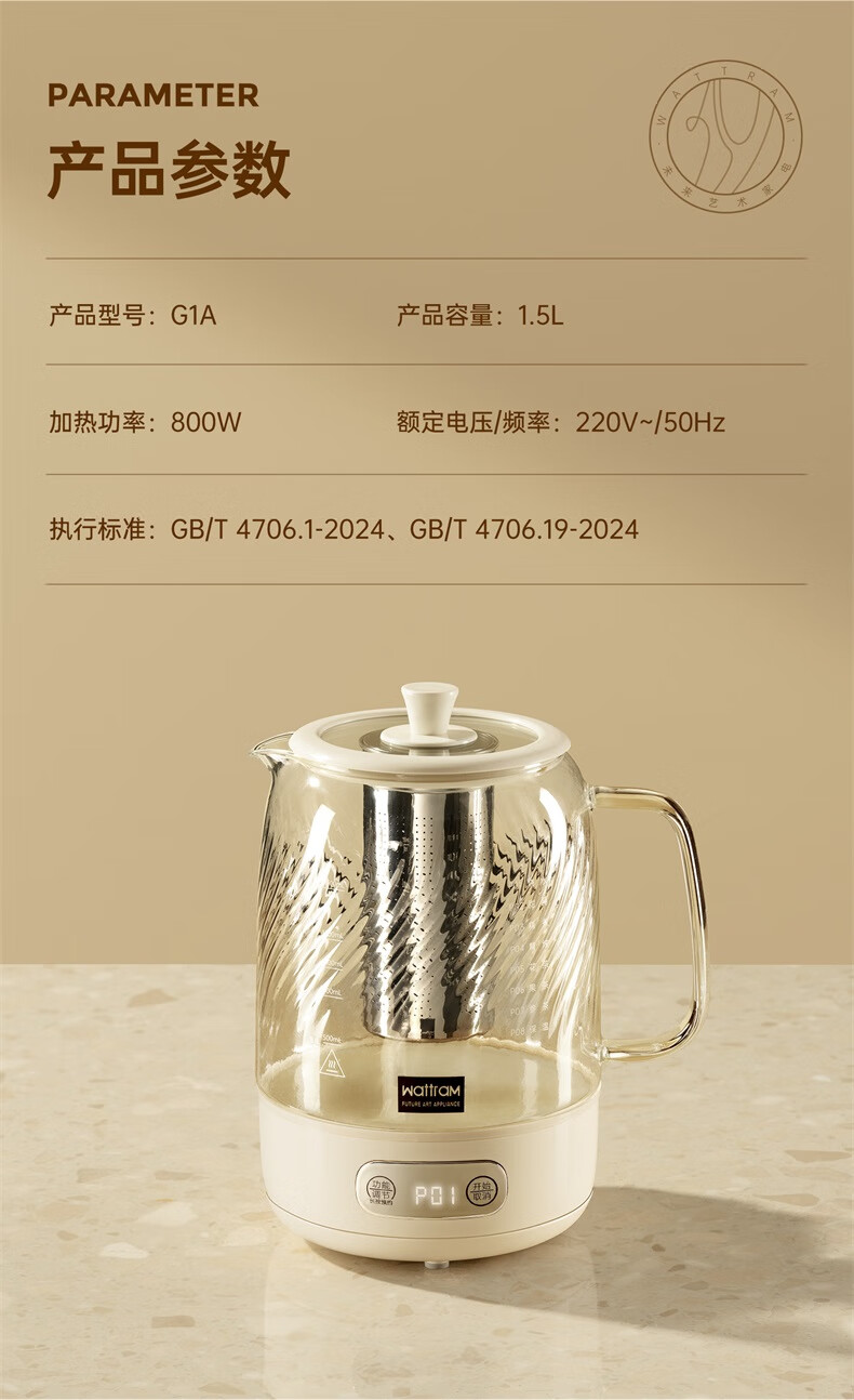 Nordic Woland all-glass health pot constant temperature home multi-functional office small flower tea electric ceramic stove tea maker 1.5L (tea leakage)