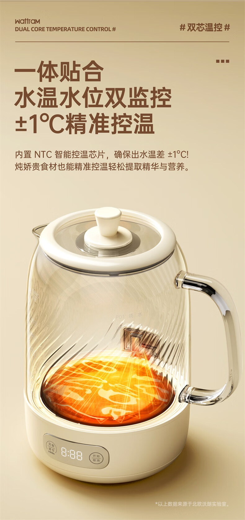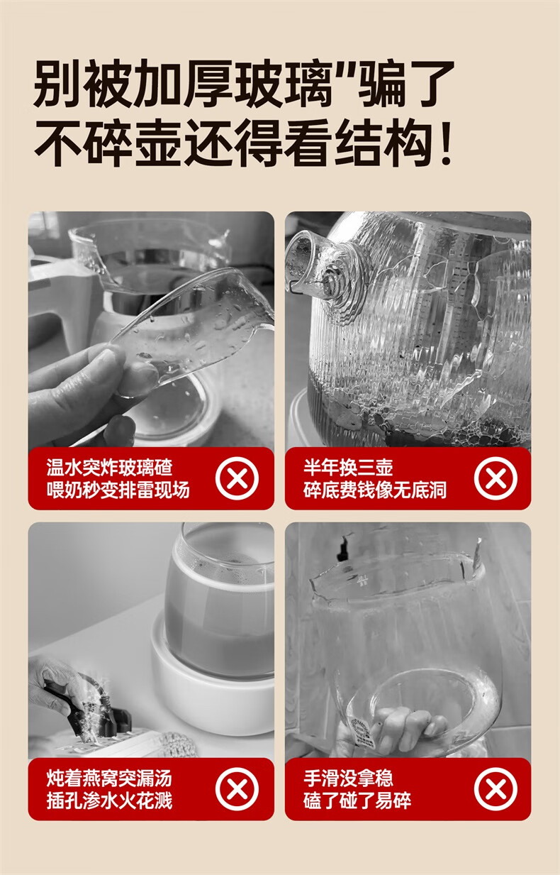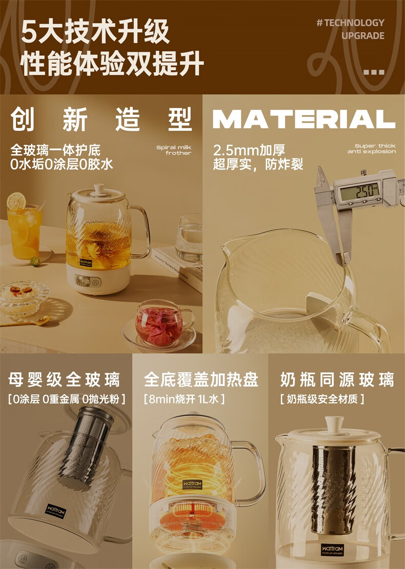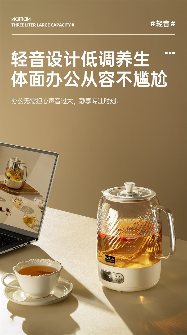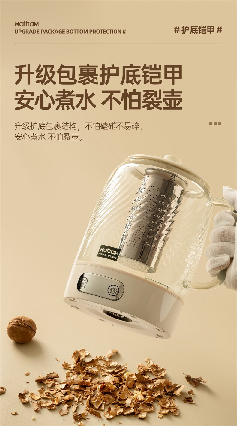 Nordic Woland all-glass health pot constant temperature home multi-functional office small flower tea electric ceramic stove tea maker 1.5L (tea leakage)
