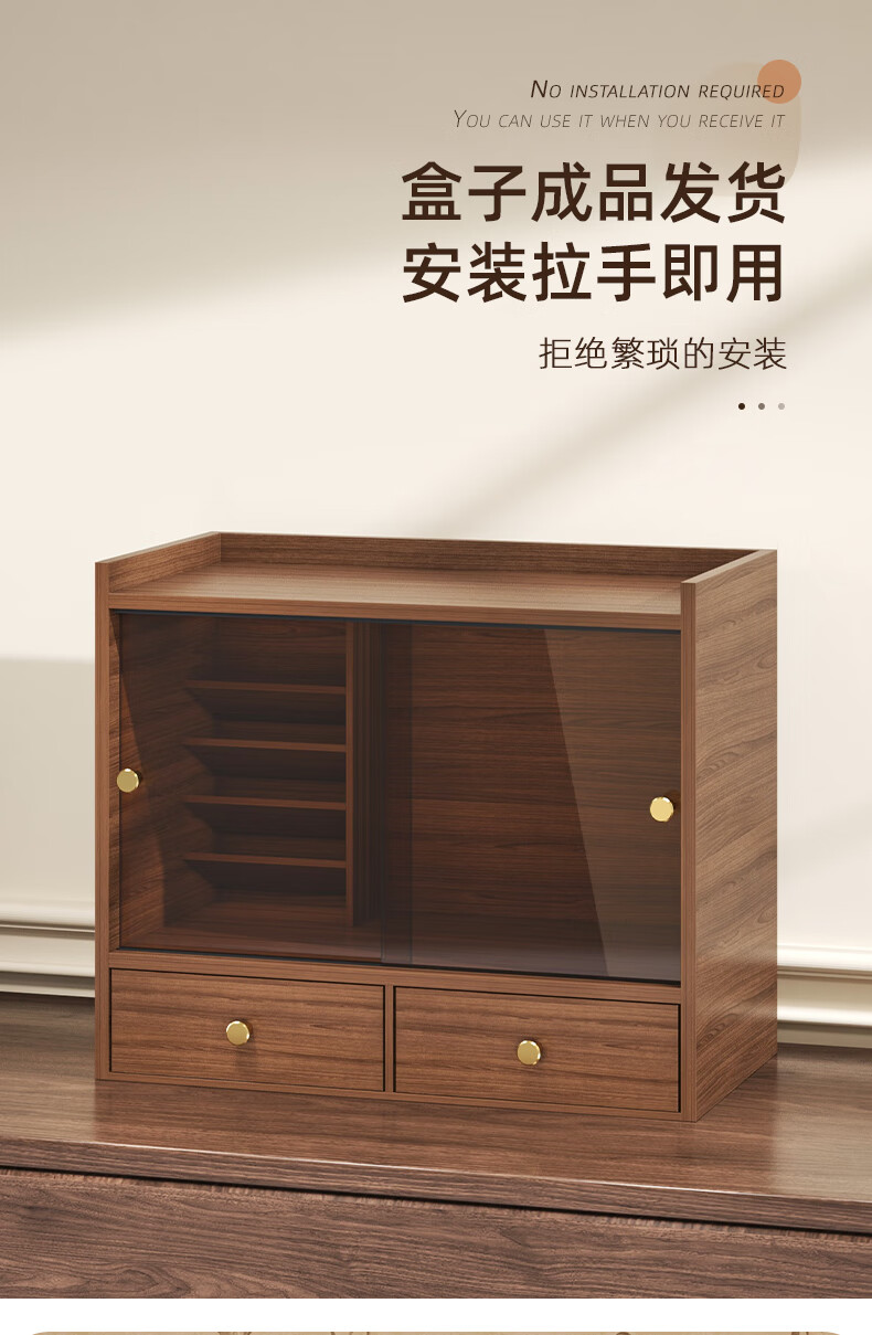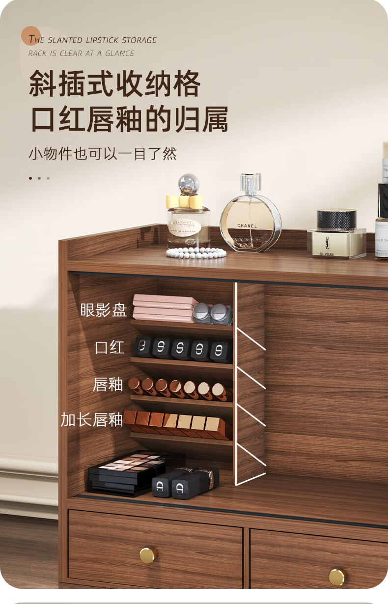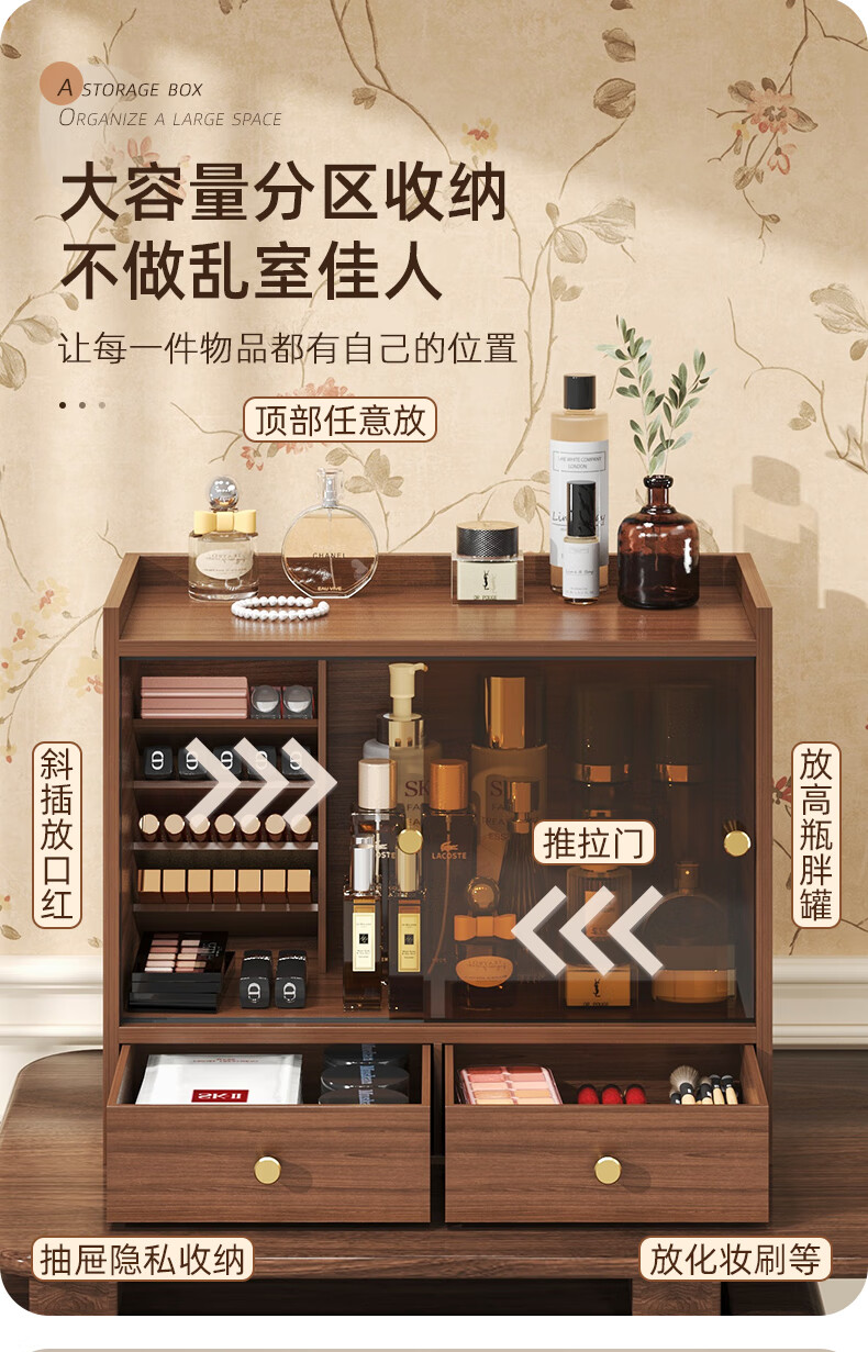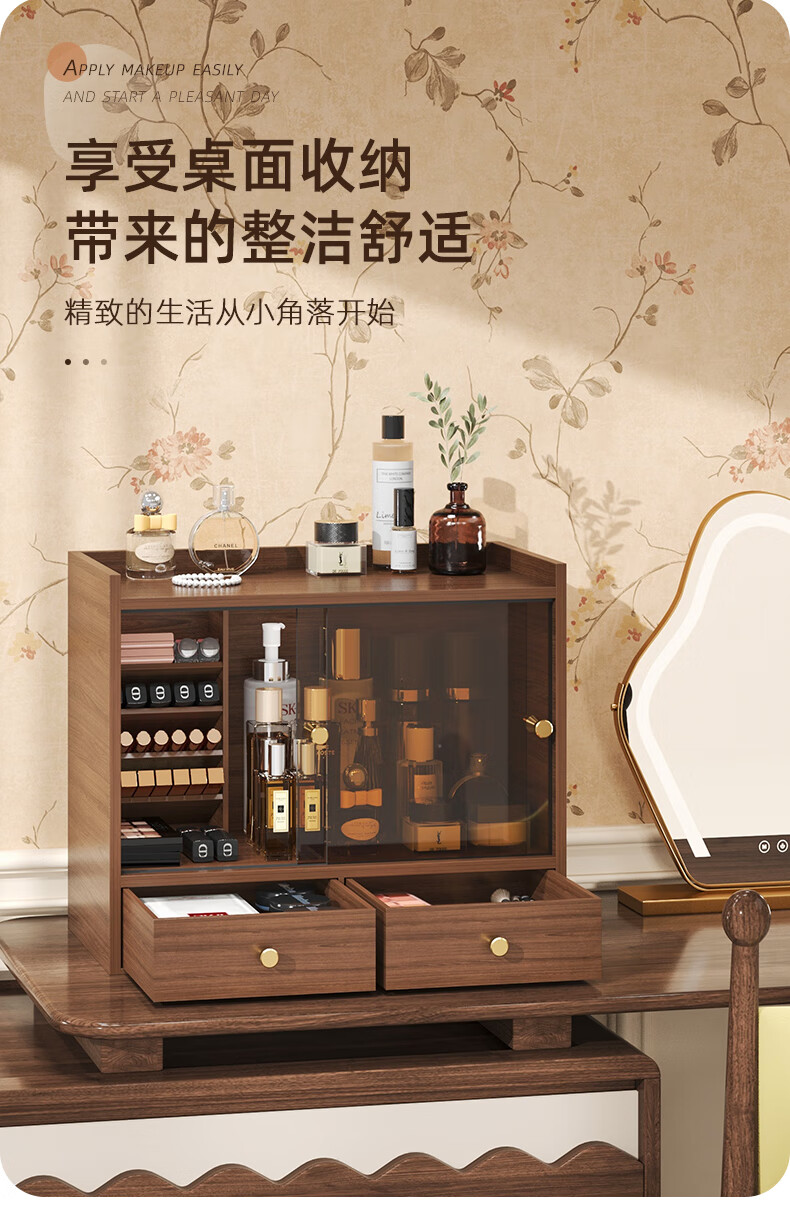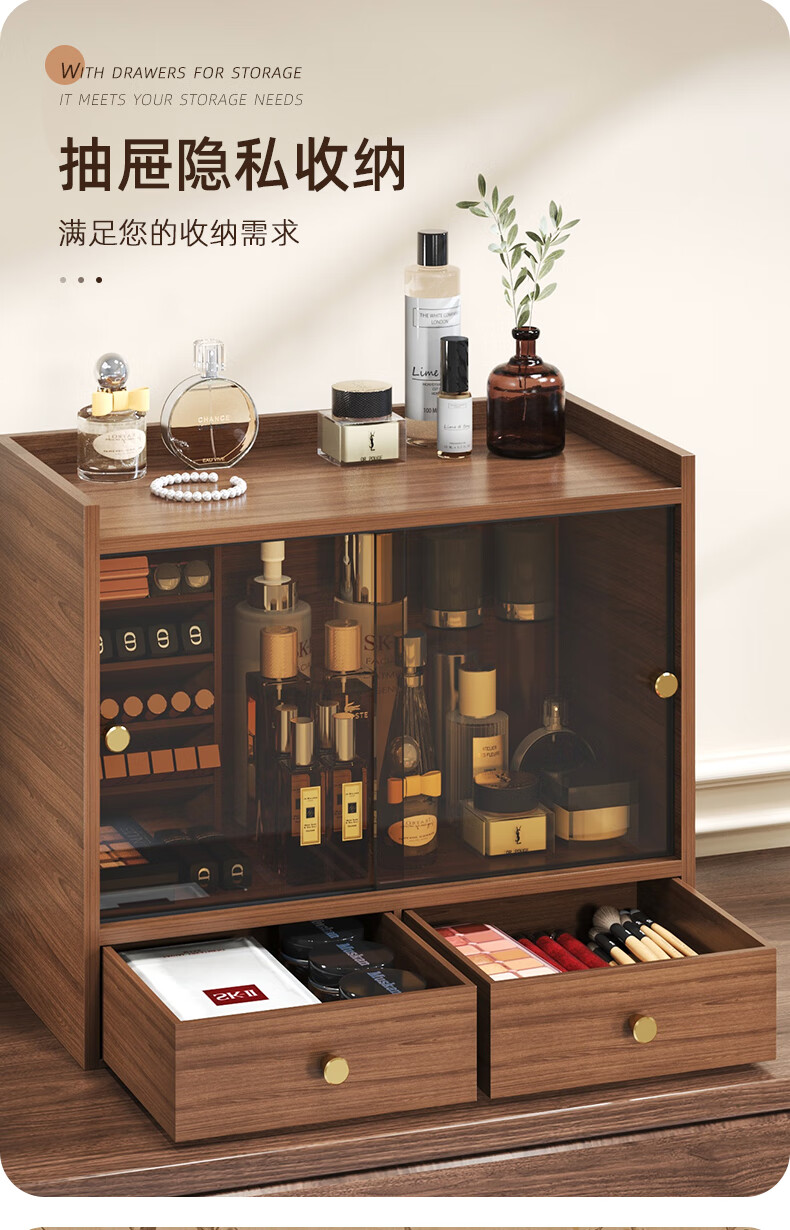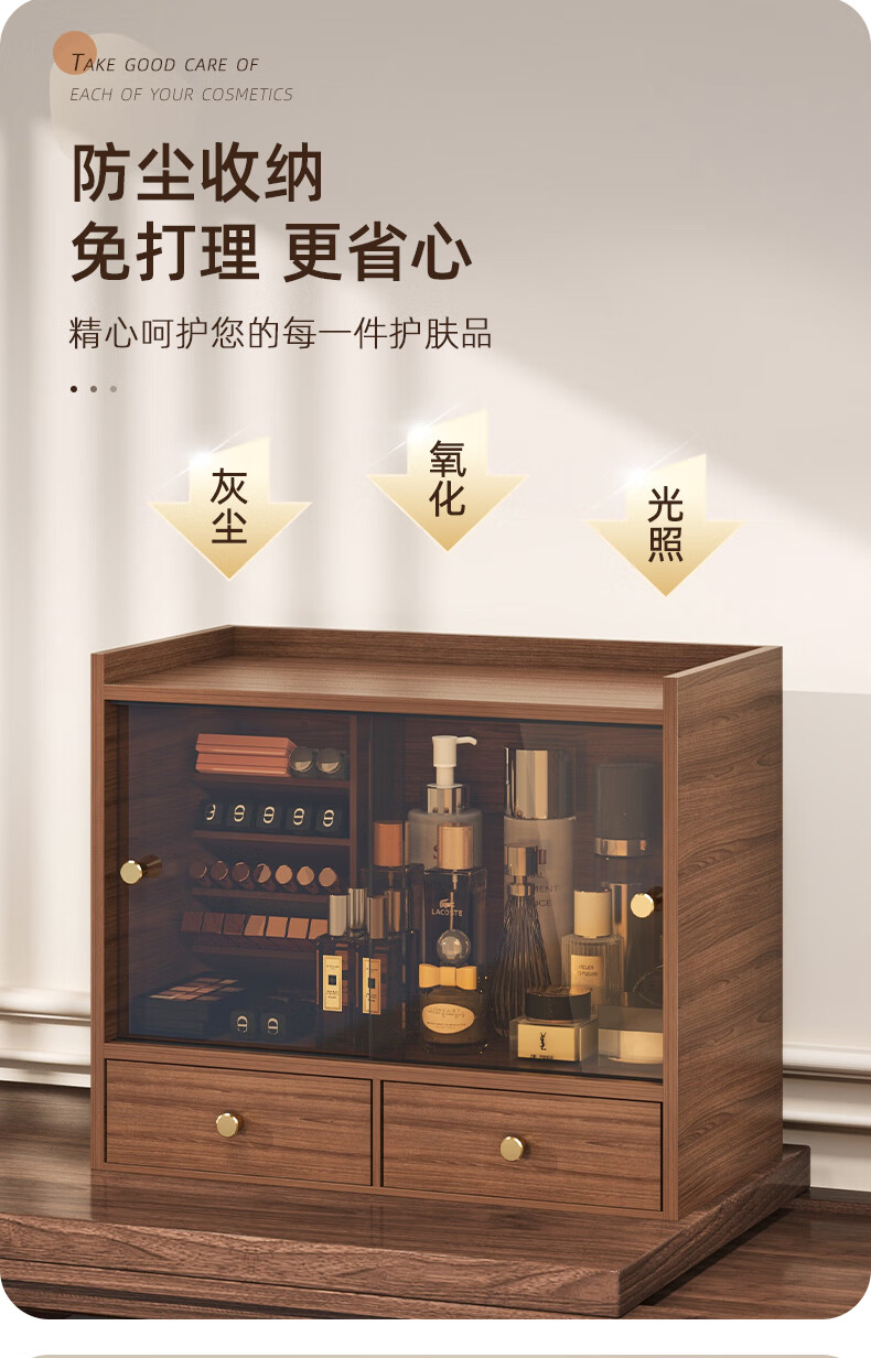 Shushi cosmetics storage box dust-proof walnut color high-end sliding door drawer-style lipstick lip glaze desktop storage rack