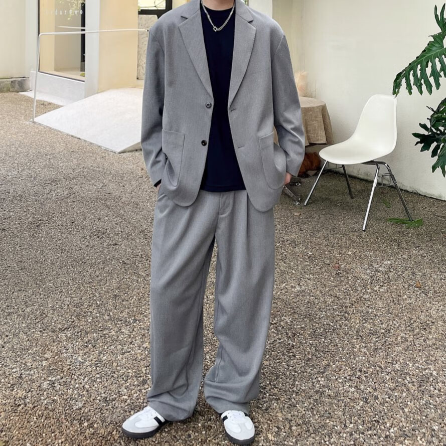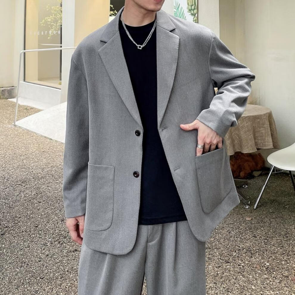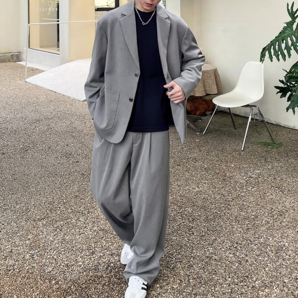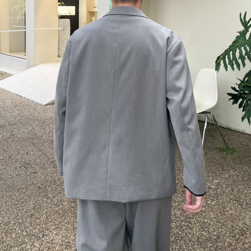 DK brand men's casual suit men's suit loose spring and autumn Korean version new twill suit fat jacket gray suit + trousers two-piece set L 130-145Jin Jin equals 0.5 kg
