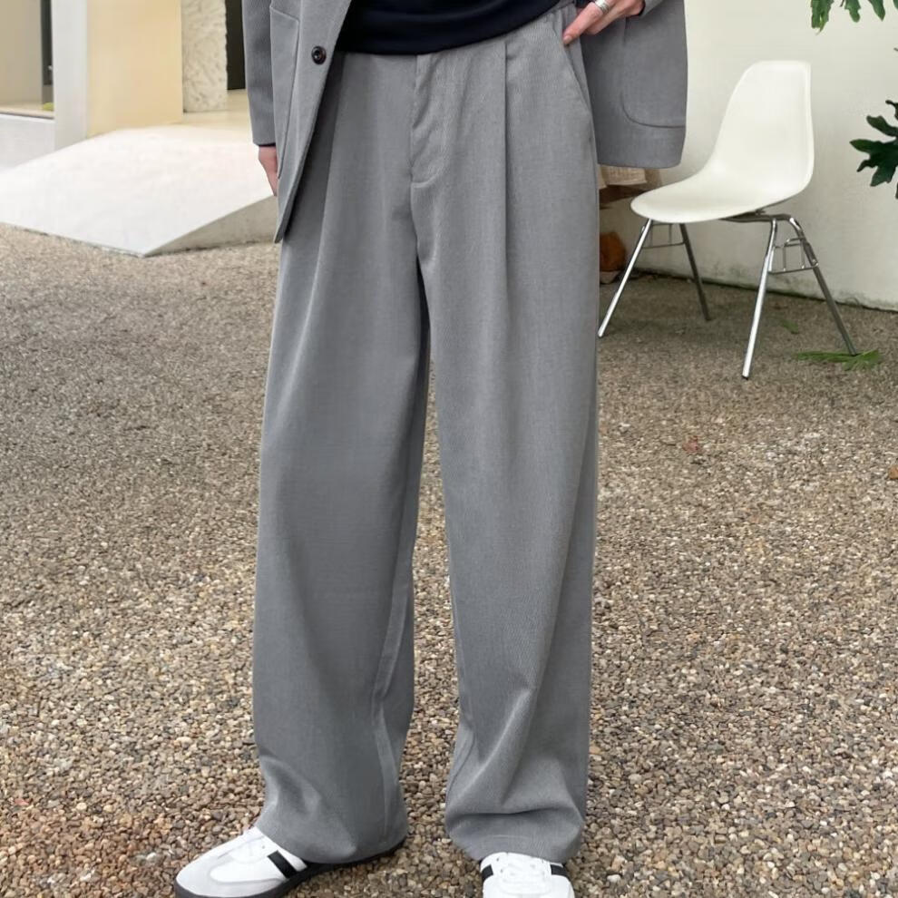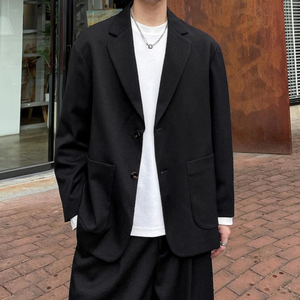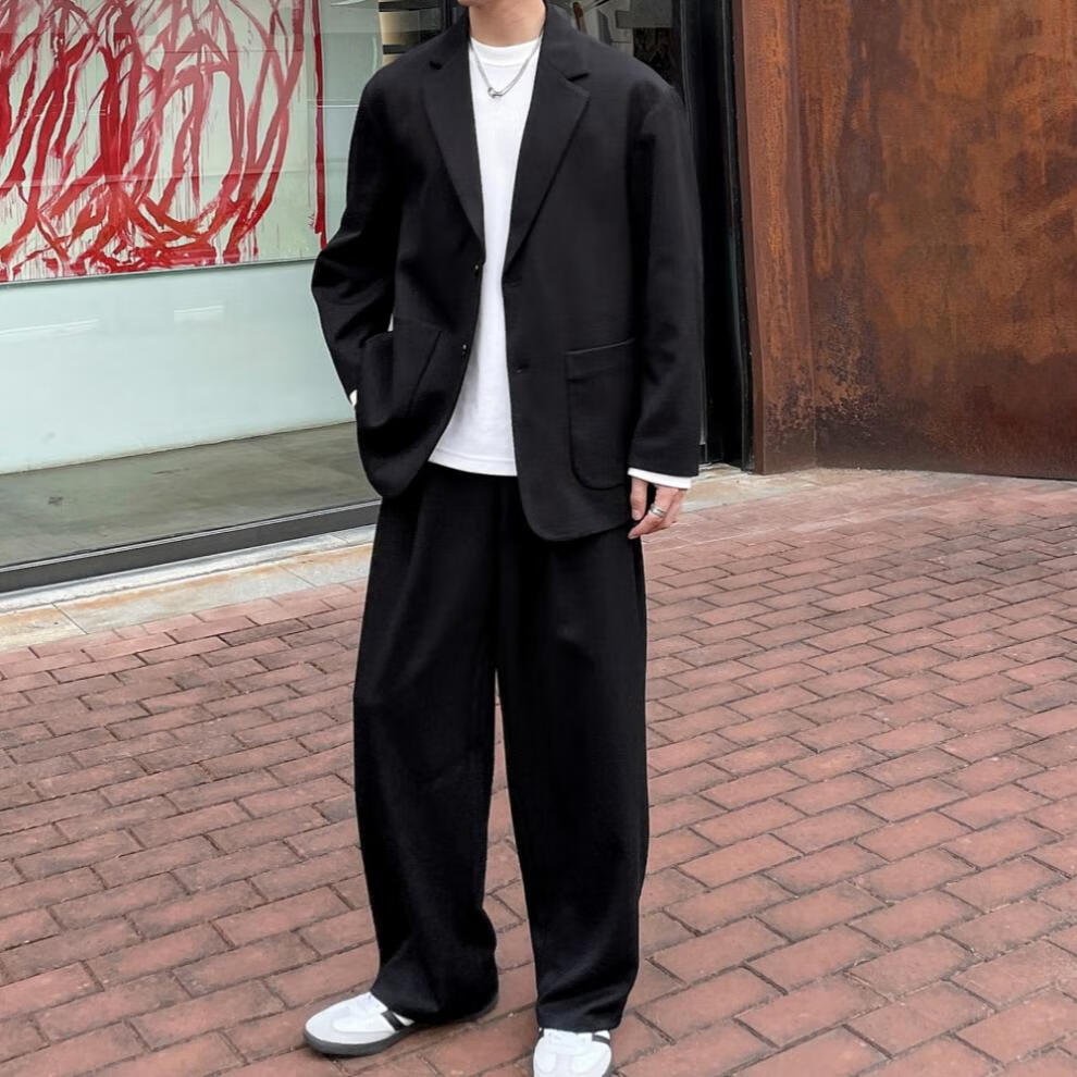 DK brand men's casual suit men's suit loose spring and autumn Korean version new twill suit fat jacket gray suit + trousers two-piece set L 130-145Jin Jin equals 0.5 kg