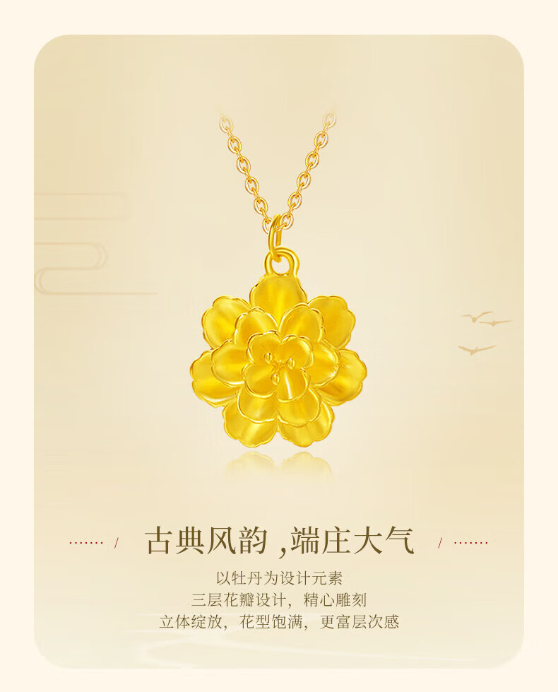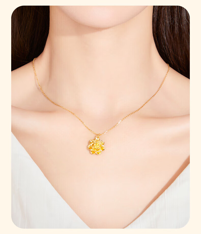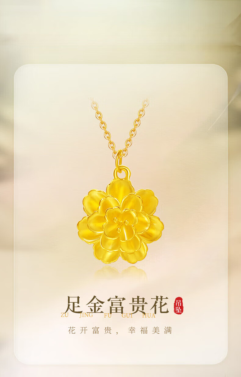 Chow Tai Fook Gold Pendant Women's Pure Gold Flower Blooming Wealth Necklace Birthday Chinese Valentine's Day Gift for Wife and Mom Pure Gold Wealth Flower + 18k Titanium Chain