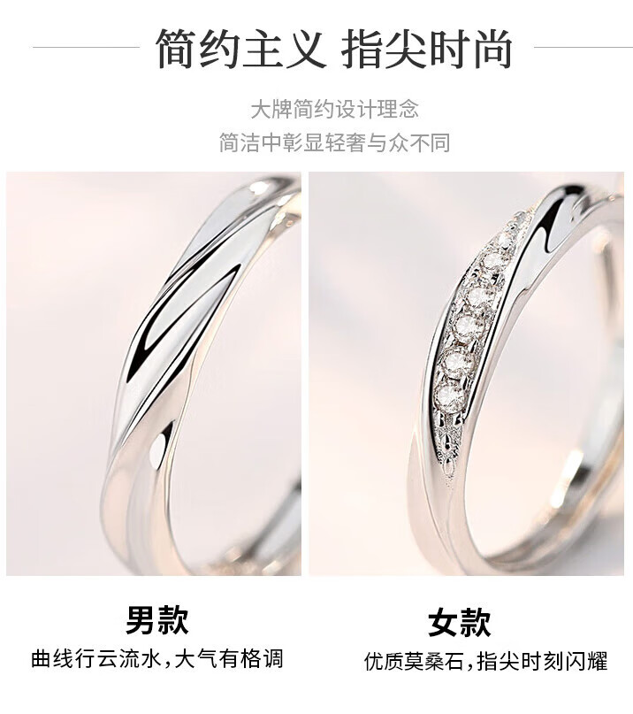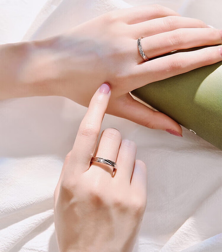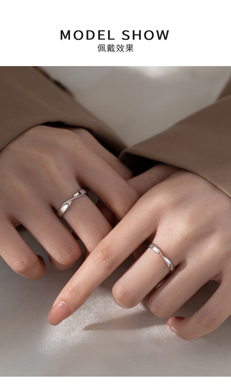 Chow Tai Fook Jewelry Platinum Ring Pt950 Couple Ring Men's and Women's Wedding Ring 18K Gold Diamond Ring with Exquisite Box Möbius Band Platinum Men's Ring