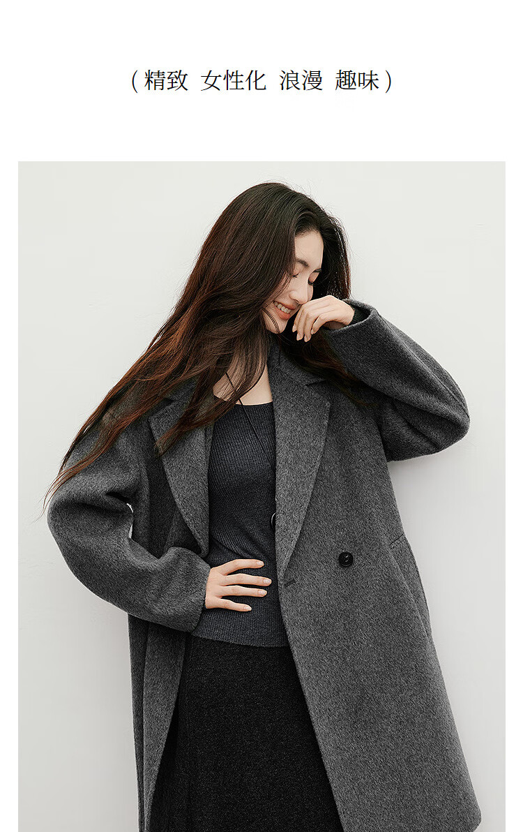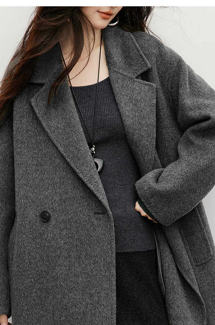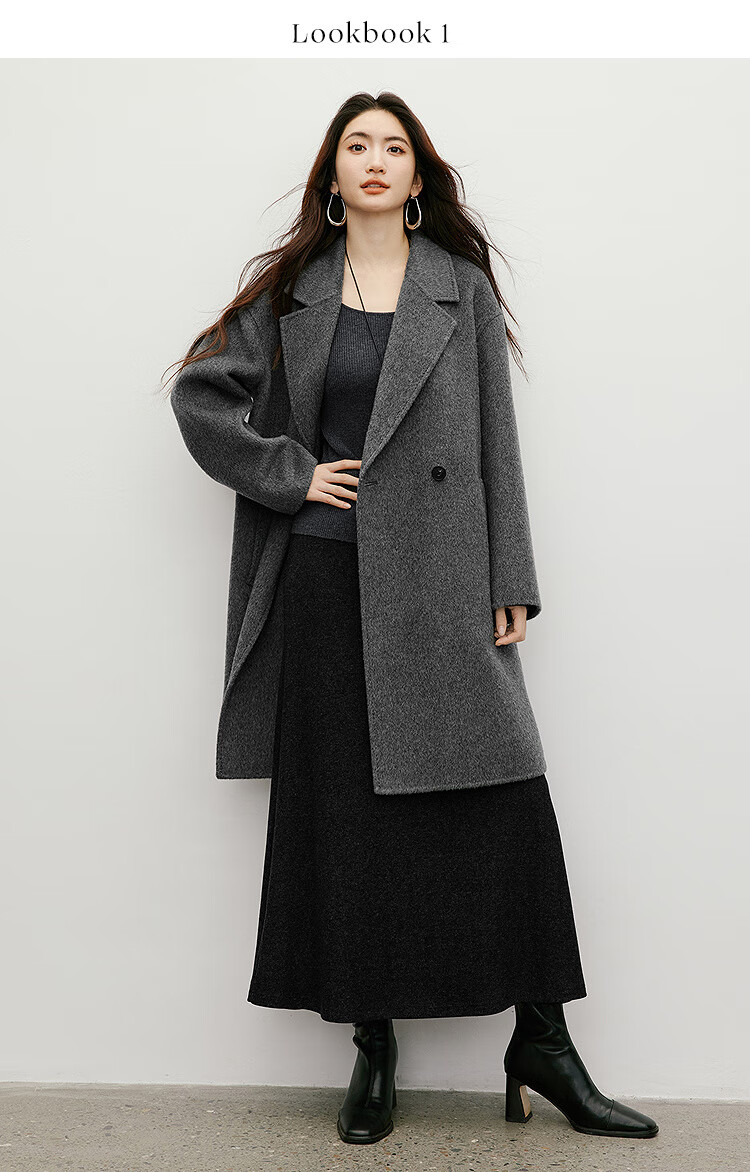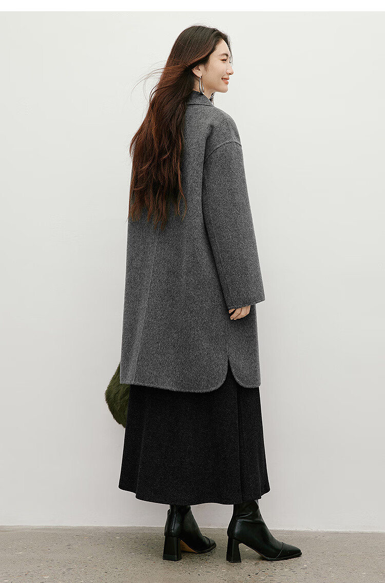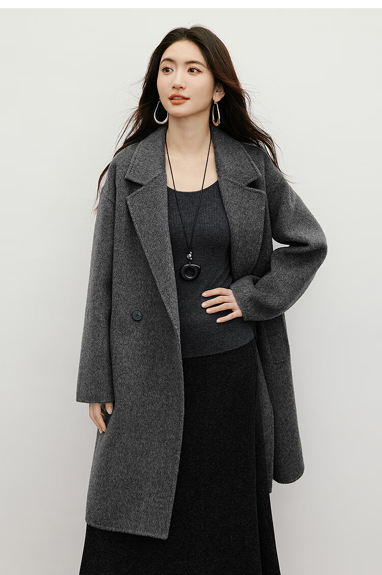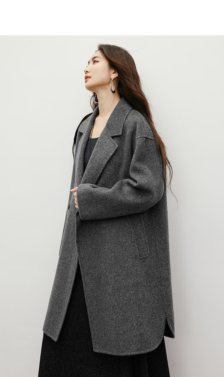 Red sleeve high-end double-sided woolen coat 2025 winter new women's clothing Quiet luxury and smart sense 100% sheep wool coat Ash 056 L