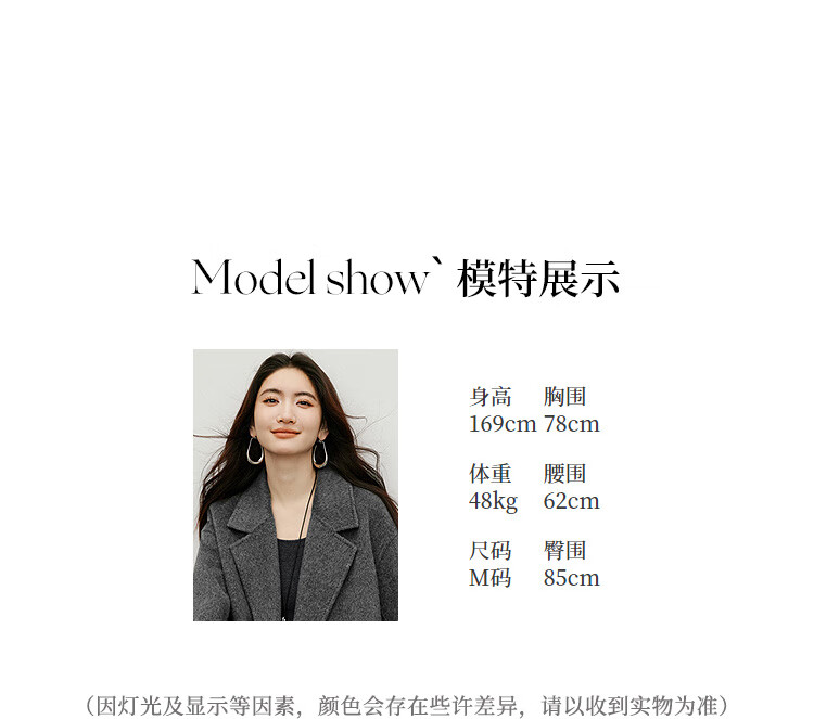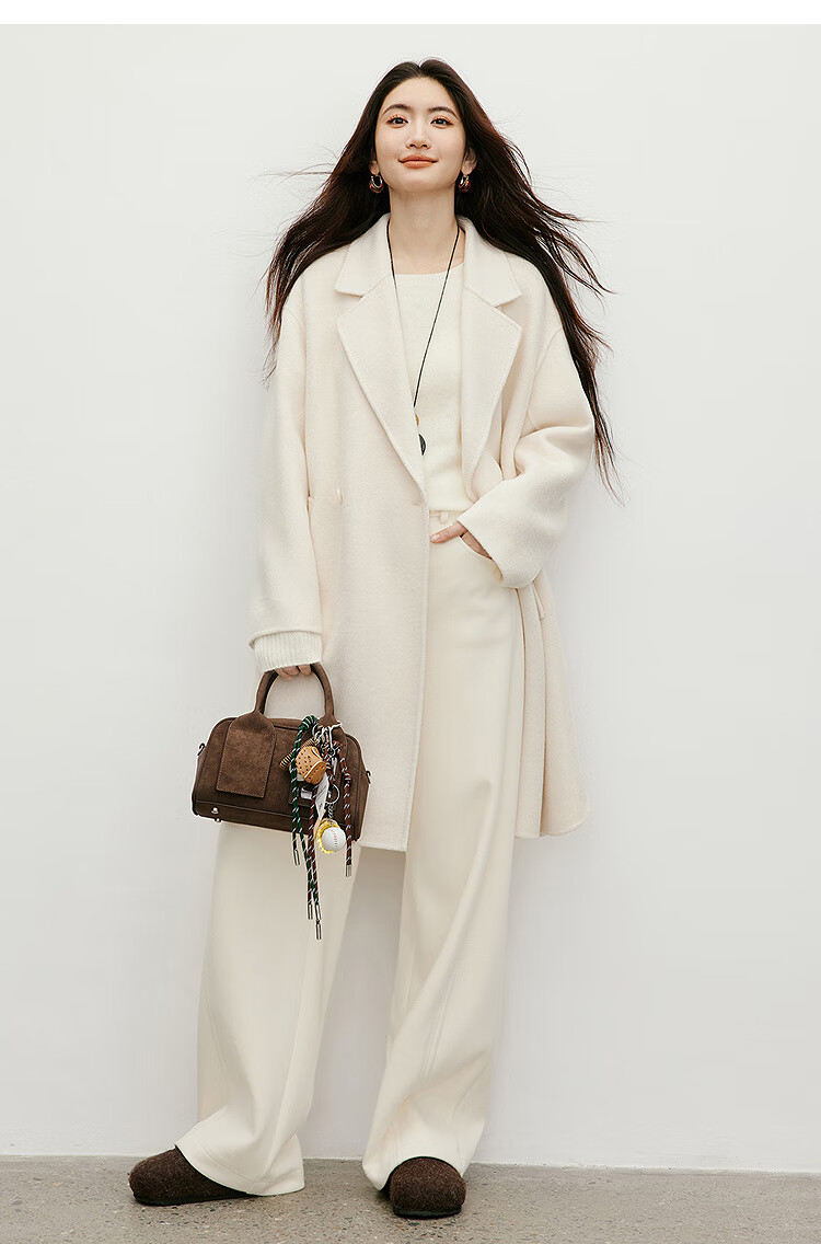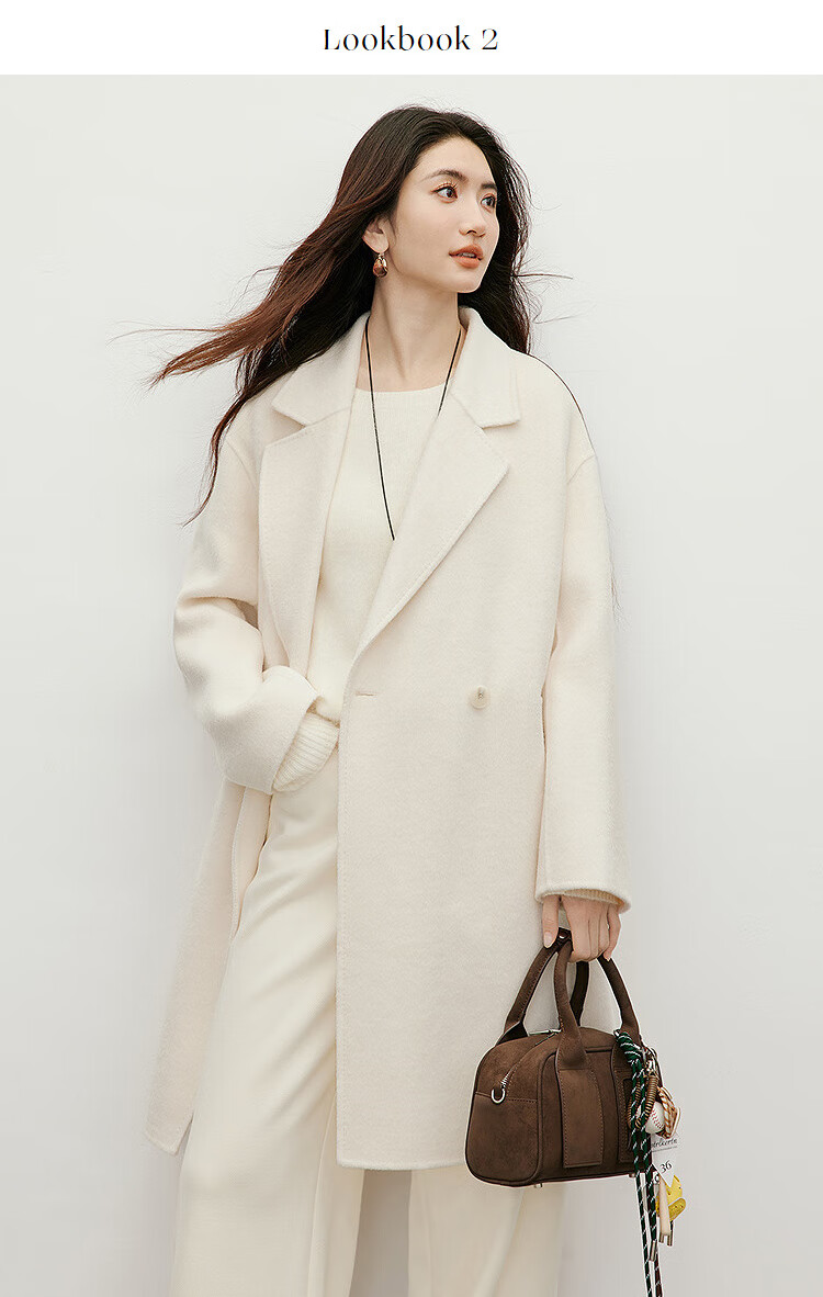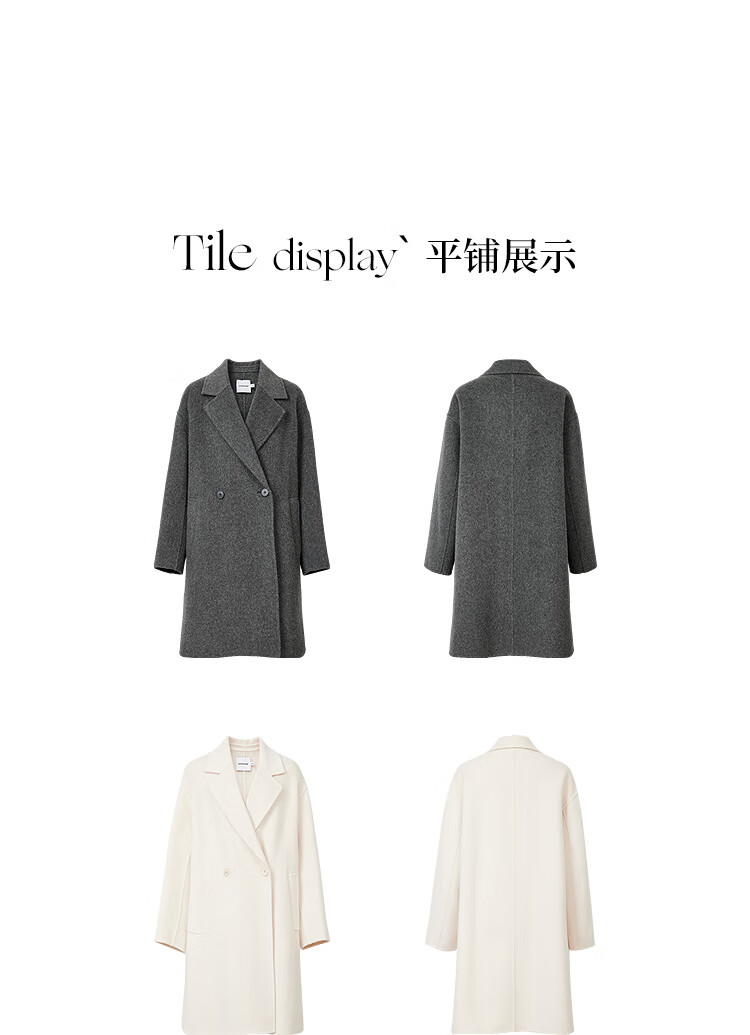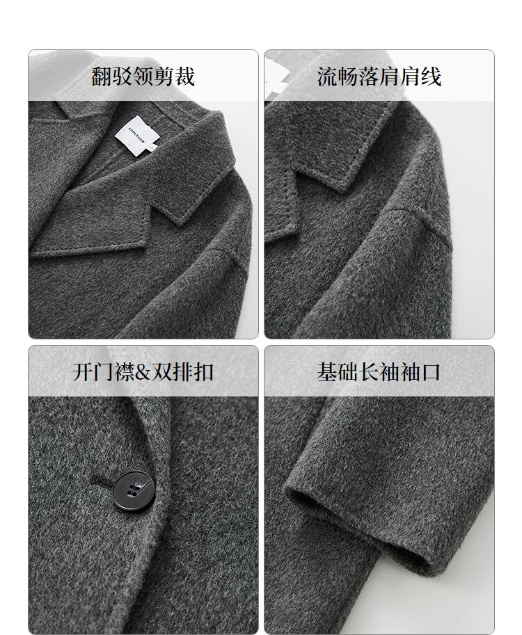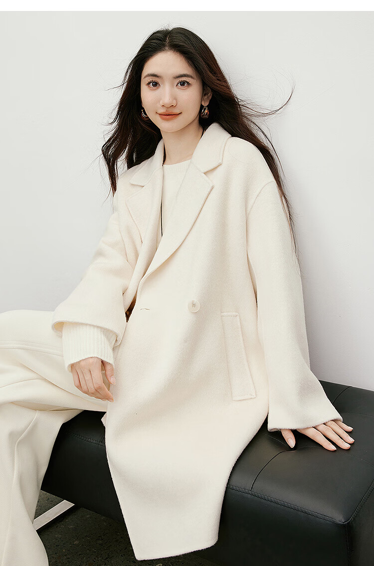Red sleeve high-end double-sided woolen coat 2025 winter new women's clothing Quiet luxury and smart sense 100% sheep wool coat Ash 056 L