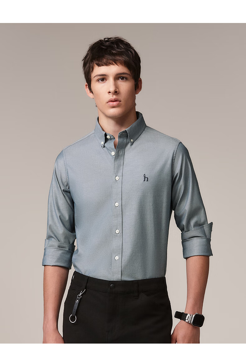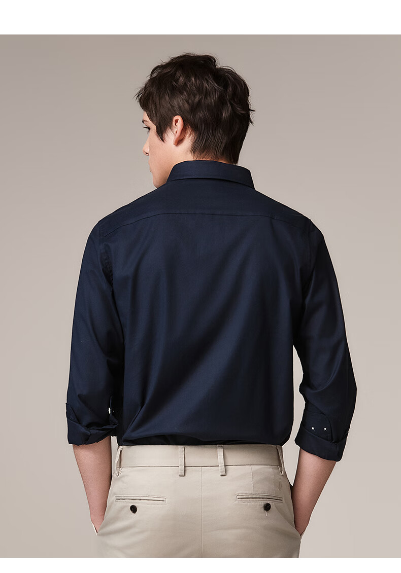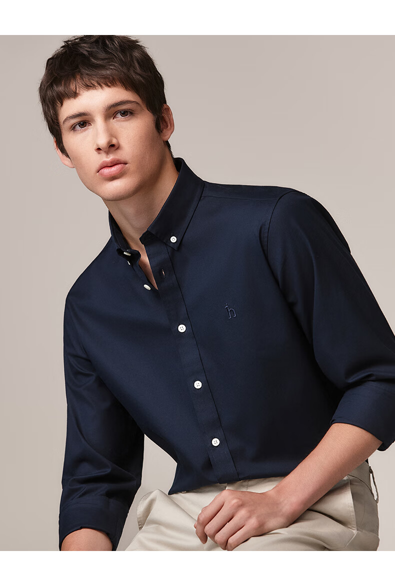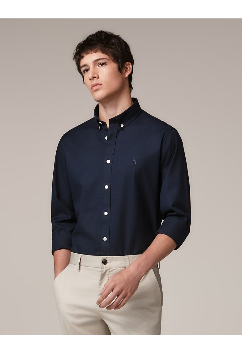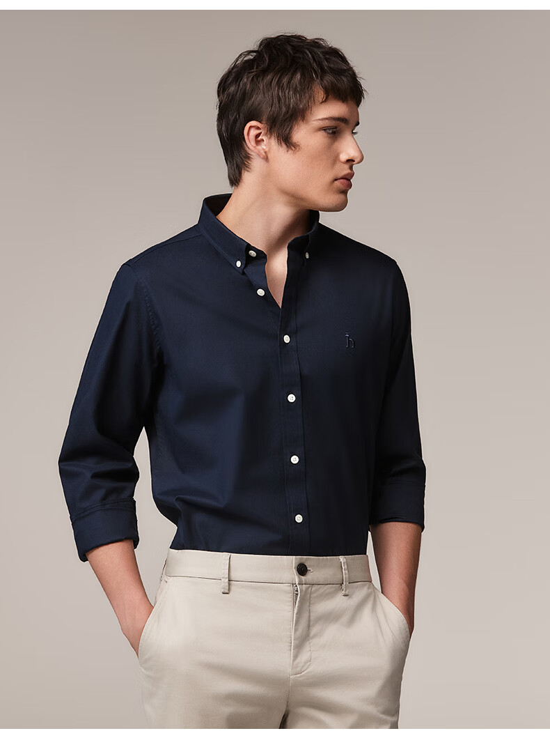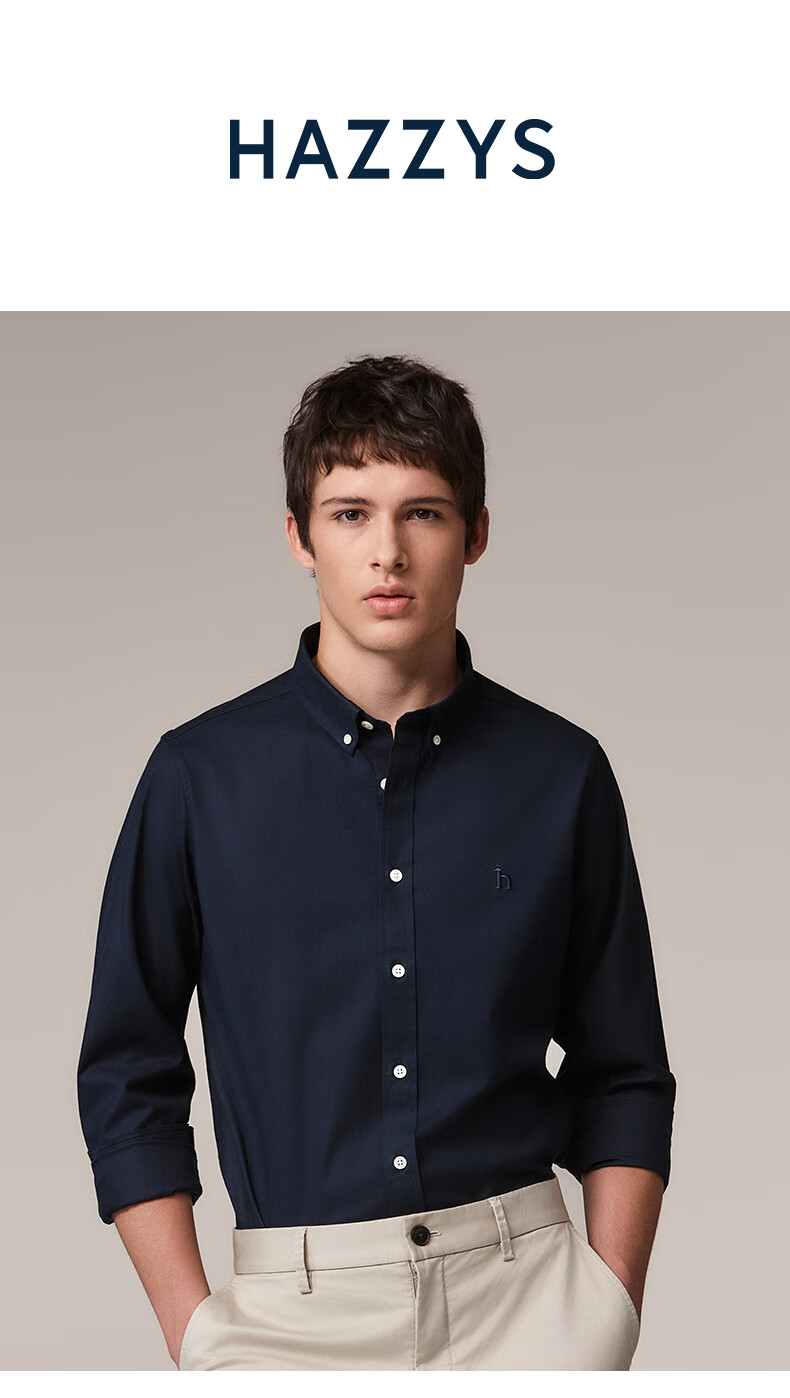 HAZZYS Men's Autumn Youth Cloth Commuting Shirt Solid Color Simple Long Sleeve Shirt Men ASCZK1BCK02 Navy Blue NV XL (180/100A 50)