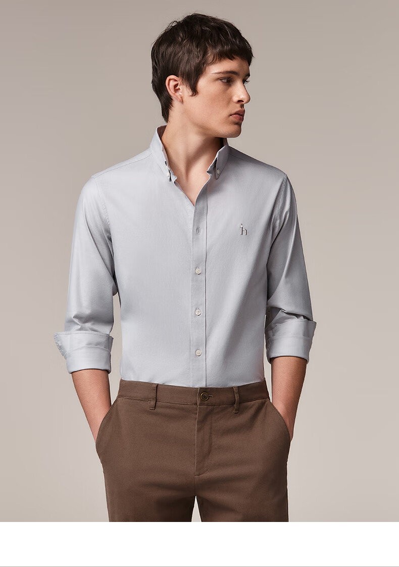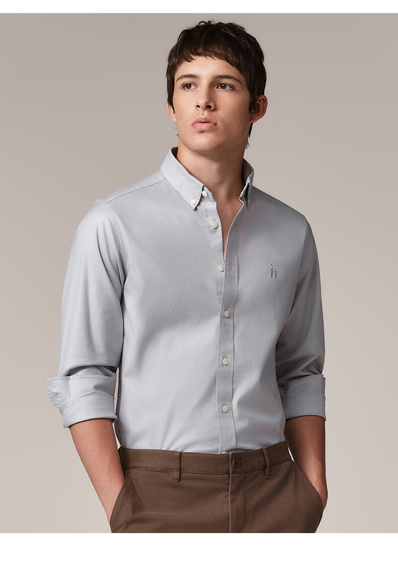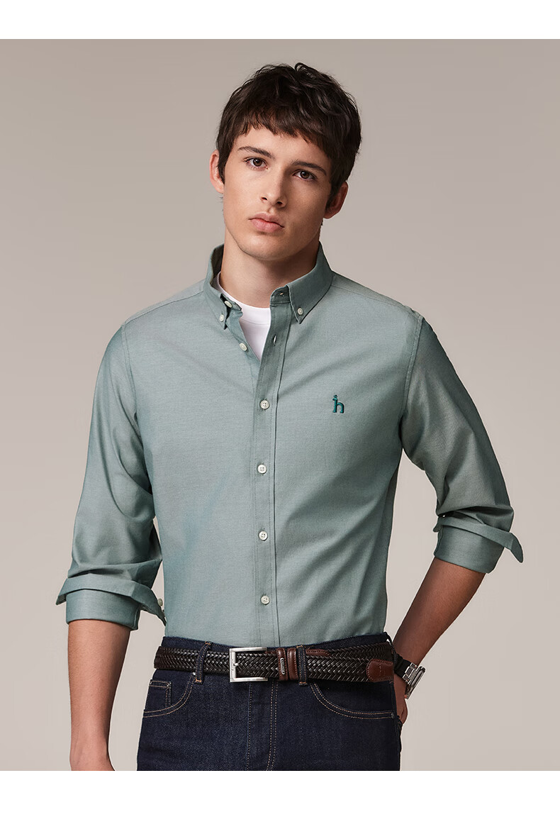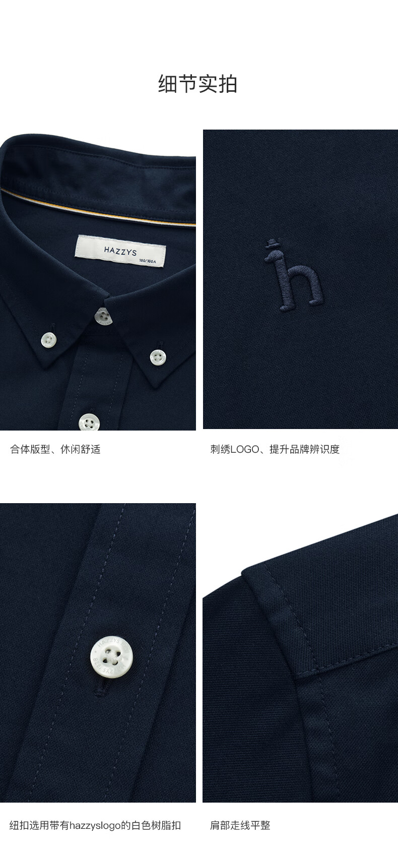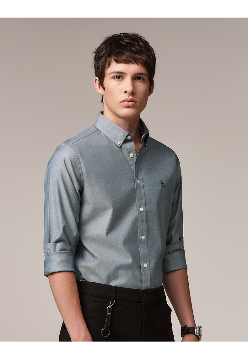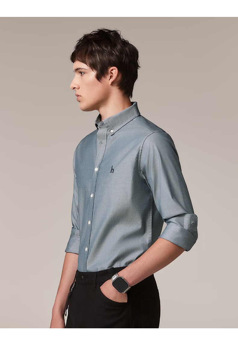 HAZZYS Men's Autumn Youth Cloth Commuting Shirt Solid Color Simple Long Sleeve Shirt Men ASCZK1BCK02 Navy Blue NV XL (180/100A 50)