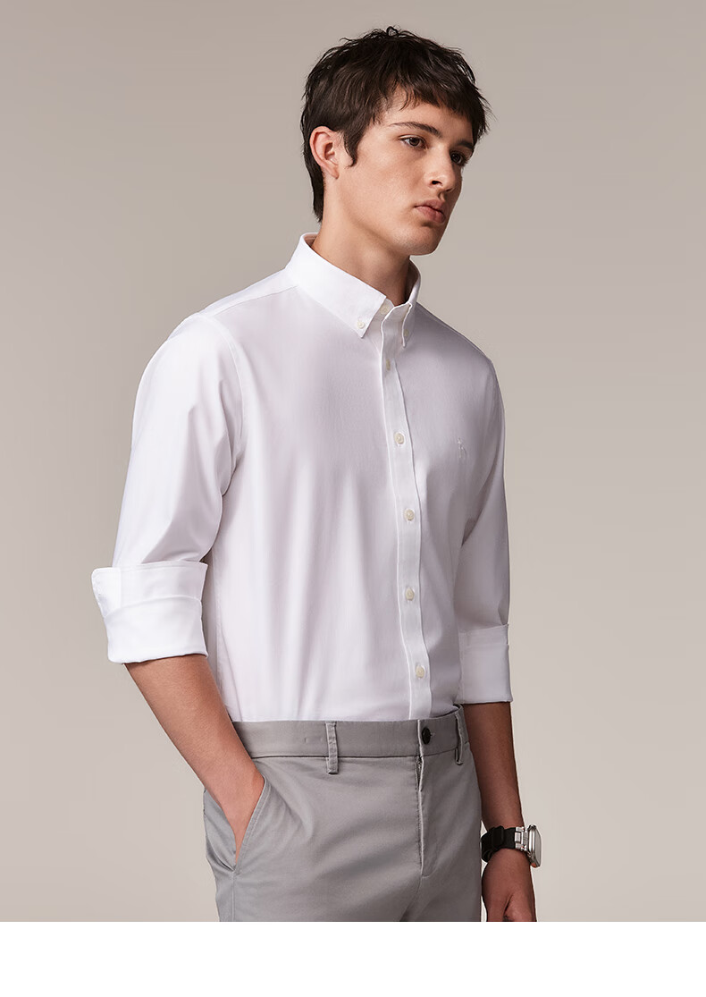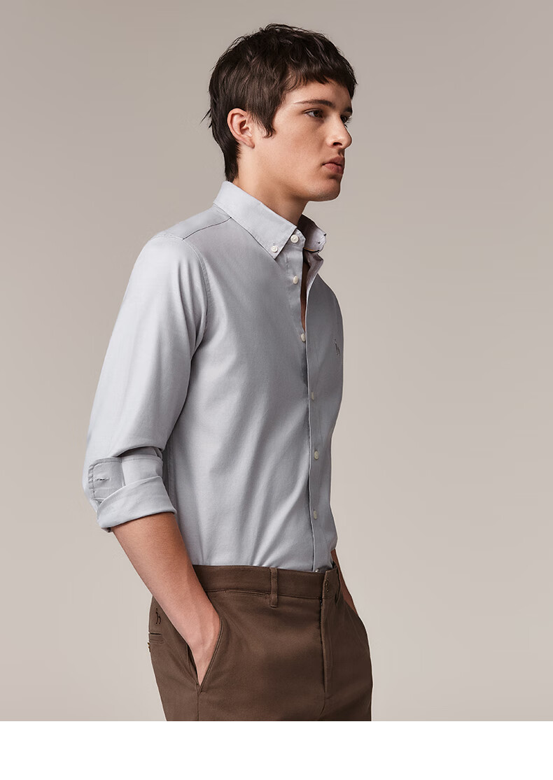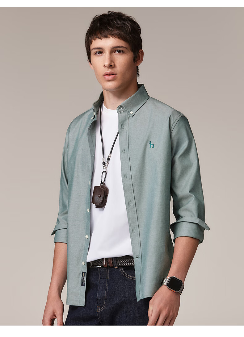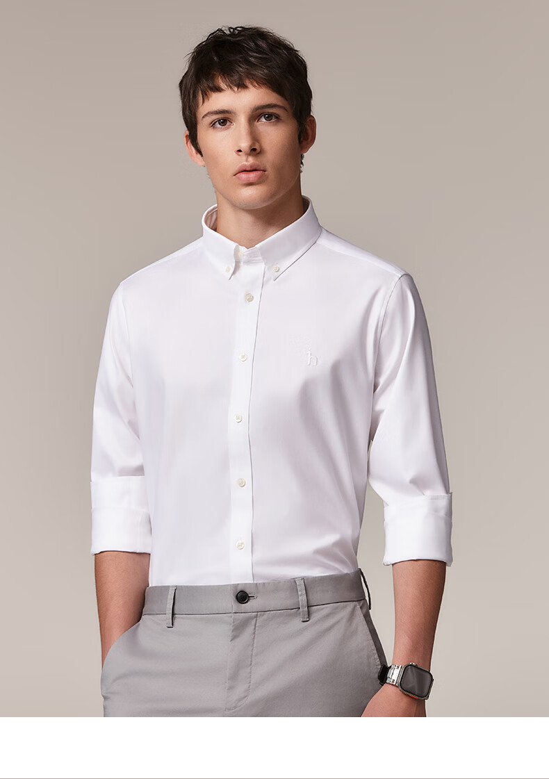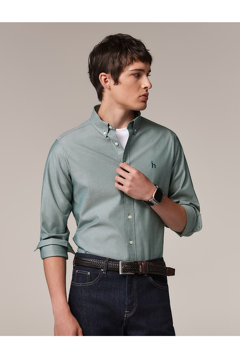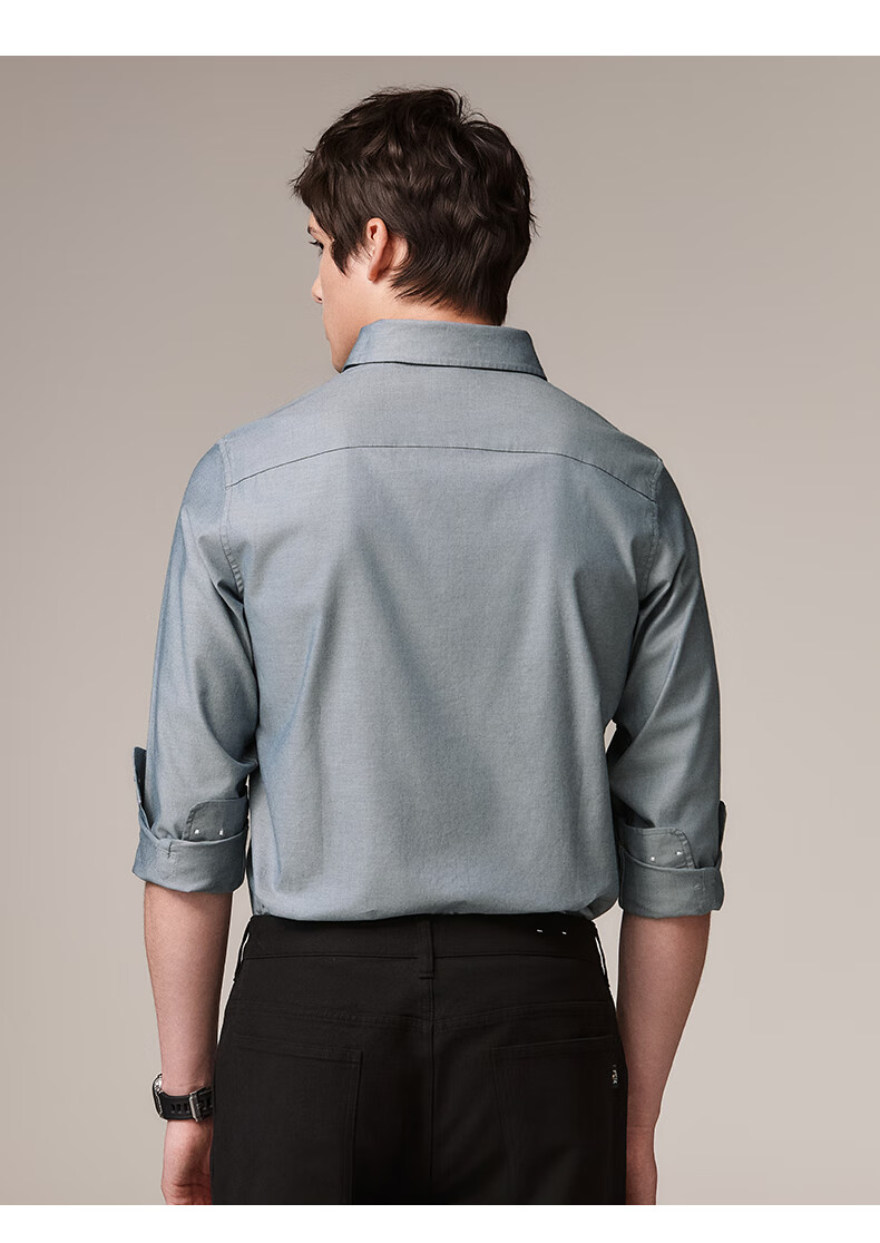 HAZZYS Men's Autumn Youth Cloth Commuting Shirt Solid Color Simple Long Sleeve Shirt Men ASCZK1BCK02 Navy Blue NV XL (180/100A 50)