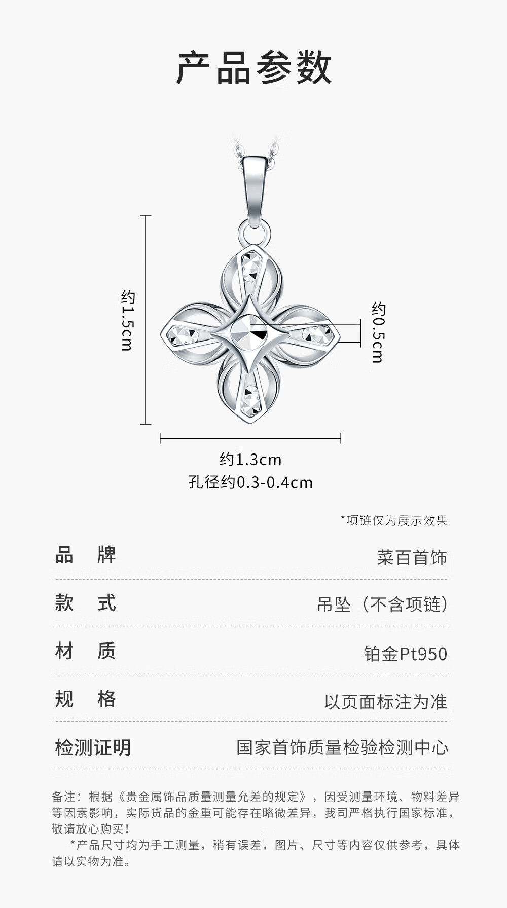 Caibai Jewelry Platinum Pendant Pt950 Pendant Fashion Niche Design Cross Flower Pendant Price BJ Platinum Pendant (excluding chain) About 2.10g