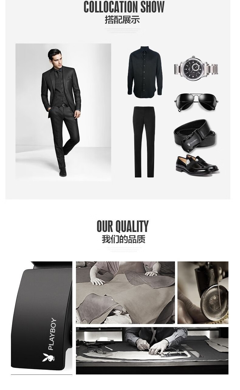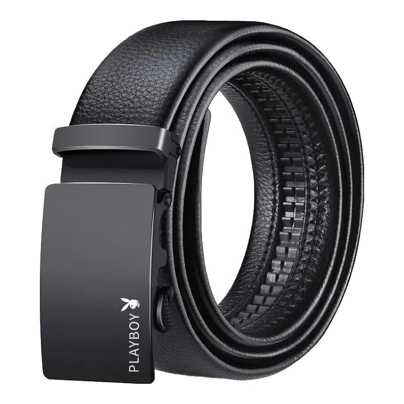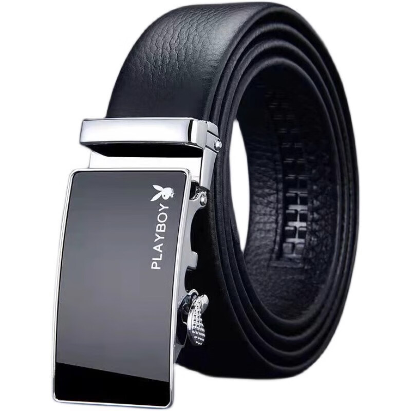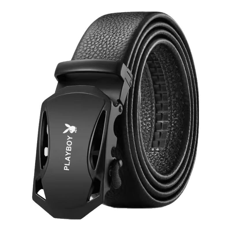 Playboy belt 2025 new belt men's automatic buckle middle-aged men's trouser belt high-end casual mirror black boy style 125cm