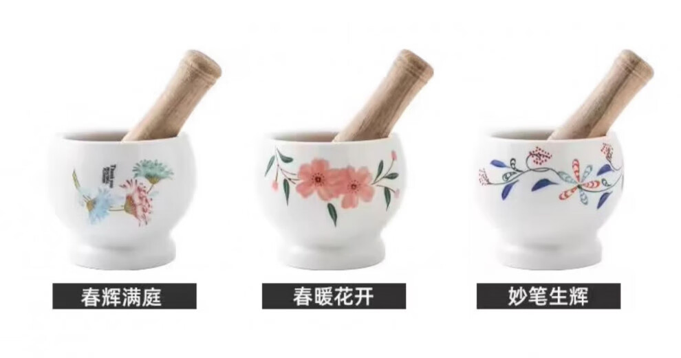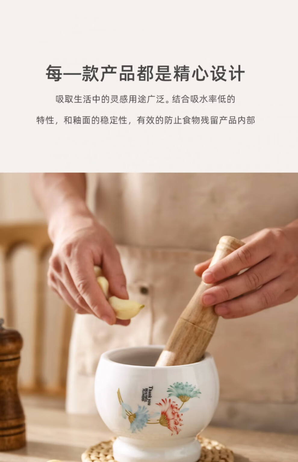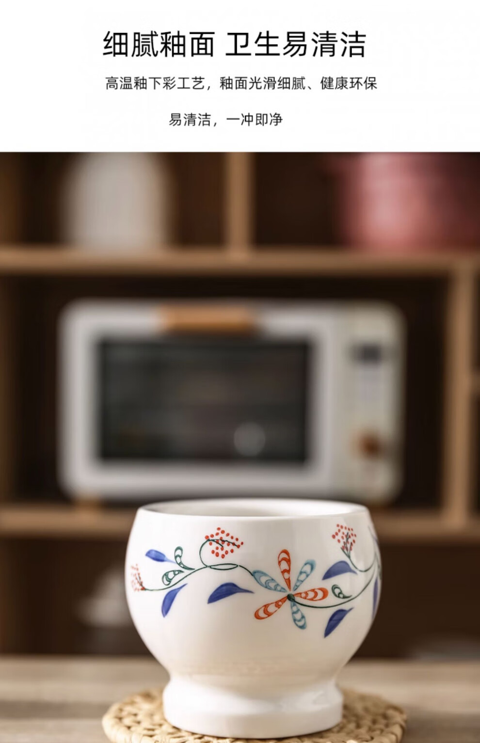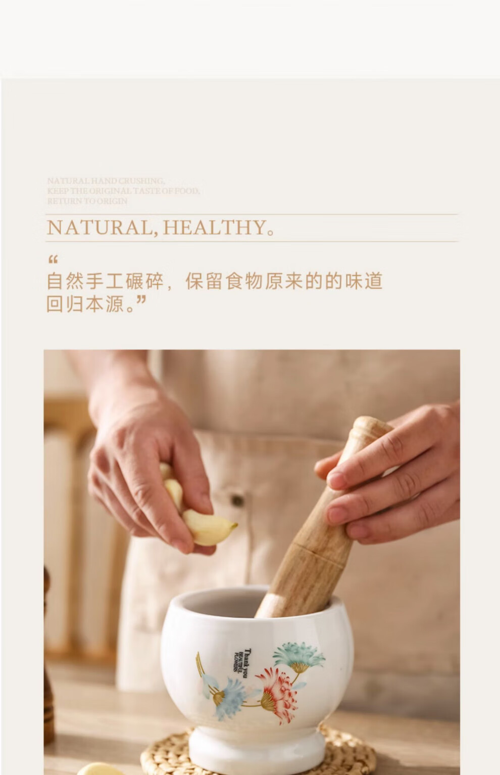 Blue garlic mortar, household ceramic garlic pounder, manual old-fashioned garlic pounding mortar, stone mortar, garlic paste jar, medicine grinder, blooming flowers, blue flower, small garlic pounder