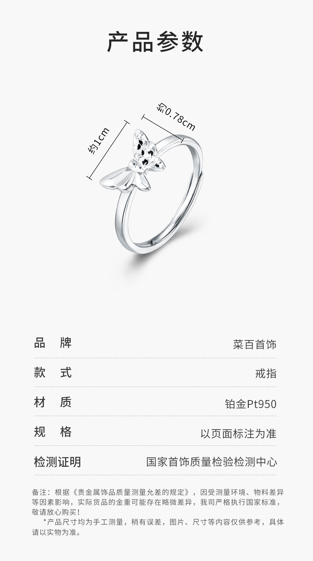 Caibai Jewelry Platinum Ring PT950 Platinum Flashing Crushed Ice Sweet Butterfly Ring Price BJ Platinum Ring Approximately 3.30g