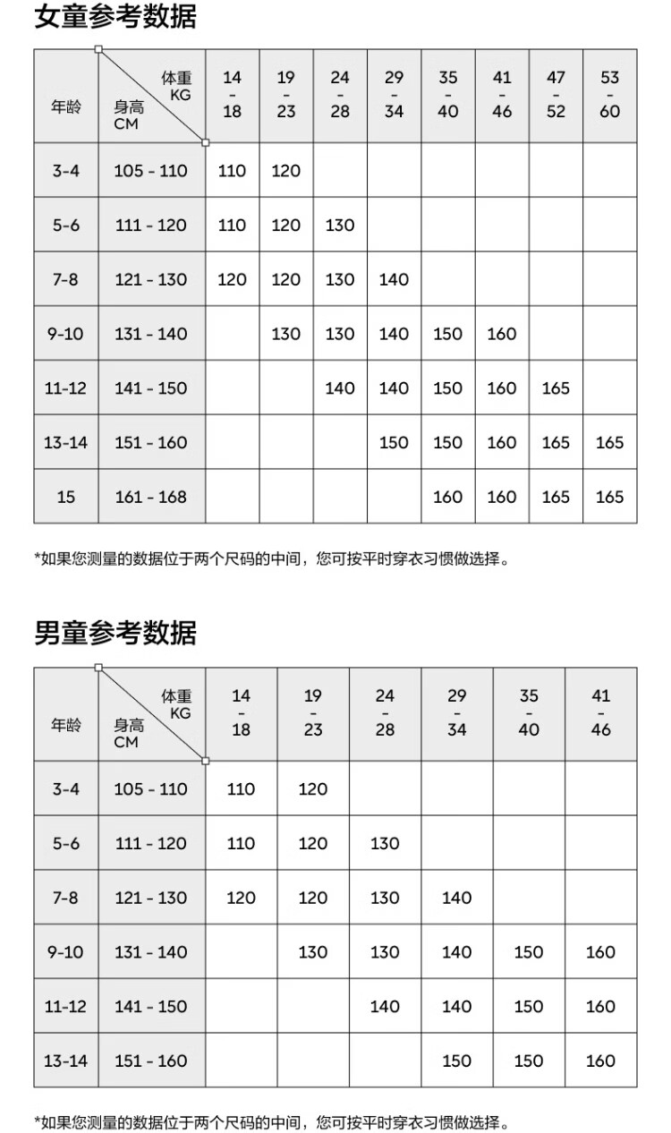 China (cm) 160-165/84-86 165-170 / 88-90 167-172 / 92-96 168-173 / 98-102 170-176 / 106-110