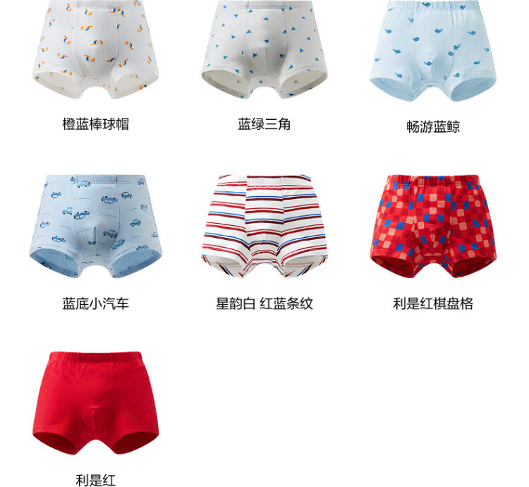Bananain Small Special Care 301C Children's Underwear Category A Boys and Girls Square Triangular Antibacterial Cotton Crotch Breathable Skin Friendly High Elasticity 3 Pieces Male Boxer Red and Blue Stripes + Lishi Red 1&2 160