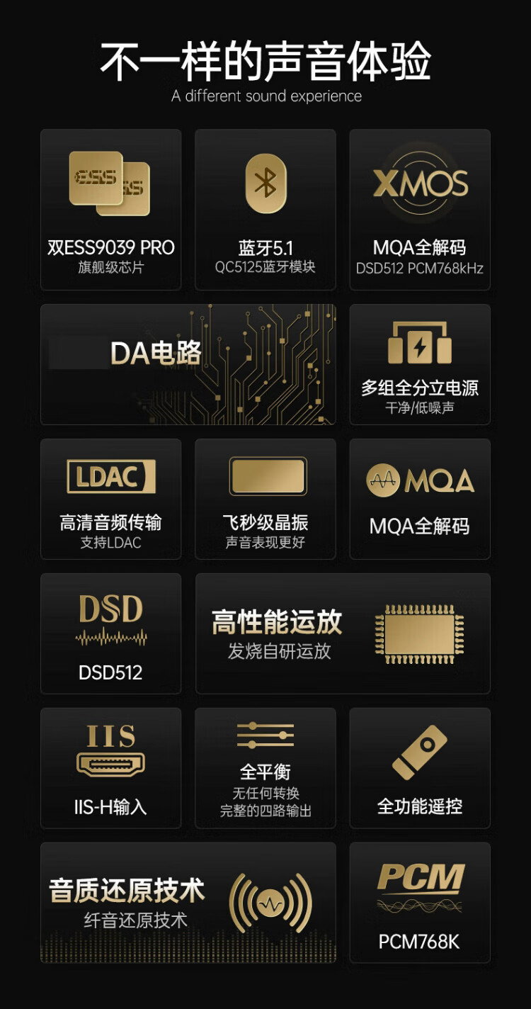 Kaiboer digital audio DAC professional audio decoder dual 9039Pro Bluetooth op amp MQA headphone amp integrated DSD lossless fever HIFI decoding upgraded version DAC decoder