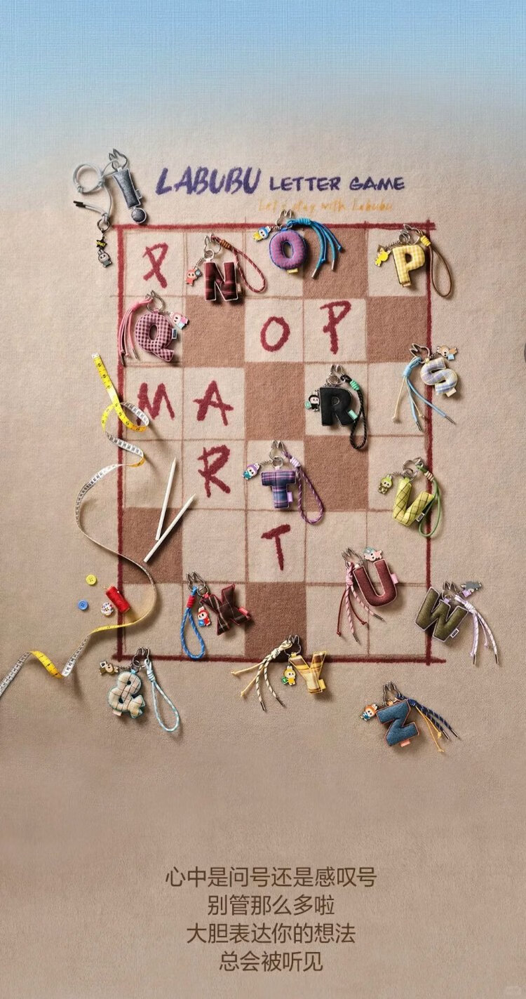 POPMART LABUBU Heart Password Letter Pendant Trend Keychain Genuine Blind Box Letter Pendant -J- Unpacking to Confirm Ready Stock Official Genuine