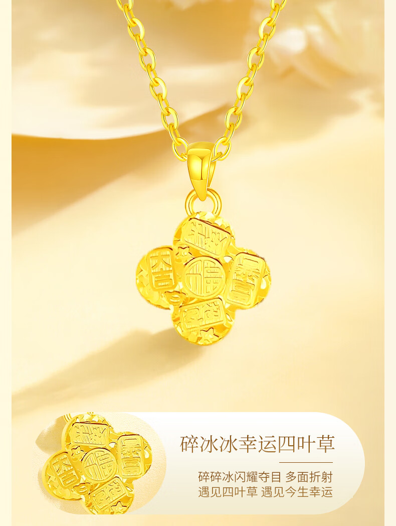 China Gold (CHINA GOLD) Four-leaf clover gold necklace women's 18K gold pendant birthday gift for girlfriend and wife practical for wedding anniversary 18k lucky four-leaf clover pendant-free 925 silver chain