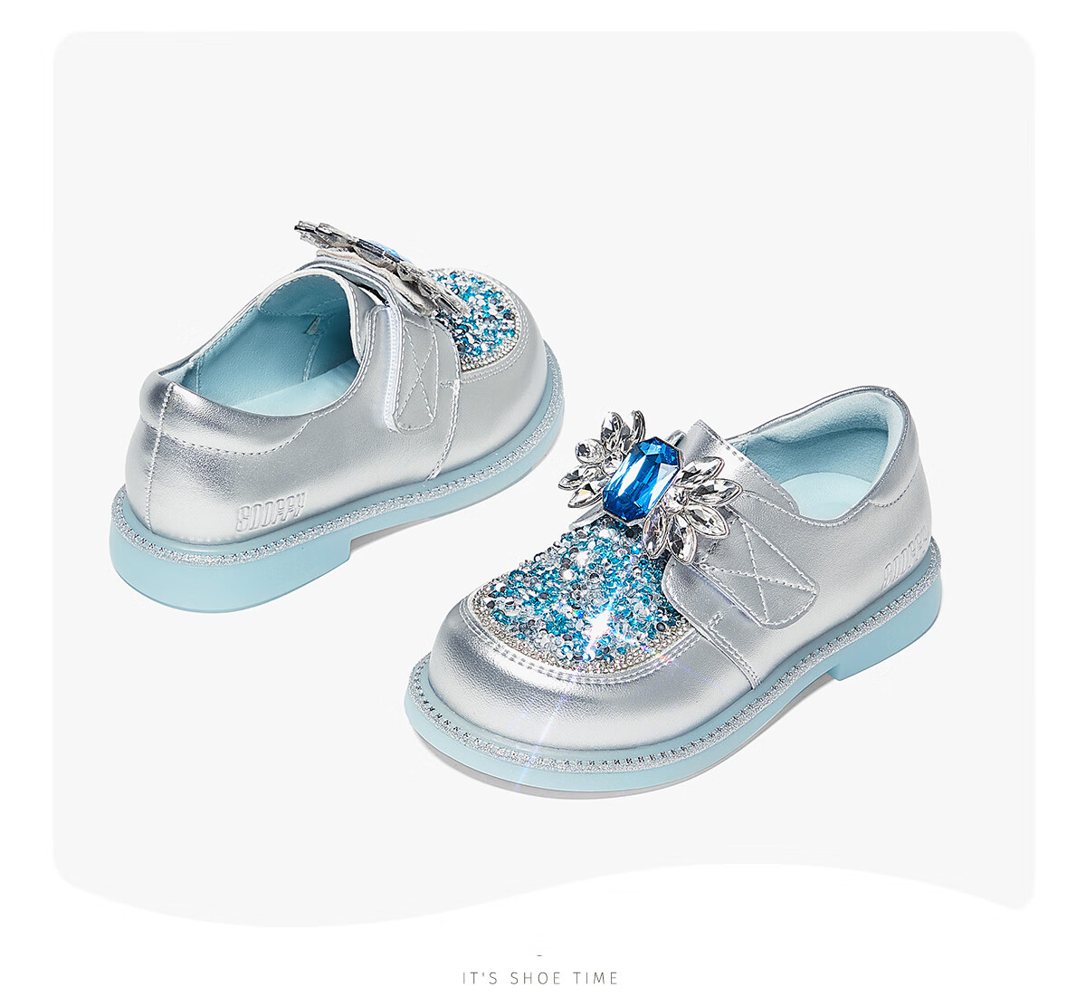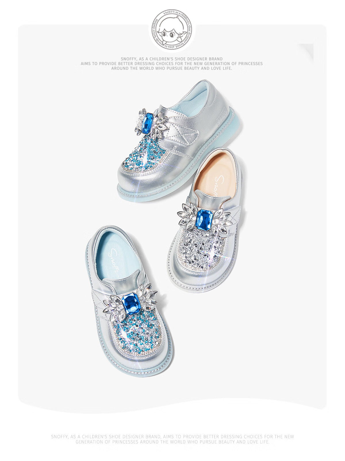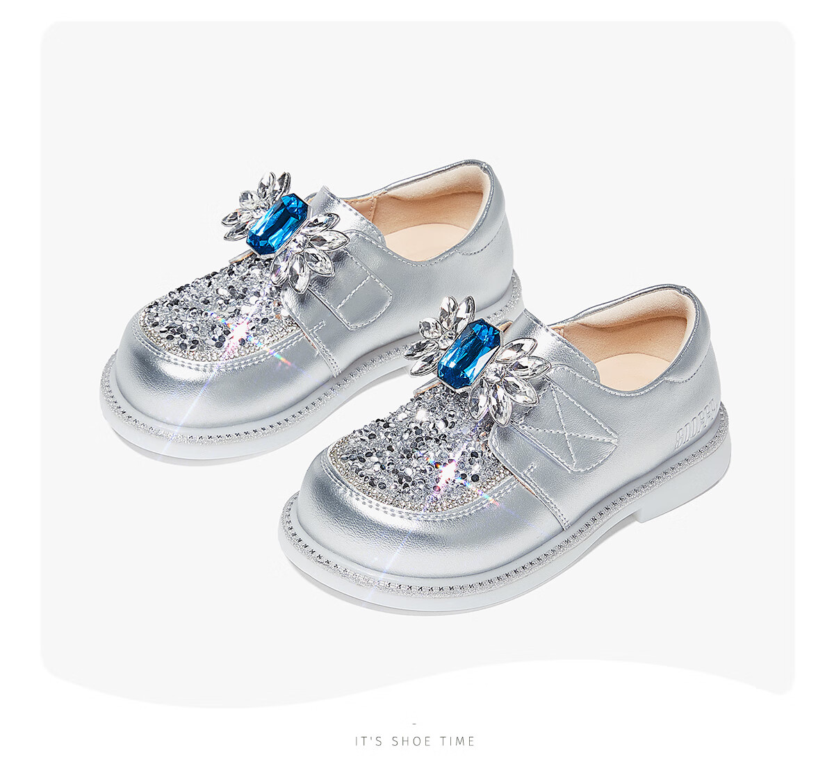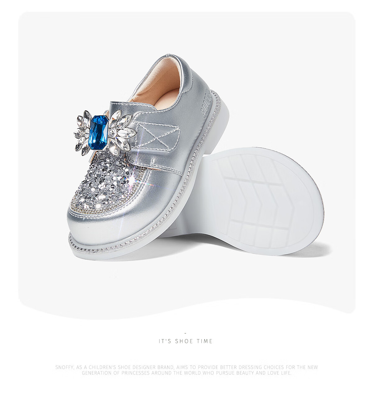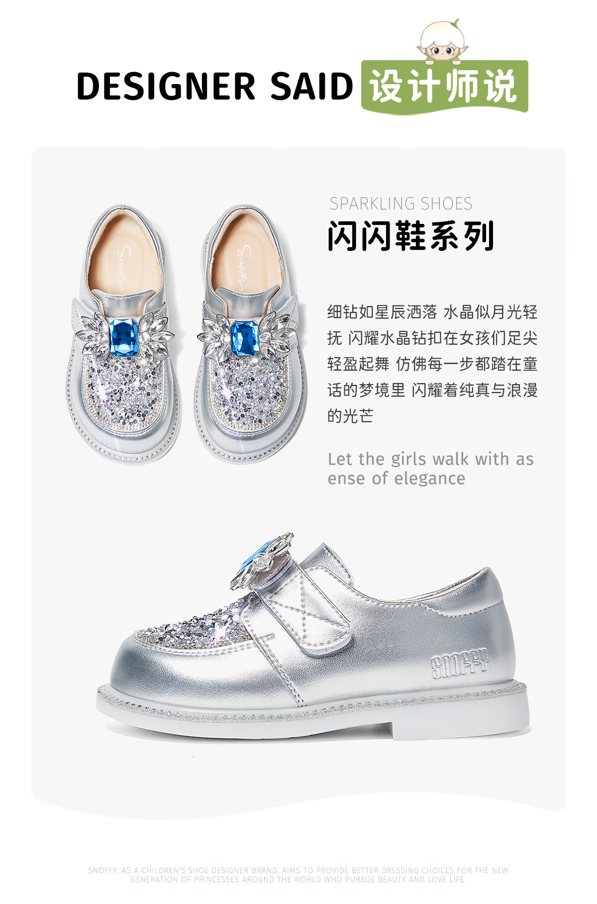 Snafy shopping mall same style children's leather shoes spring and autumn new soft sole girls princess shoes foreign style single shoes moonlight silver/blue 29 foot length 17.4cm