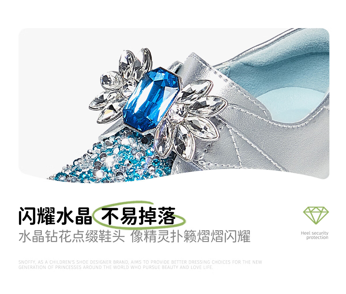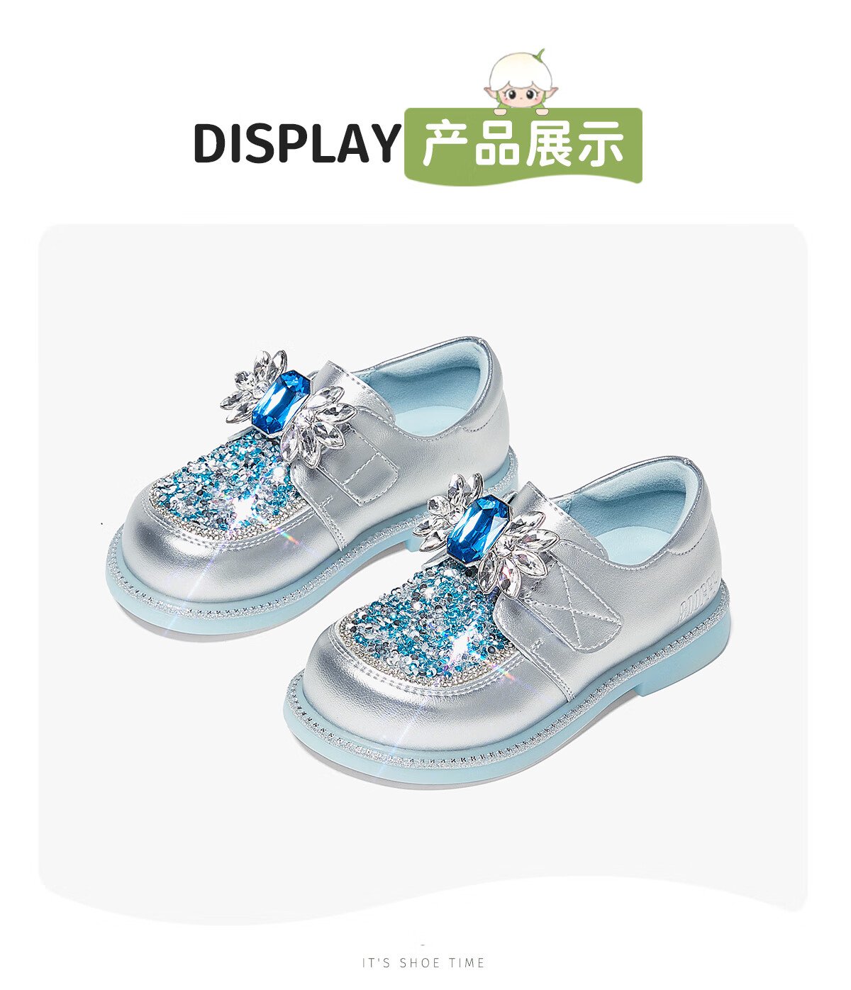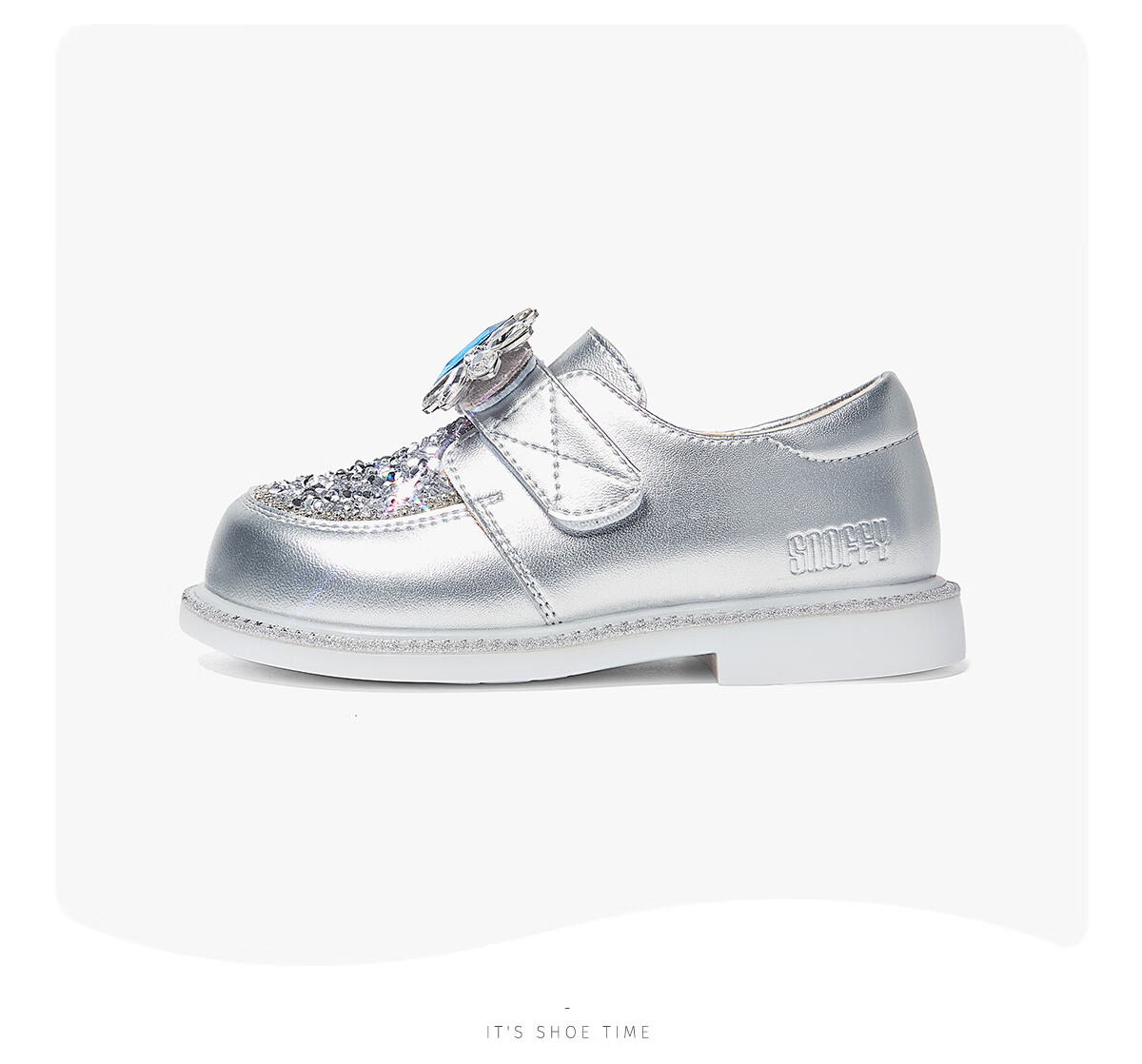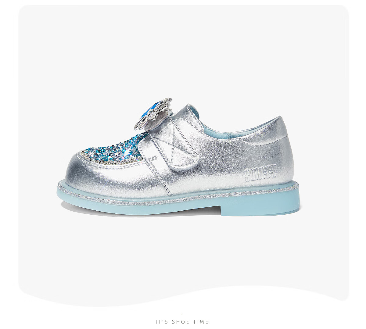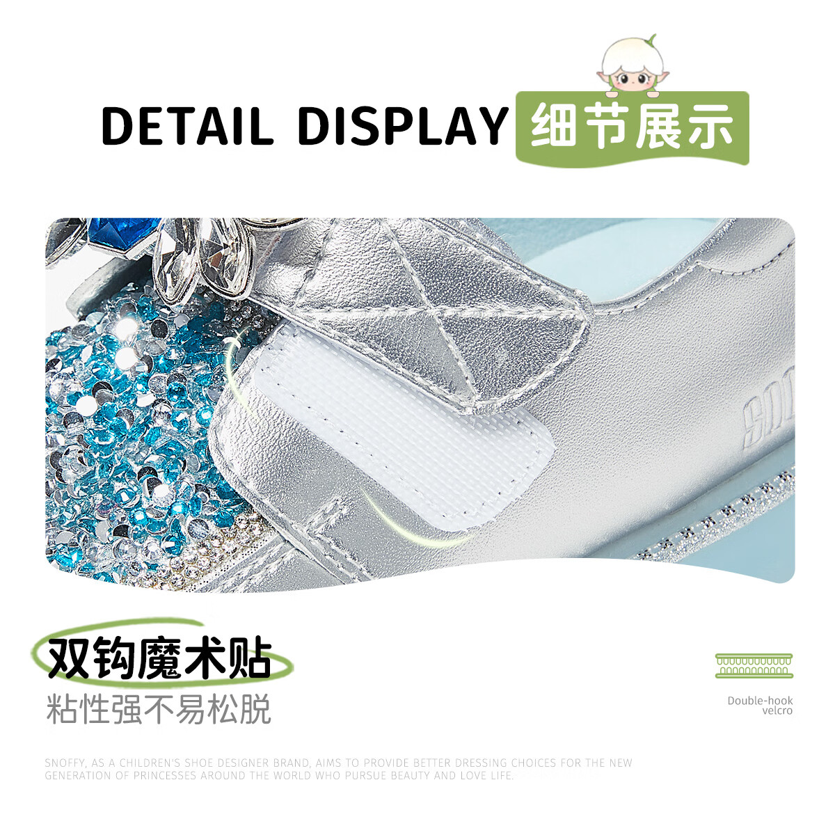 Snafy shopping mall same style children's leather shoes spring and autumn new soft sole girls princess shoes foreign style single shoes moonlight silver/blue 29 foot length 17.4cm