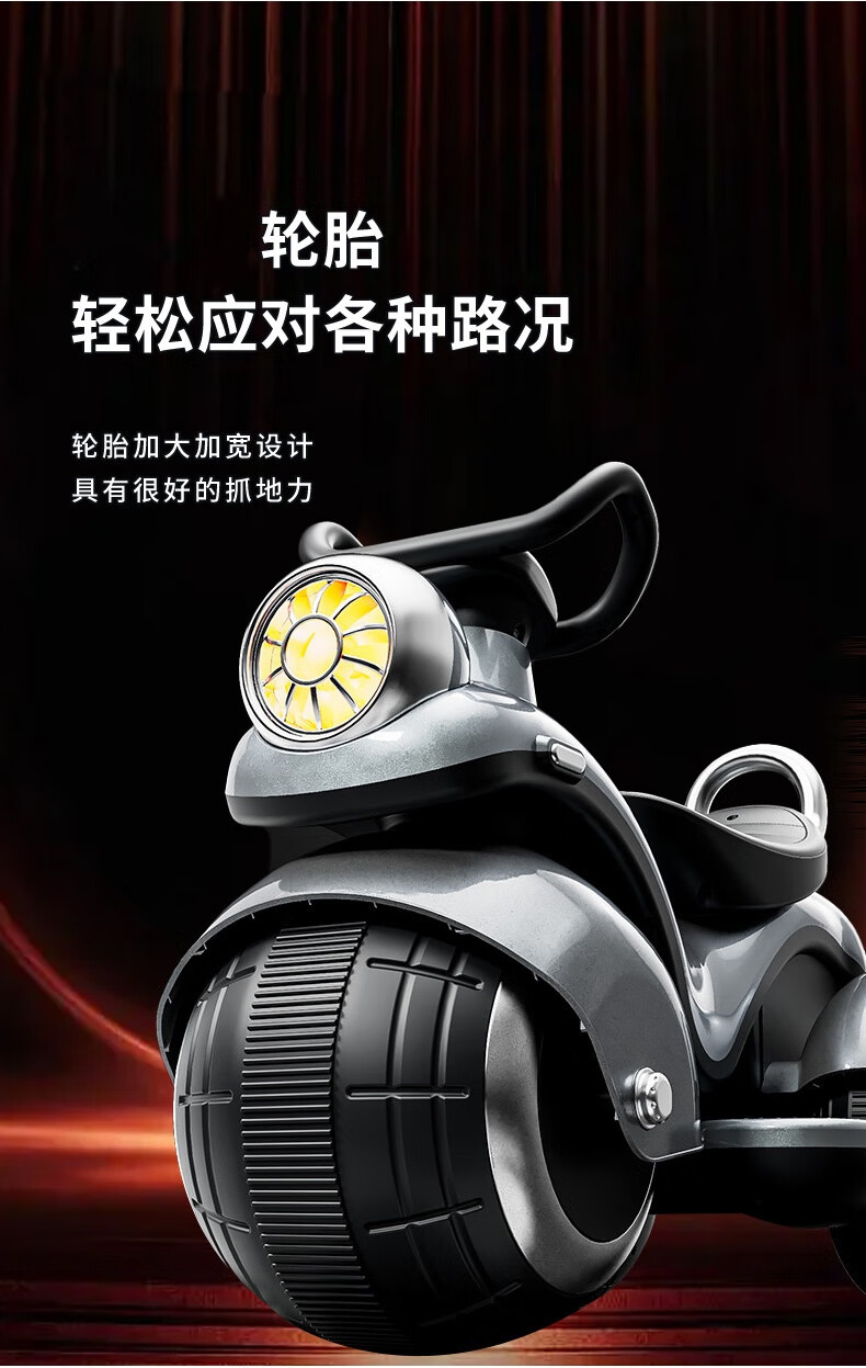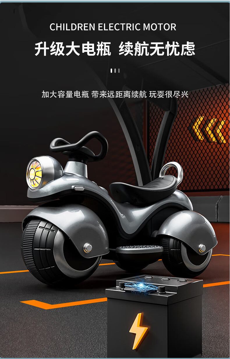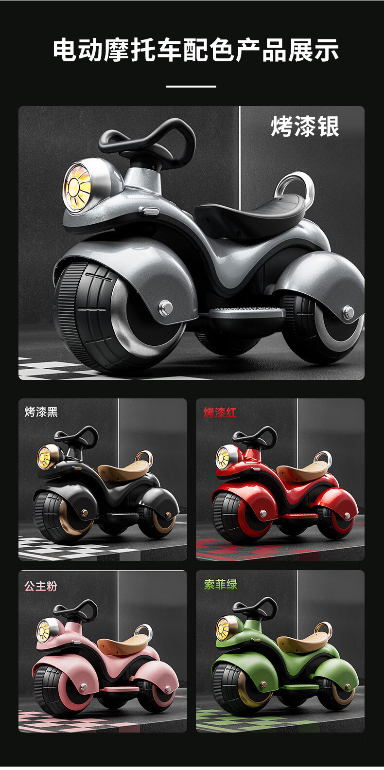 Children's electric motorcycle for boys and girls, tricycle, baby toy car, baby can sit on it, children's remote control charging stroller, painted silver dual drive + remote control + music + Bluetooth