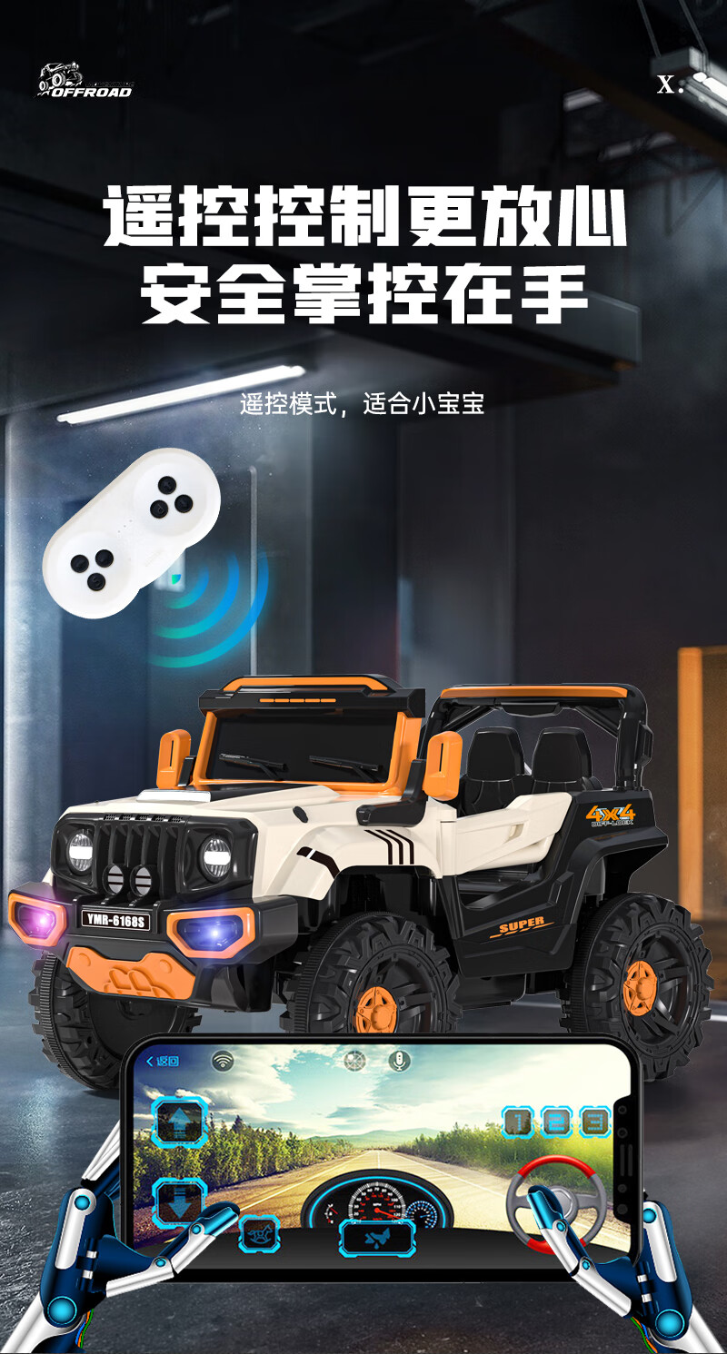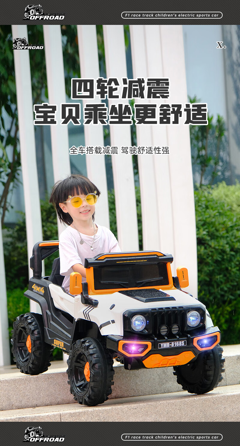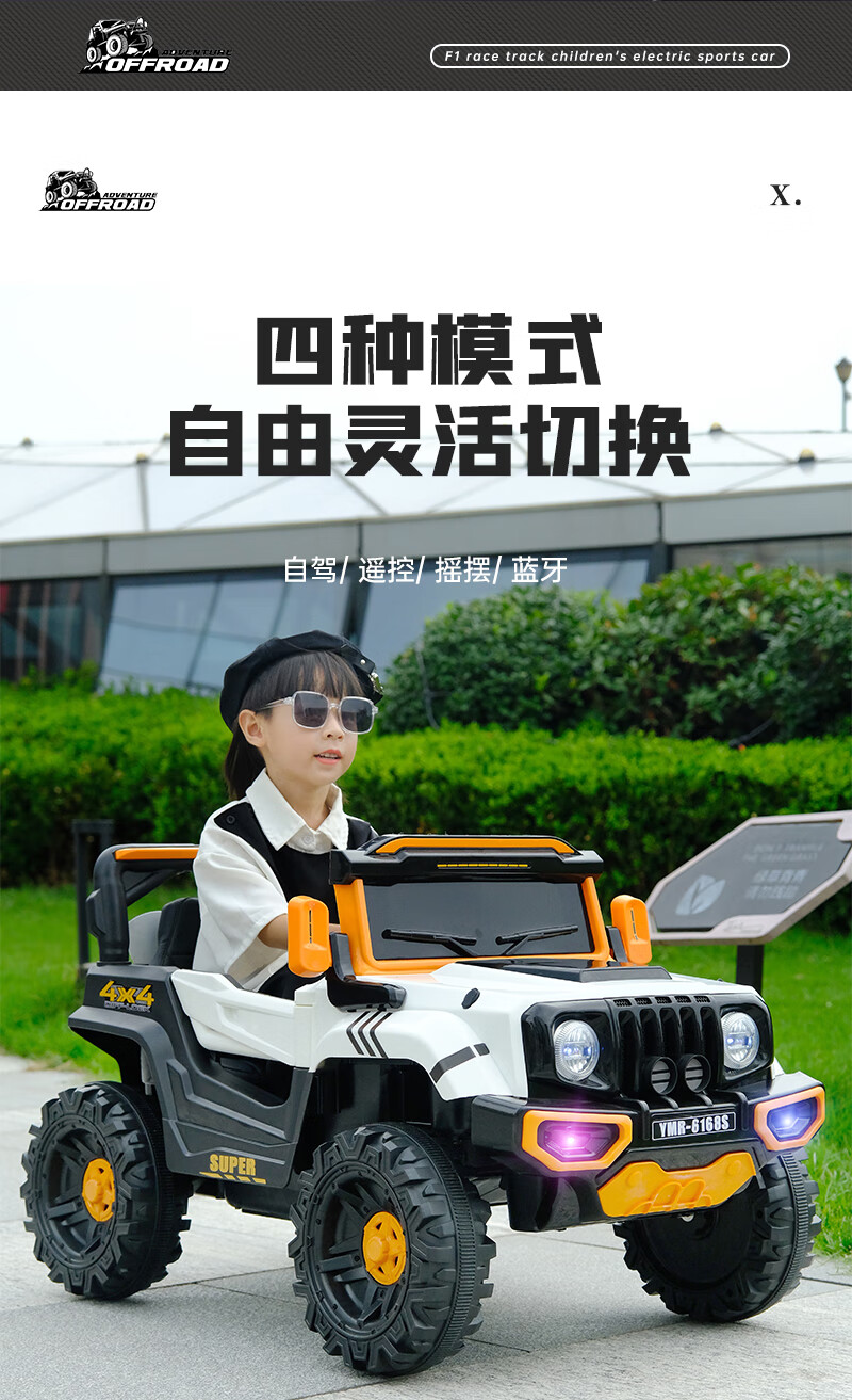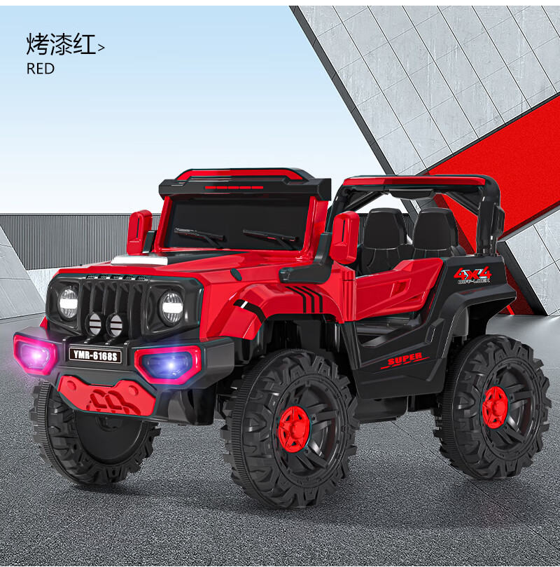 Children's electric car four-wheeled with remote control baby car male and female children's toy car can sit on four-wheel drive off-road stroller Painted red four-wheel drive/remote control/Bluetooth music/swing/leather seat +12v large battery