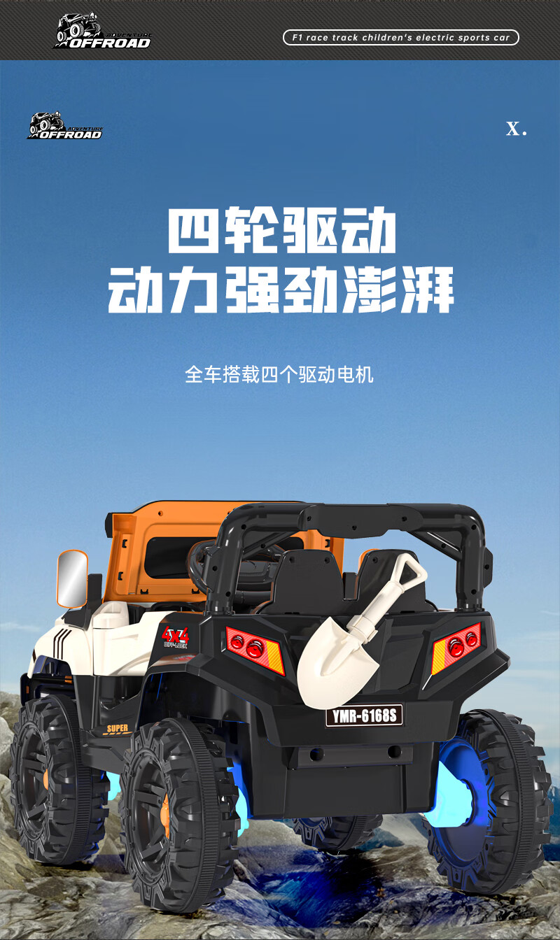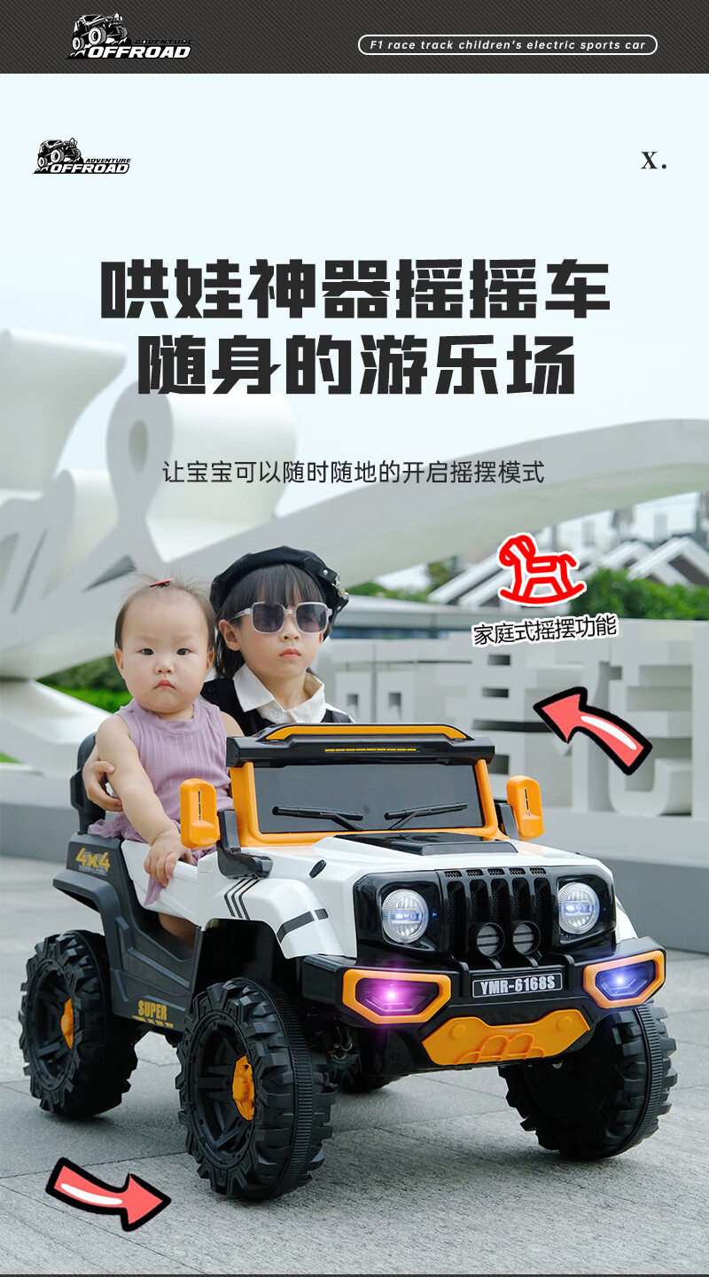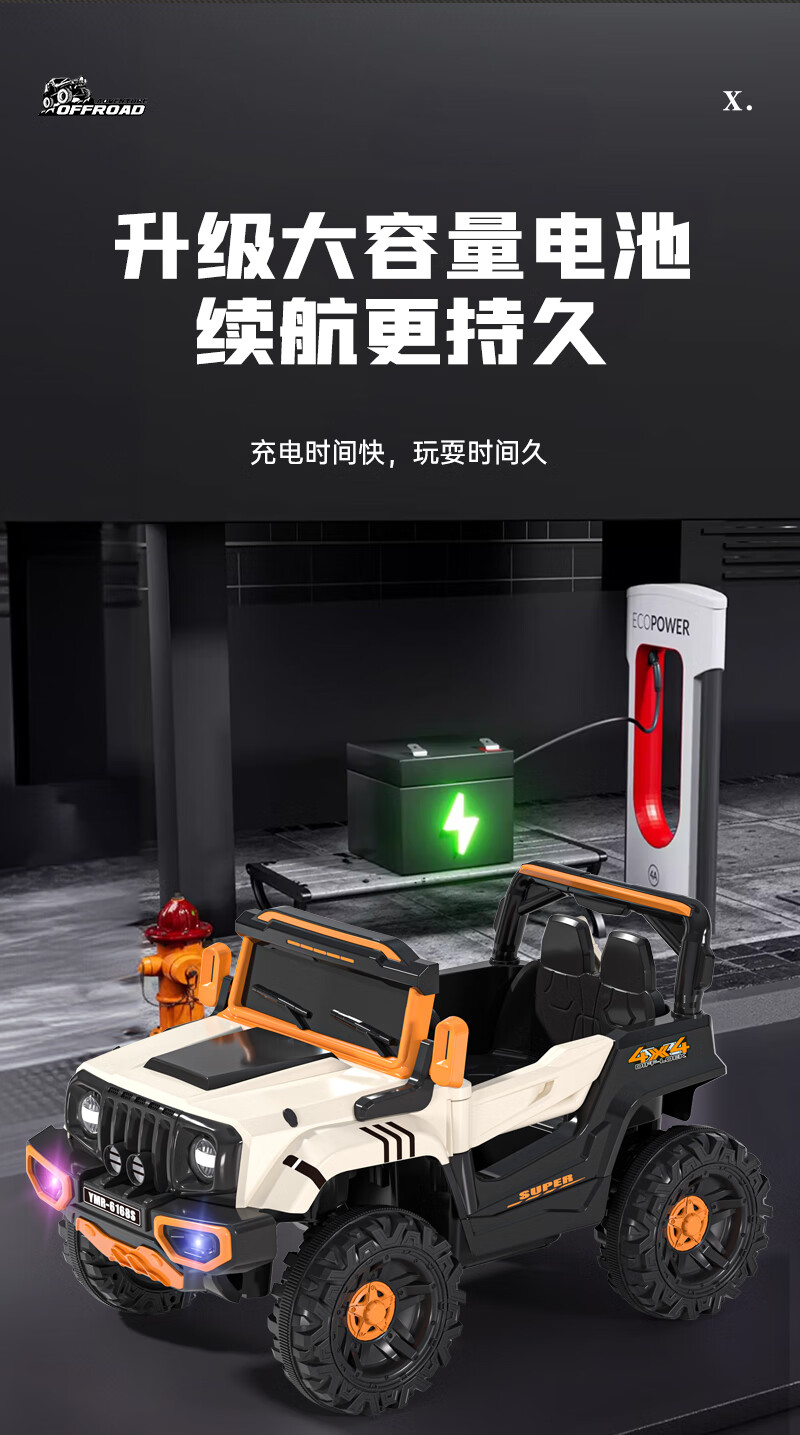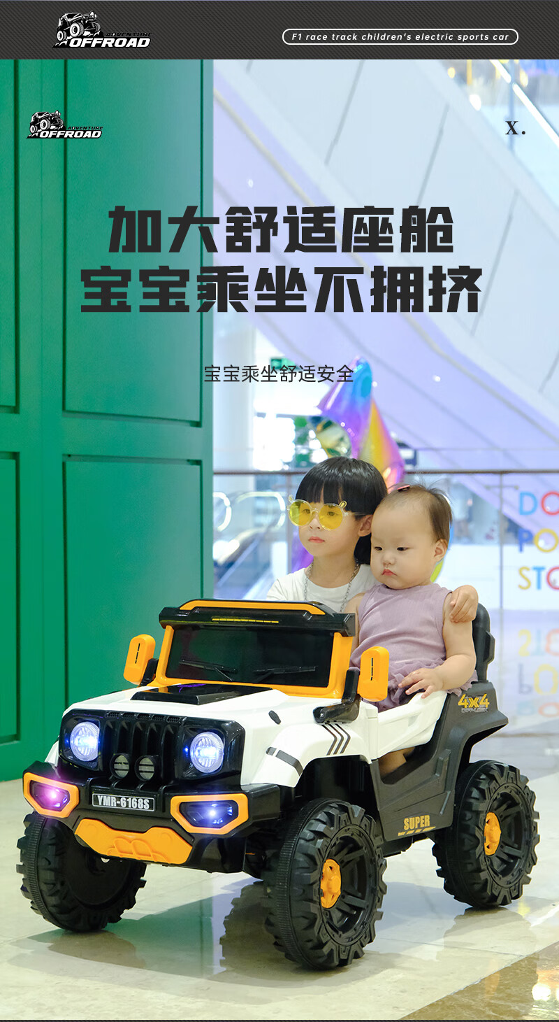Children's electric car four-wheeled with remote control baby car male and female children's toy car can sit on four-wheel drive off-road stroller Painted red four-wheel drive/remote control/Bluetooth music/swing/leather seat +12v large battery