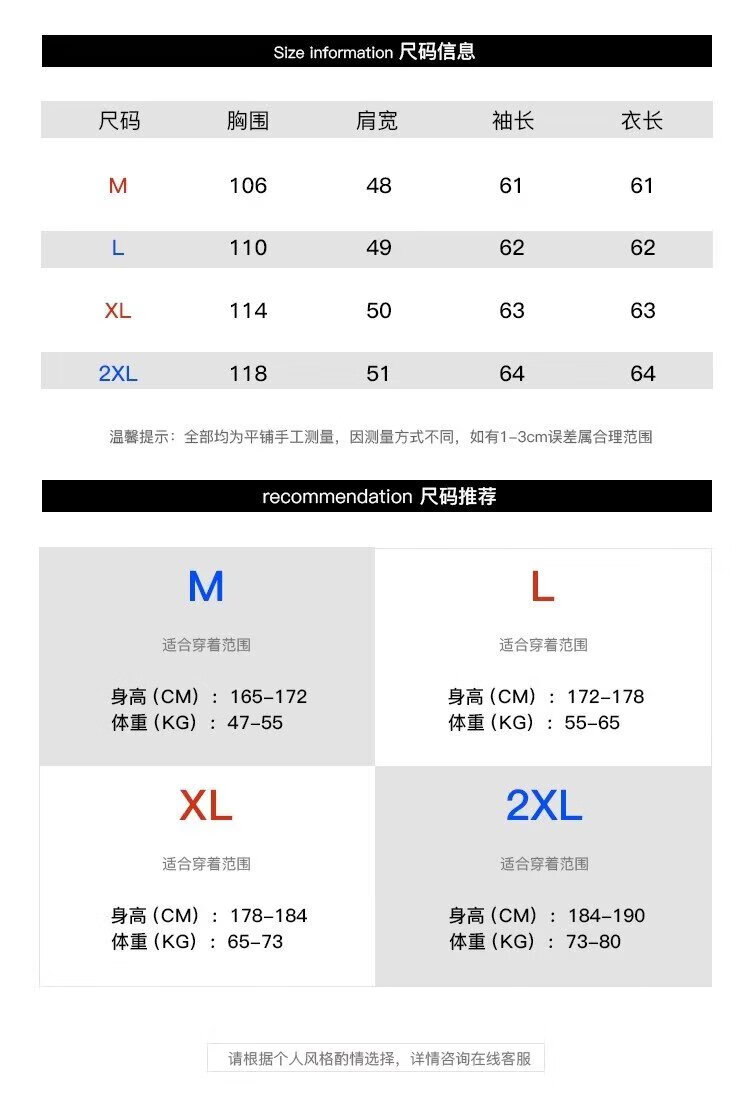 China (cm) 165 / 88-90 170 / 96-98 175 / 108-110 180 / 118-122 185 / 126-130