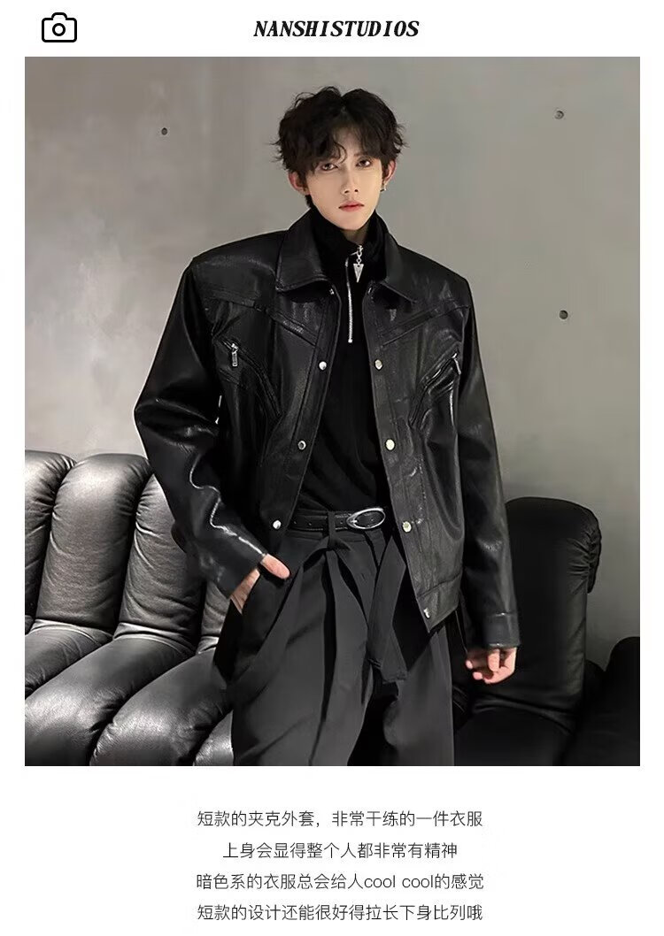 Leather Jacket Men's 2025 Autumn New Retro Versatile Hong Kong Style Casual Leather Jacket Handsome Fashion Slim Top Black High-End Quality XL