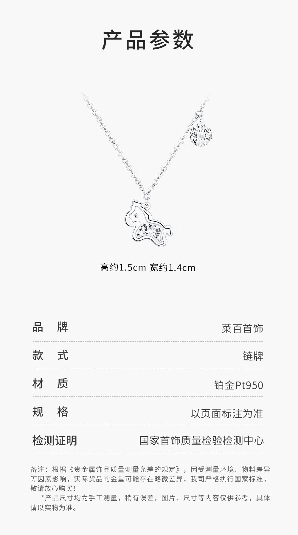 Caibai Jewelry Platinum Chain Tag Pt950 Explosive Crushed Ice Make Money Immediately Zodiac Horse Chain Tag Priced BJ Platinum Chain Tag Approximately 6.14g Approximately 42cm