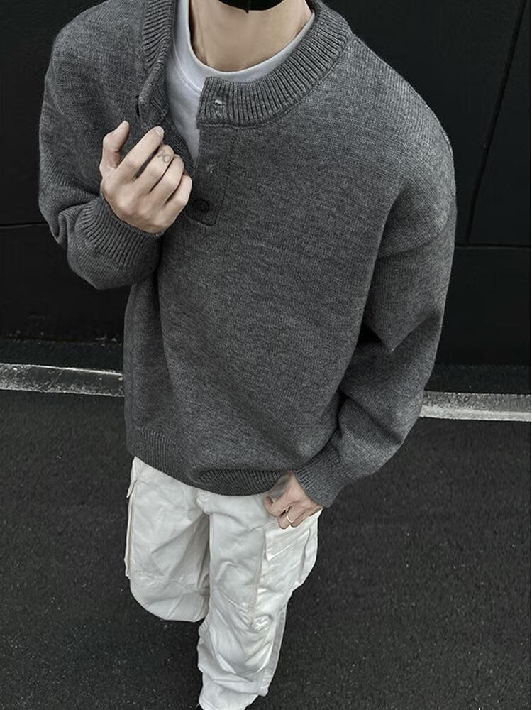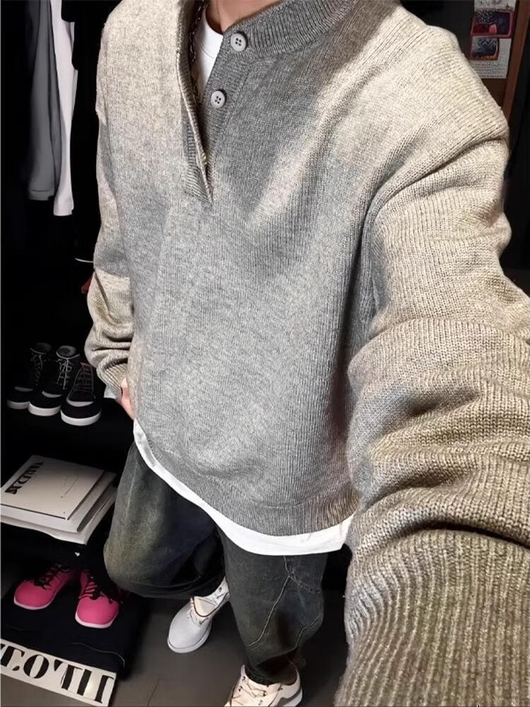 Yiran's new sweater for men in autumn, American Henry, lazy style, cleanfit, fashionable bottoming top for men, light gray XL, recommended 115-140Jin Jin is equal to 0.5 kg