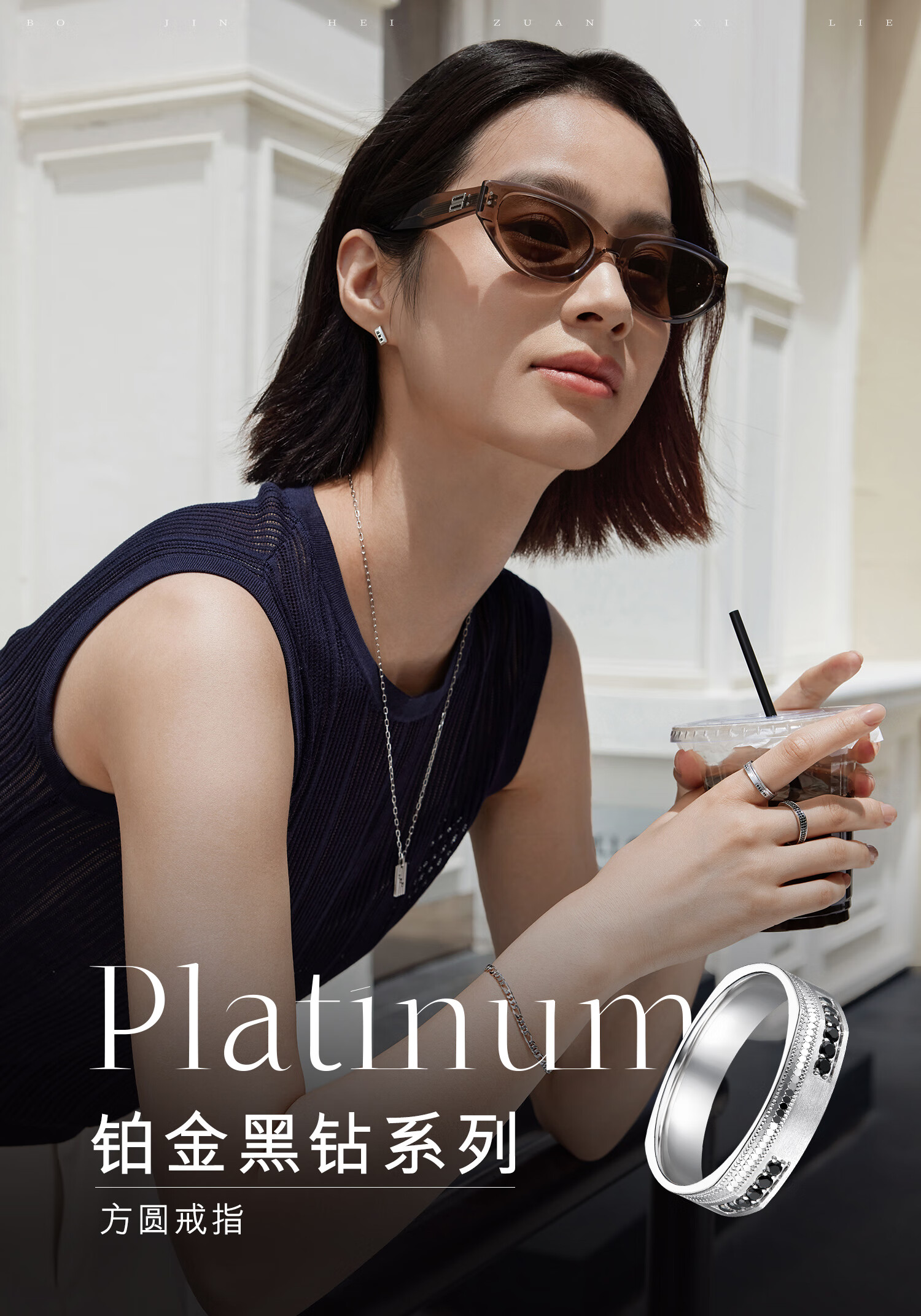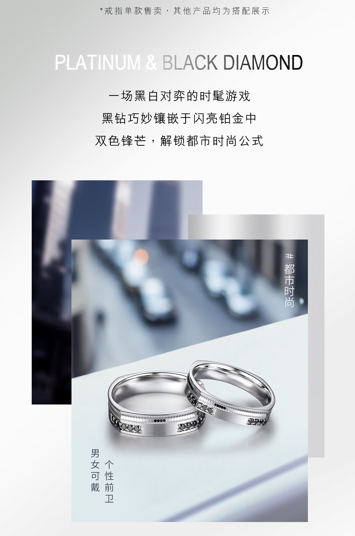 Lukfook Jewelry Black Diamond Series Platinum 950 square round hand-drawn platinum ring for men and women, single HEJ0004DS No. 17 - total weight 7.42 grams, men's style