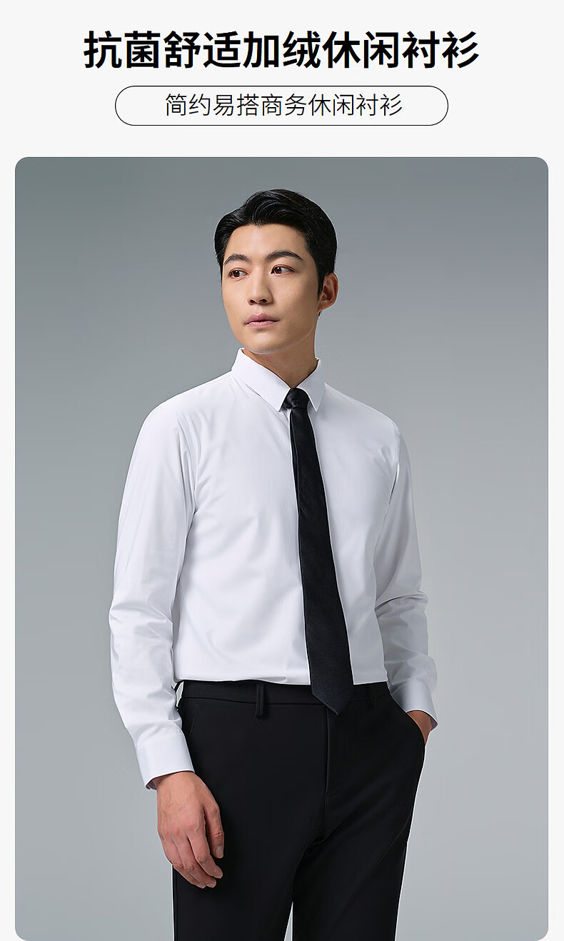 Lilan plus velvet shirt men's long-sleeved winter warm shirt antibacterial 2025 new solid color business men's thickened shirt white (G5DZC8014Y) 41