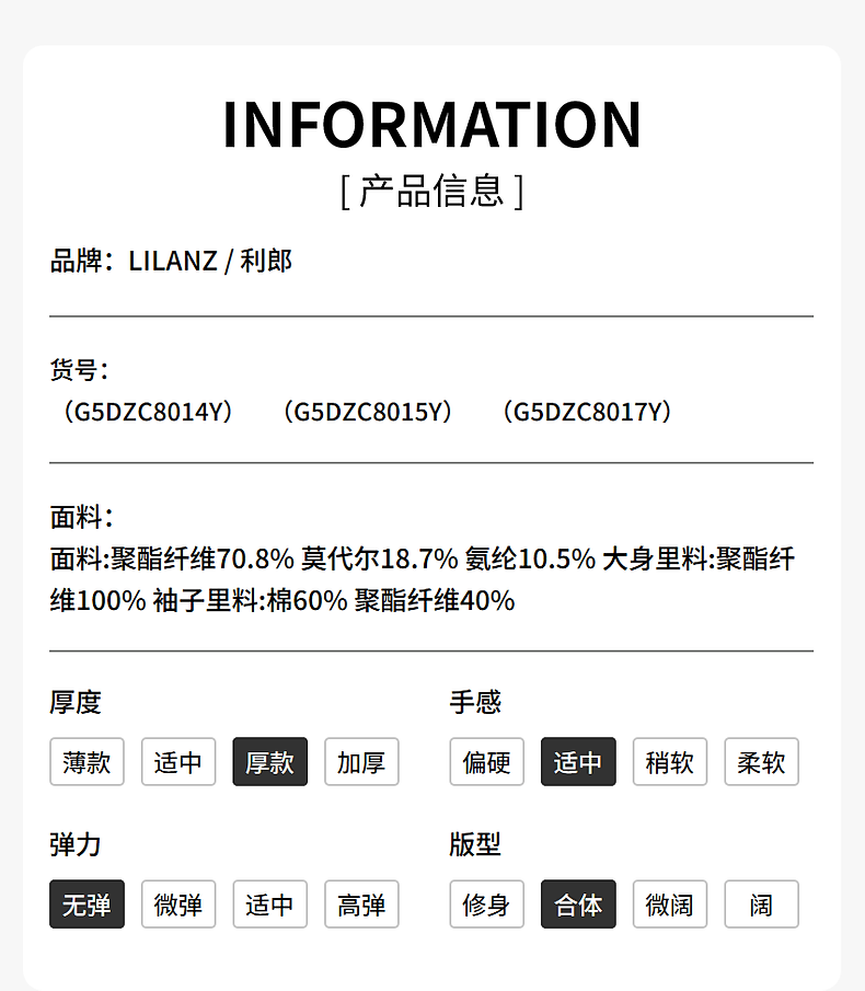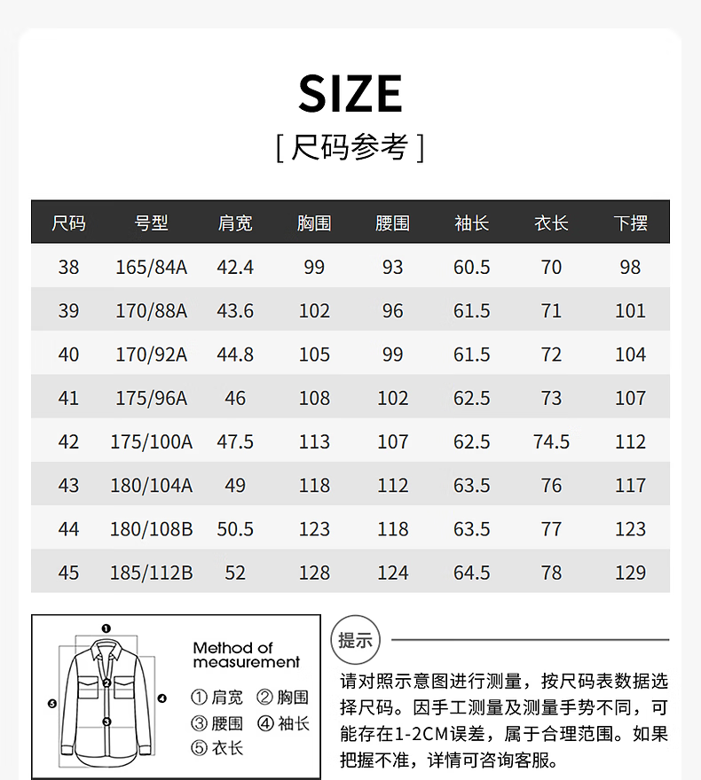 China (cm) 160-165/84-86 165-170 / 88-90 167-172 / 92-96 168-173 / 98-102 170-176 / 106-110