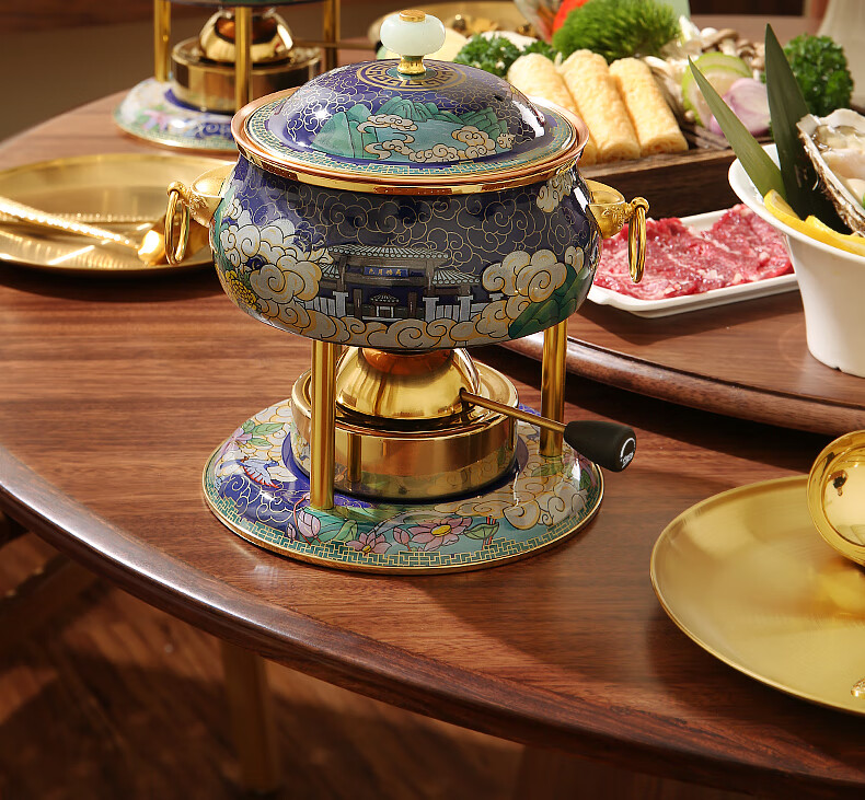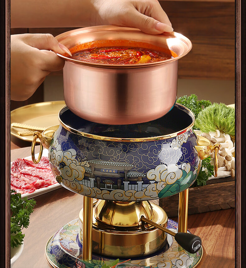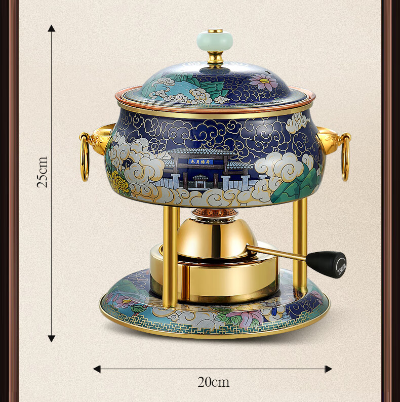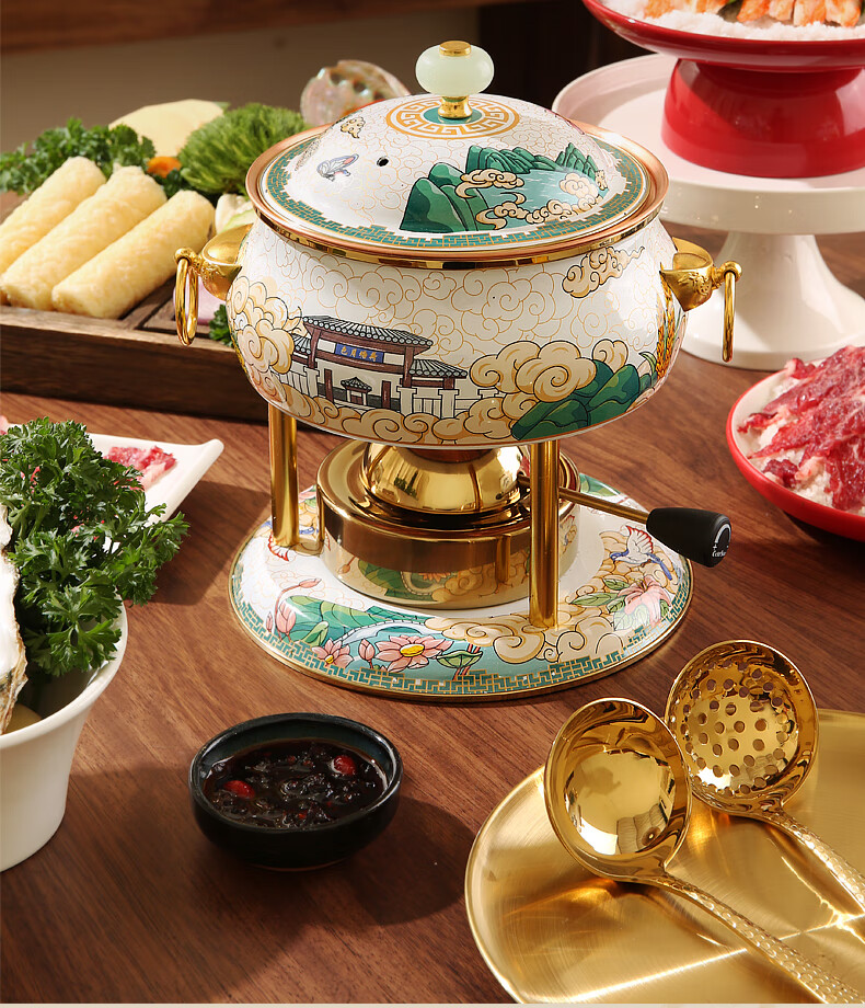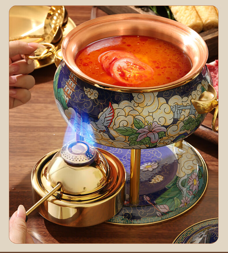 Diston small hot pot pot, one person, one pot, single hot pot, cloisonné copper hot pot special pot, enamel pot, gas inflatable stove, white lotus enamel single copper pot set, 17cm EU certified Taiwan imported stove core