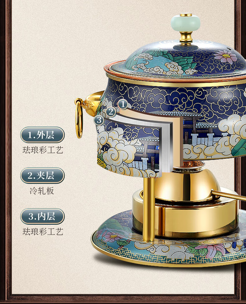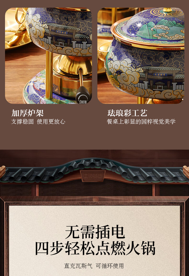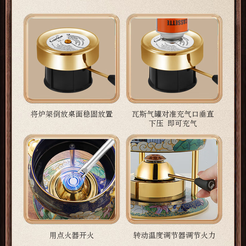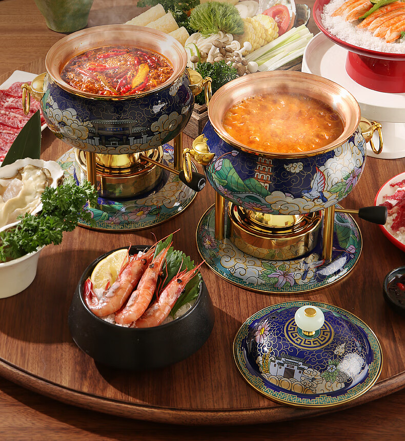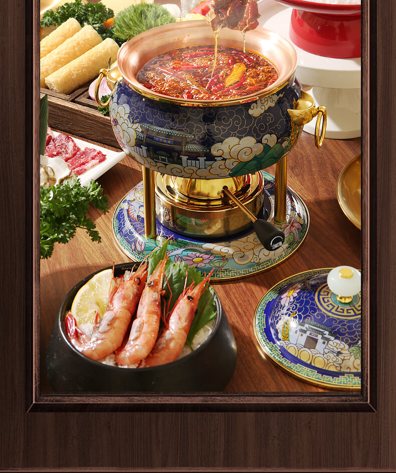 Diston small hot pot pot, one person, one pot, single hot pot, cloisonné copper hot pot special pot, enamel pot, gas inflatable stove, white lotus enamel single copper pot set, 17cm EU certified Taiwan imported stove core