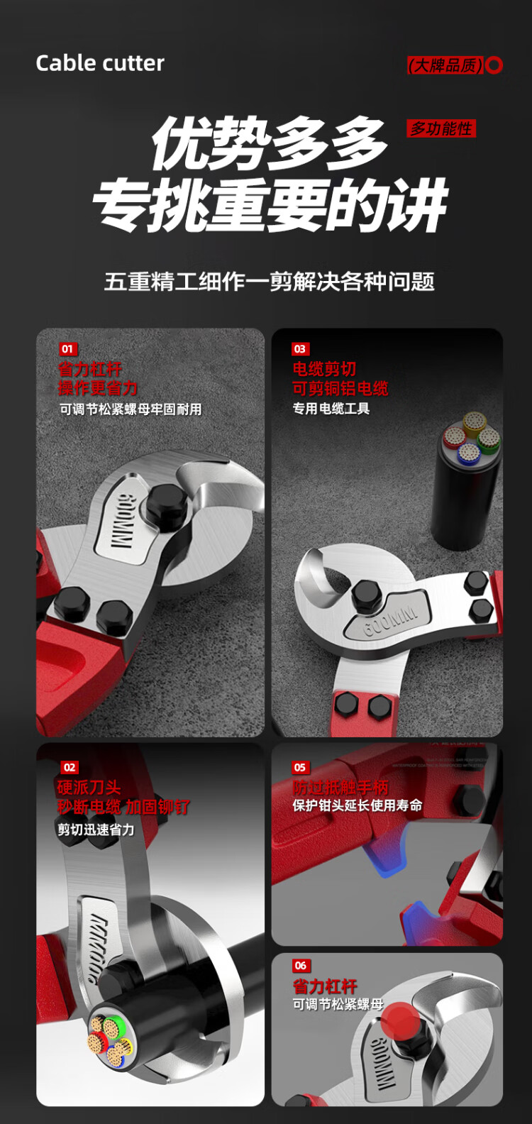 Xiaoxiao (SHALL) cable scissors, wire cutters, crescent scissors, industrial heavy-duty Japanese-style cable pliers, copper-aluminum core cable cutting, eagle-beak quick cutter, 12-inch heavy-duty cable cutter, copper-aluminum core
