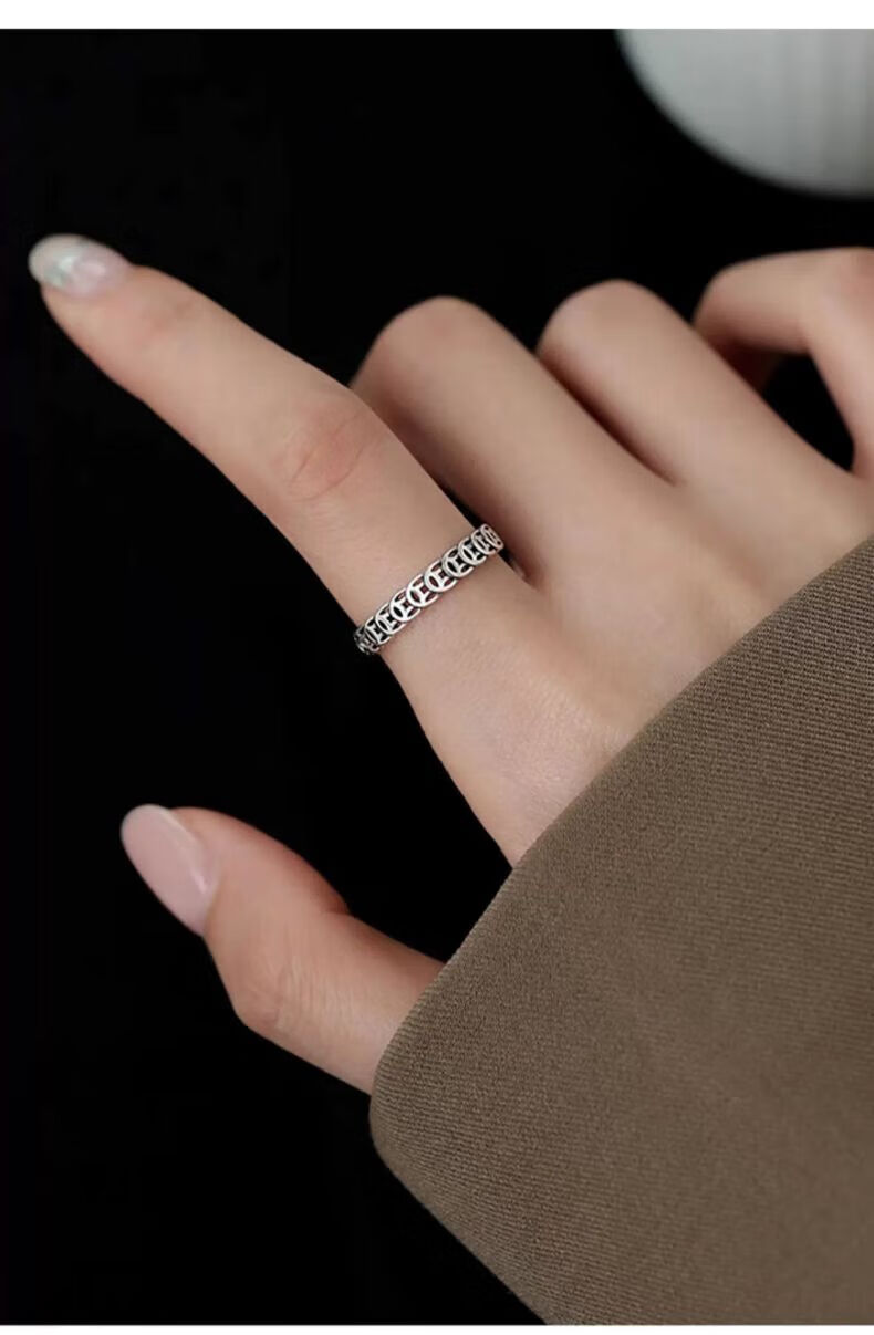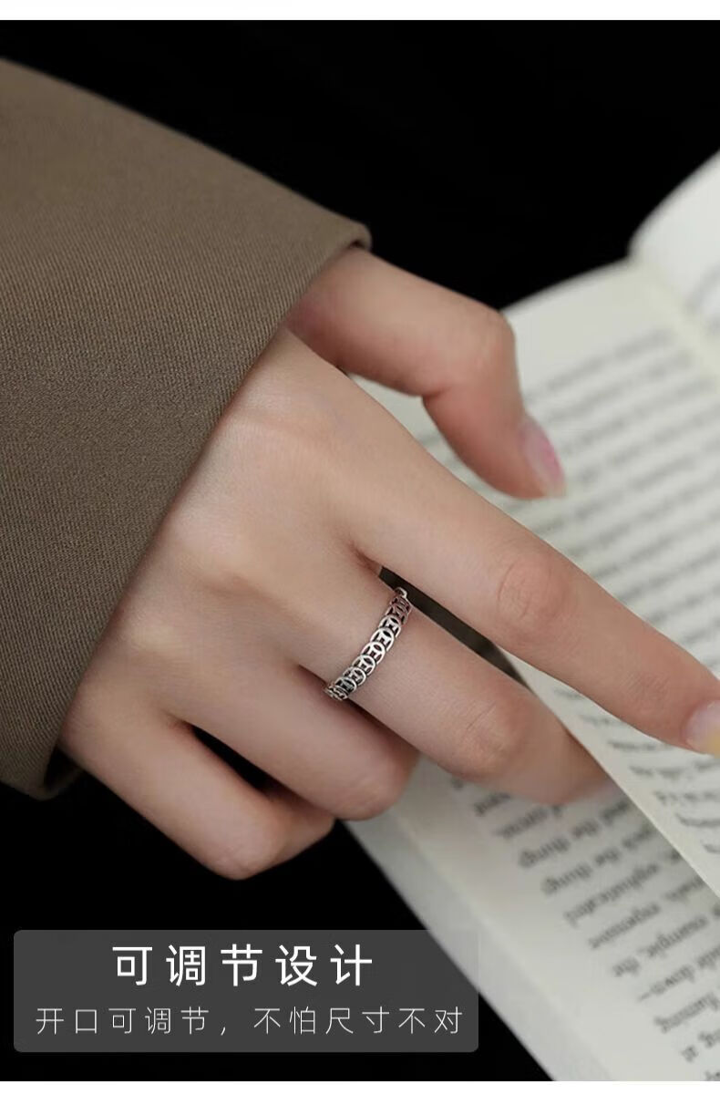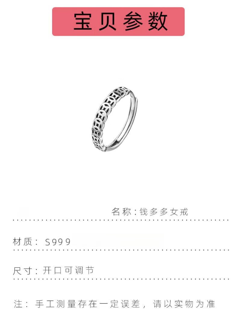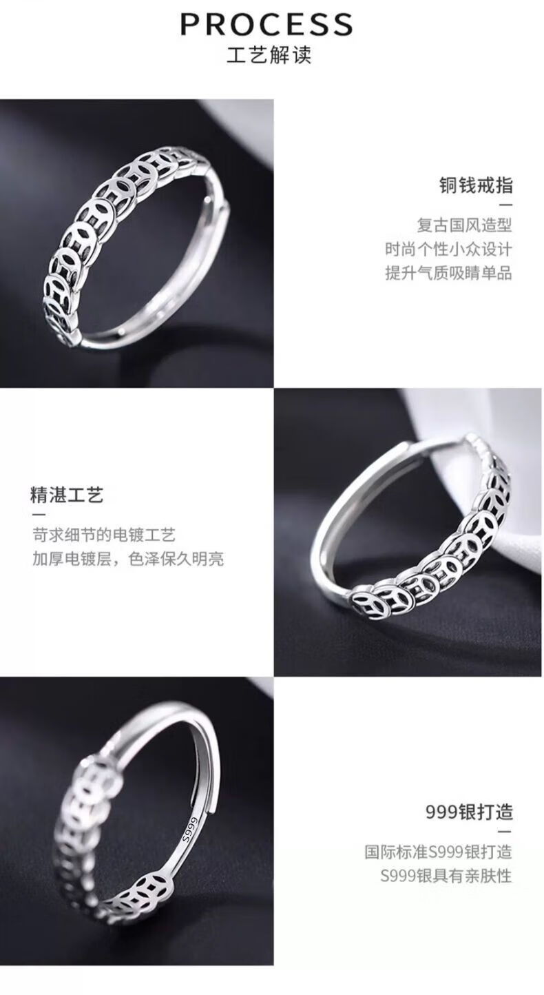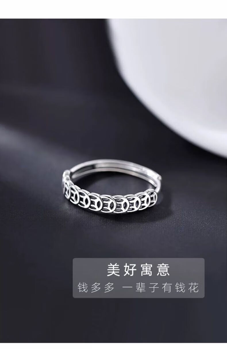 Jiaye 999 Copper Coin Full Silver Ring Mahjong Fortune Duoduo Index Finger Opening Ins Retro Ring Personalized Gift for Best Friend Qian Duoduo Ring