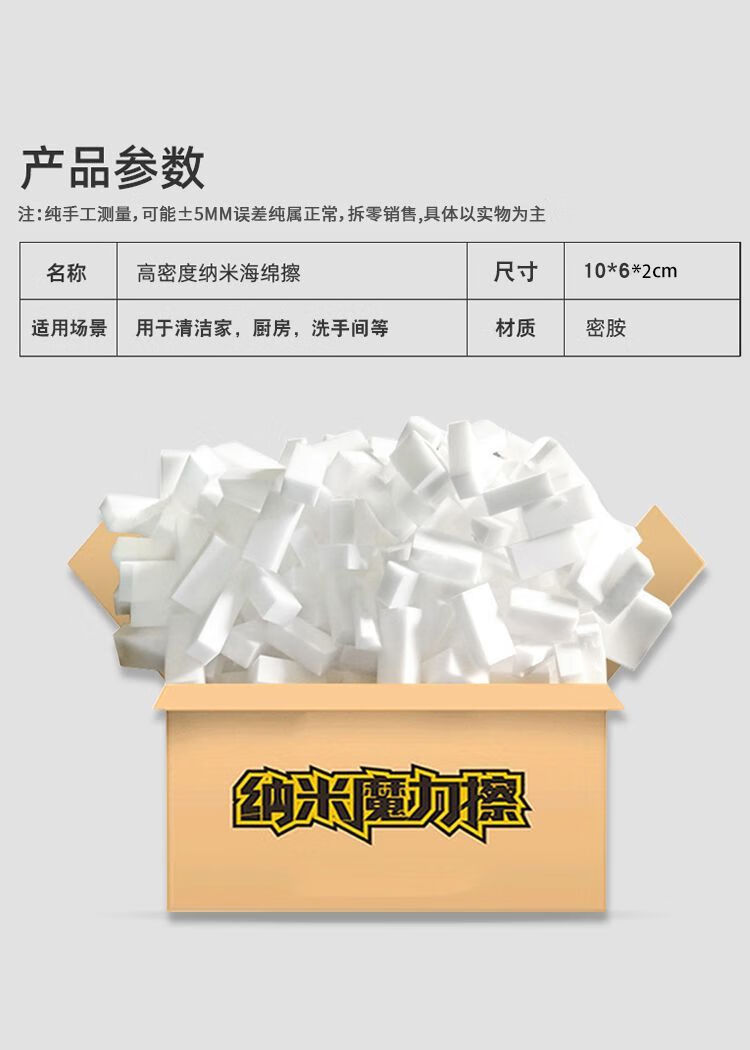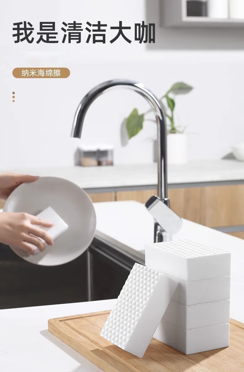Nano sponge magic wipe for decontamination and cleaning, household kitchen dishwashing, pot washing, tea cup cleaning, shoe polishing, high-density magic wipe 100 pieces