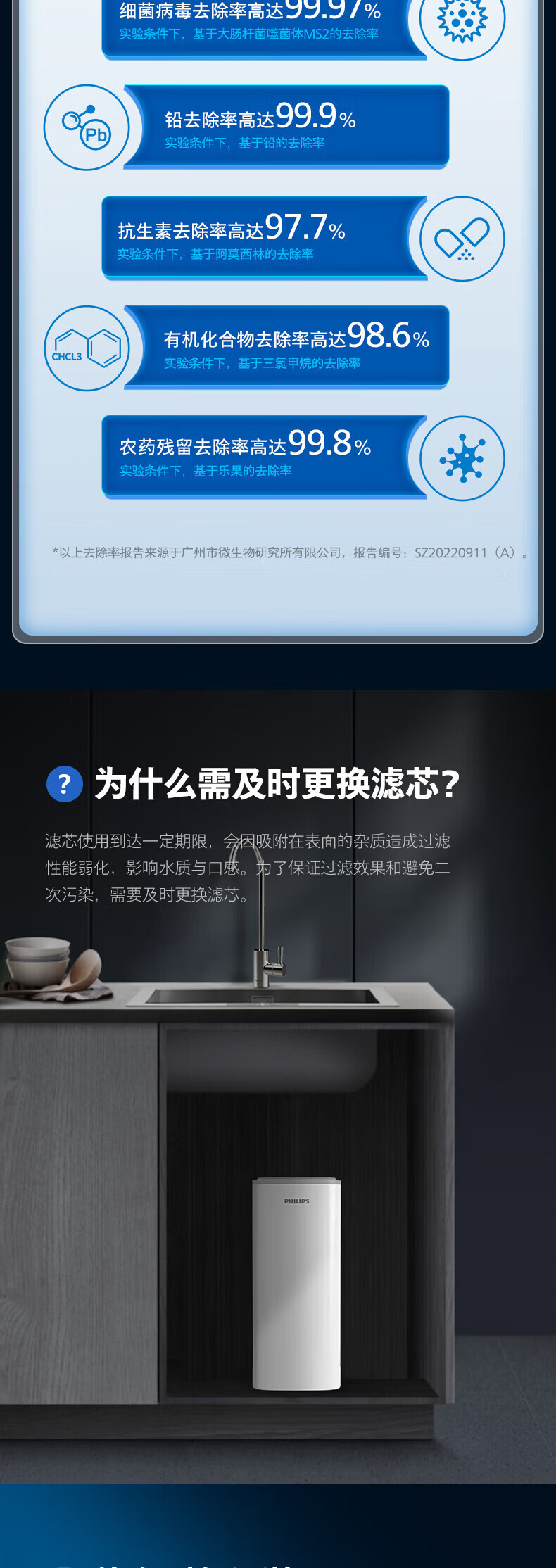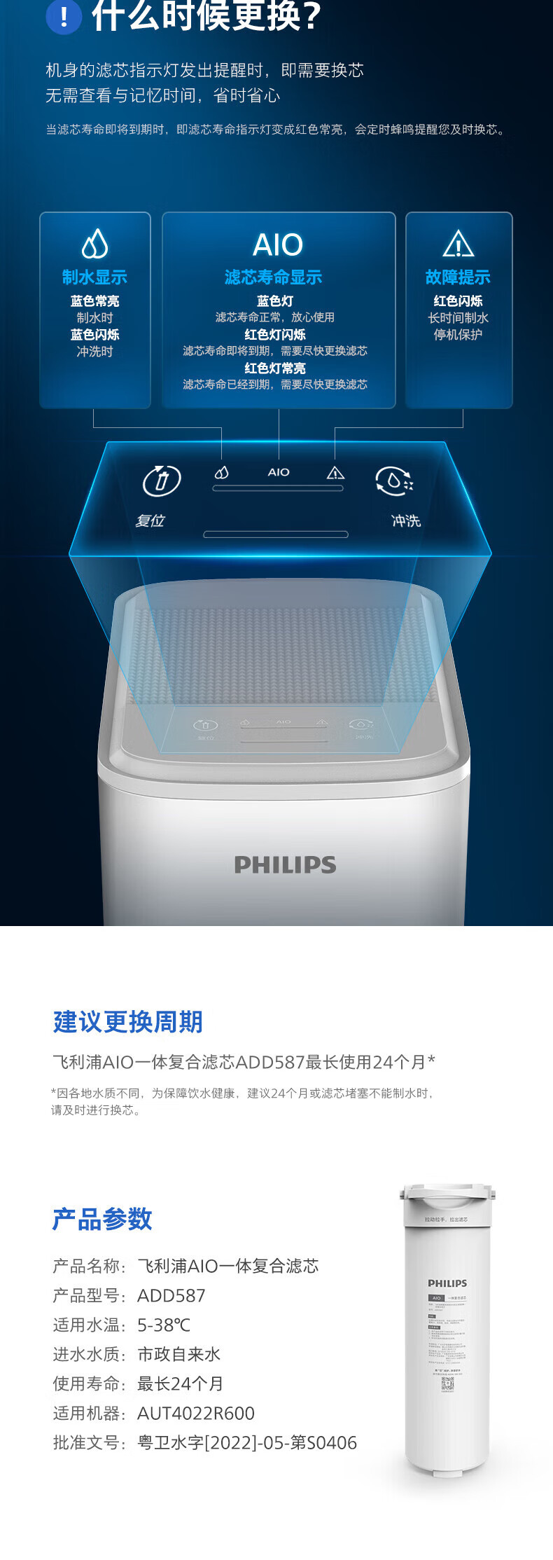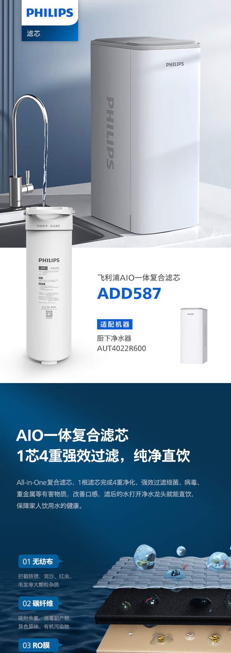 Philips (PHILIPS) household water purifier kitchen direct drinking water purifier pure water machine original AIO integrated filter element ADD587 adapted to AUT4022R600 original filter element