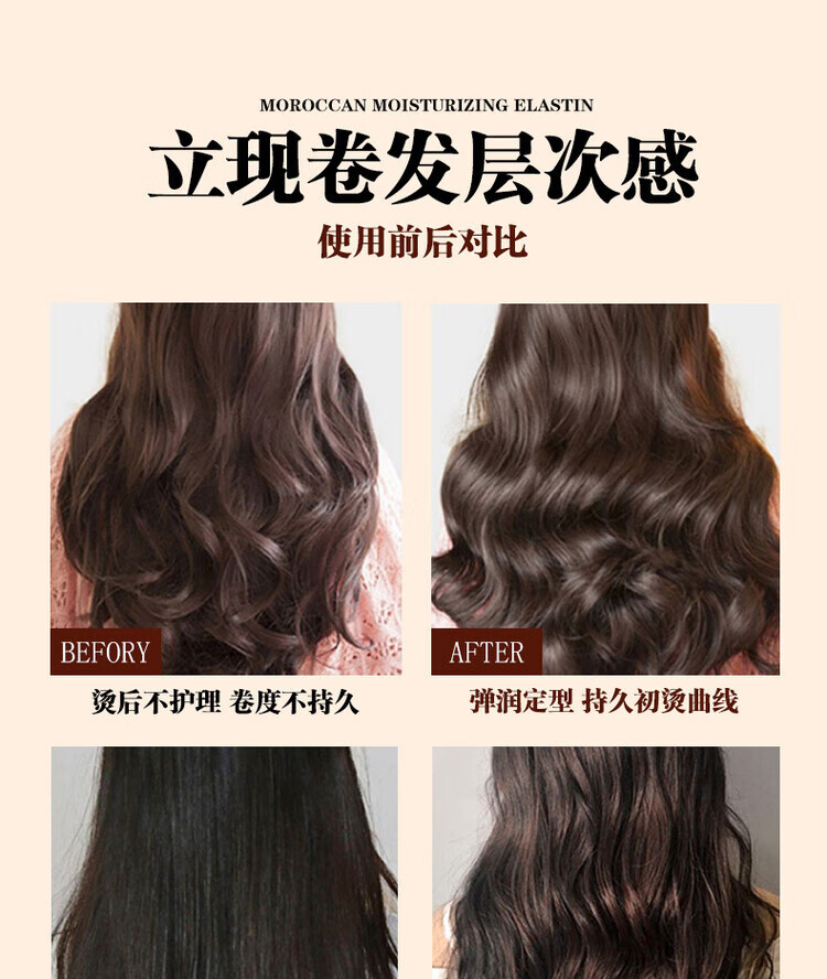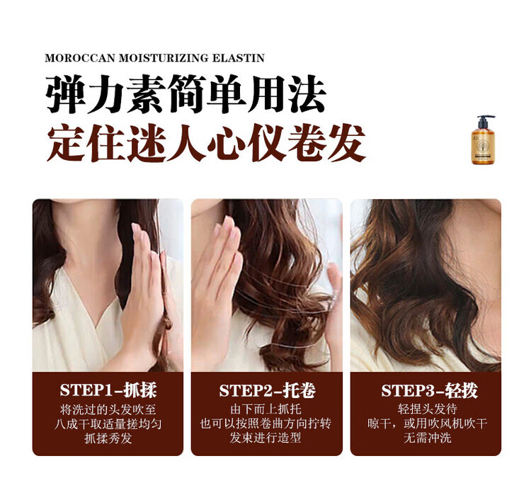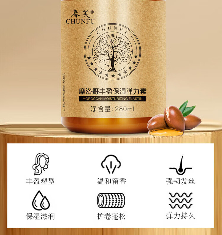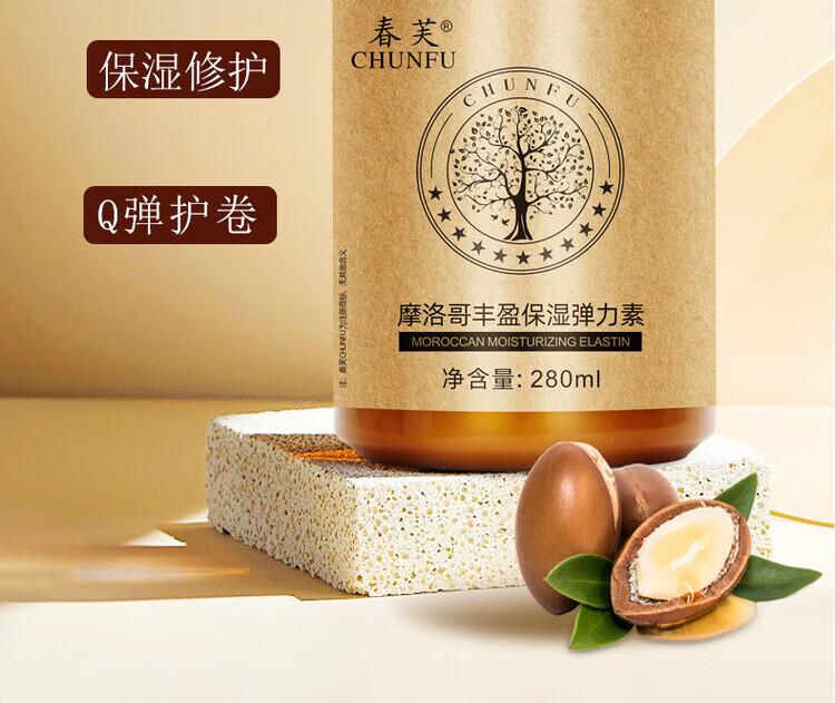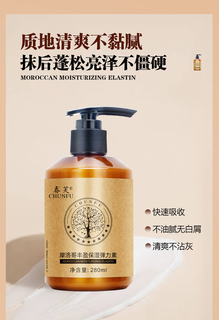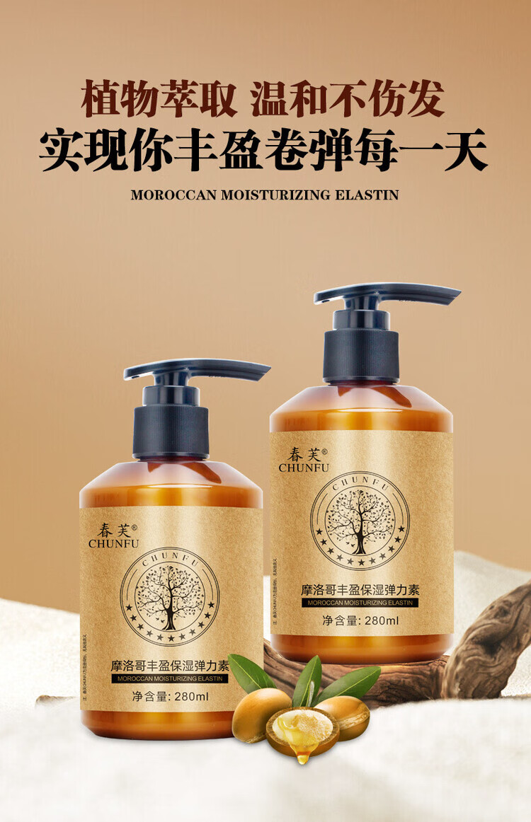 CHUNFU official Moroccan rich and moisturizing elastin for straight and curly hair, after perm care, anti-frizz, styling and fluffy Moroccan elastin 280ML