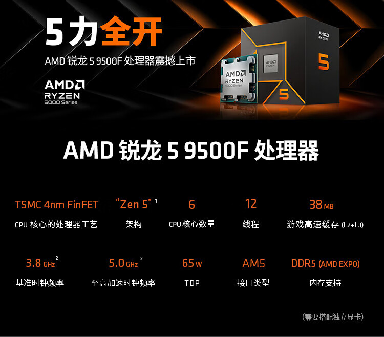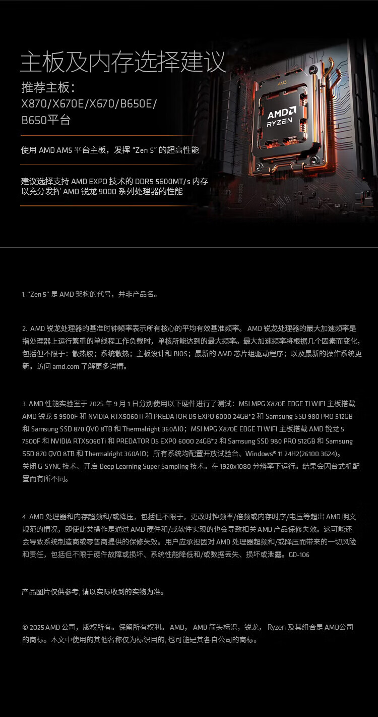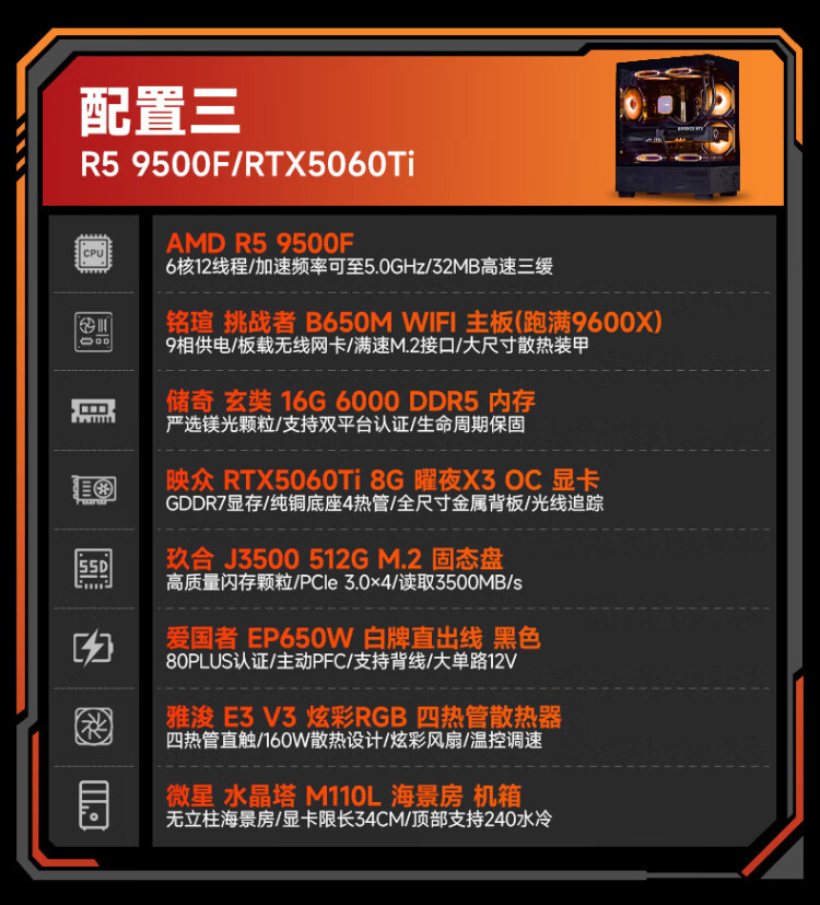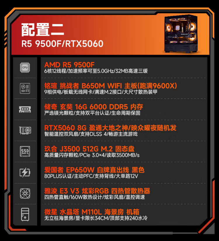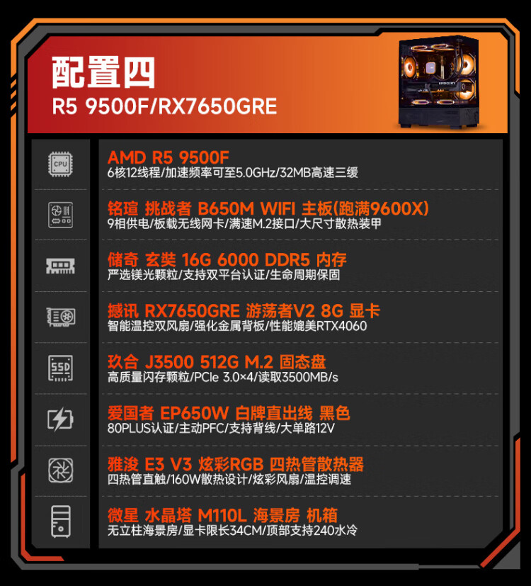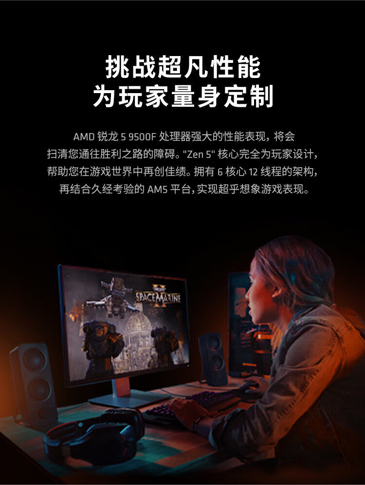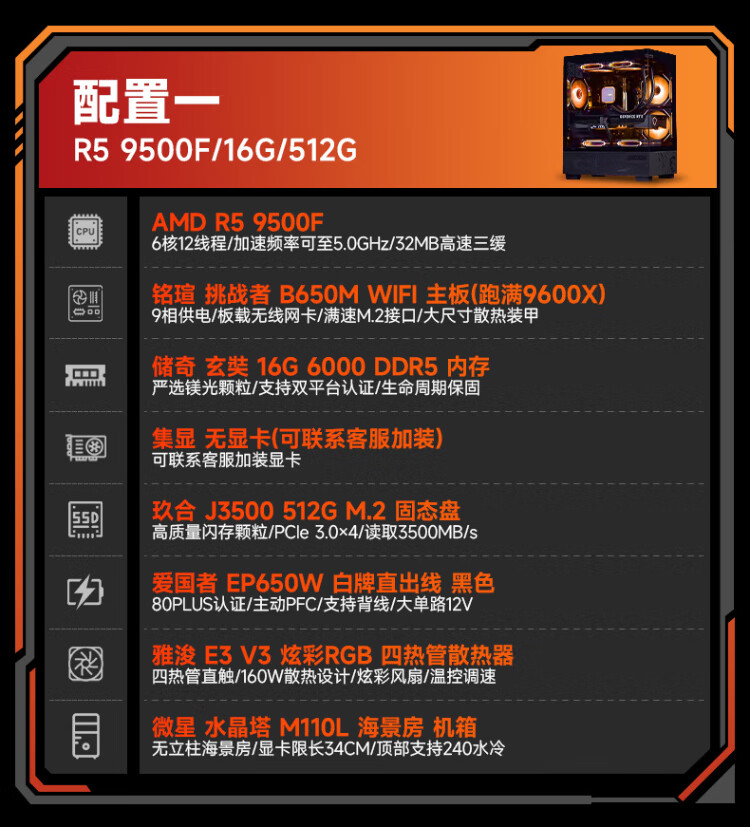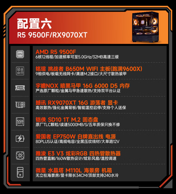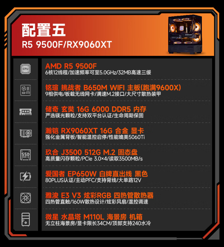 AMD Ryzen R5 9500F/7650GRE/9070GRE/5060 independent display desktop assembly machine game e-sports delta mobile computer host DIY complete machine sea view room package one 9500F丨16G丨512G丨No card