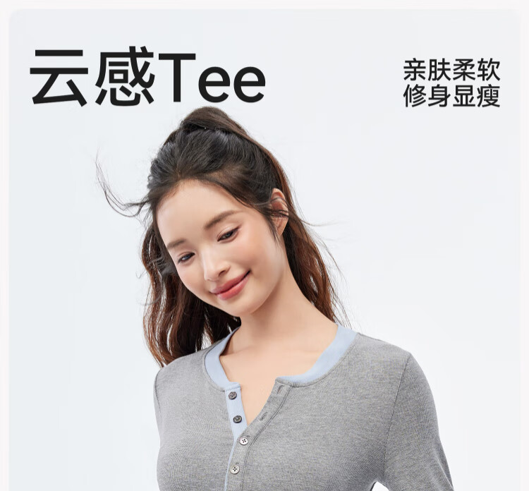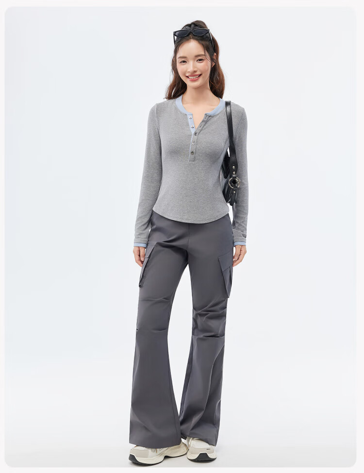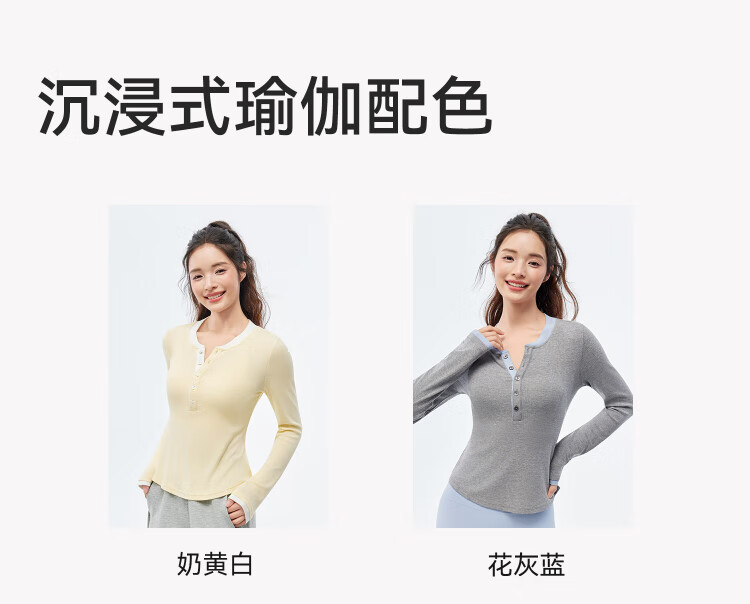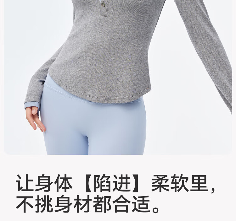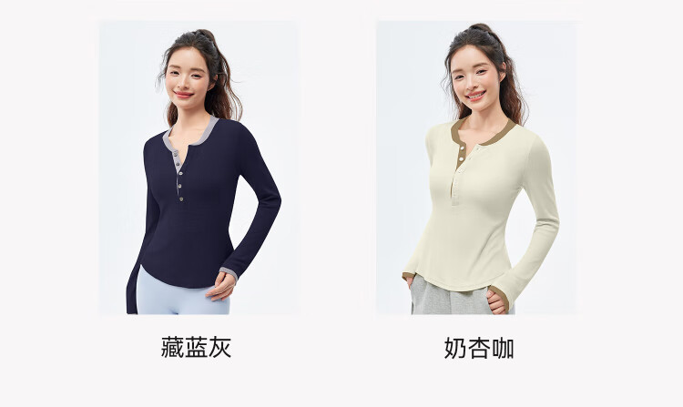 NEVER ME long-sleeved T-shirt women's Pilates slimming contrasting color yoga wear running fitness wear Henry collar bottoming shirt navy gray M