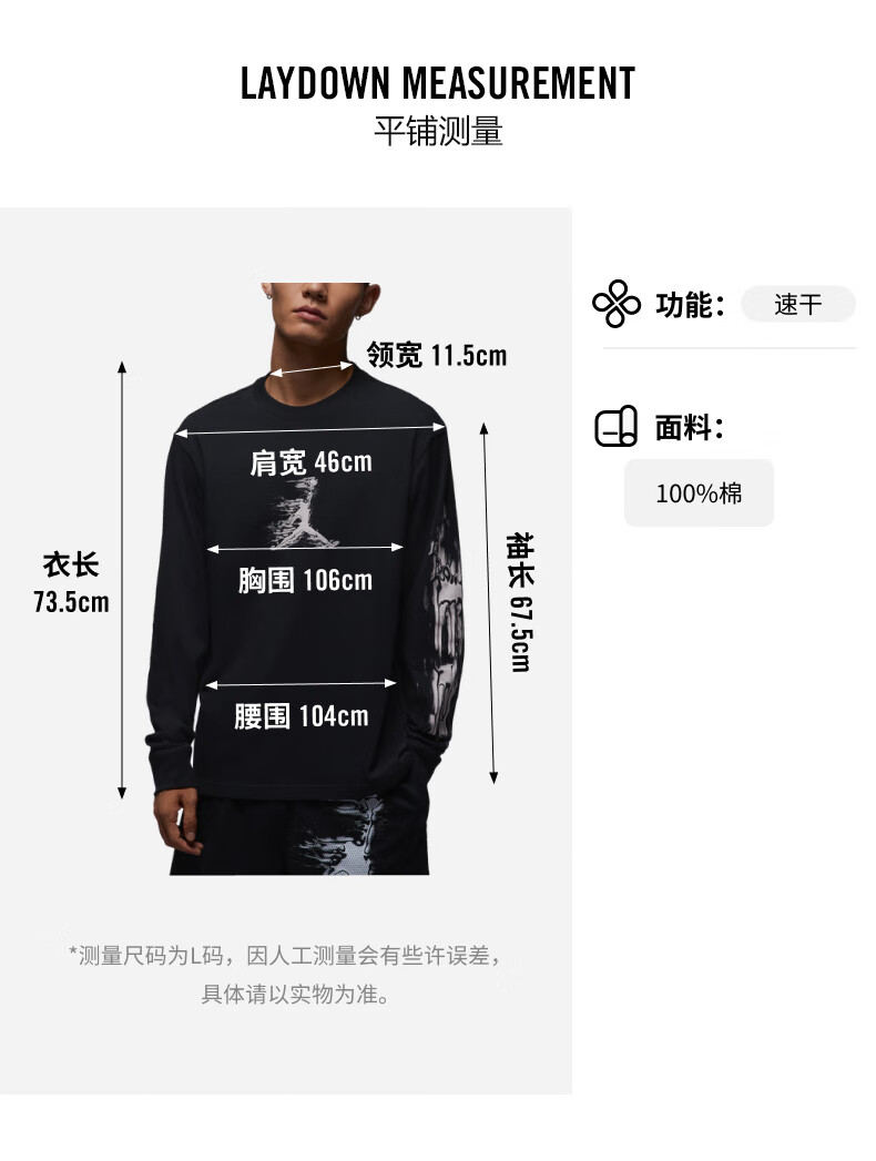 Nike Jordan men's basketball quick-drying long-sleeved T-shirt winter new pure cotton JORDAN DRI-FIT HQ9039 010 black/white 3XL