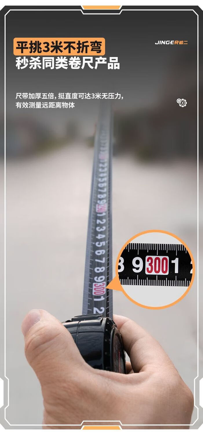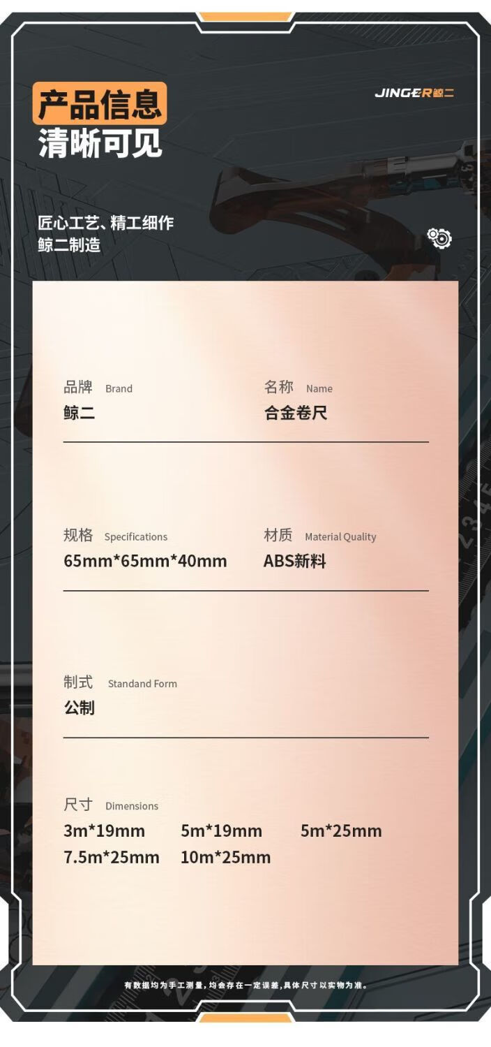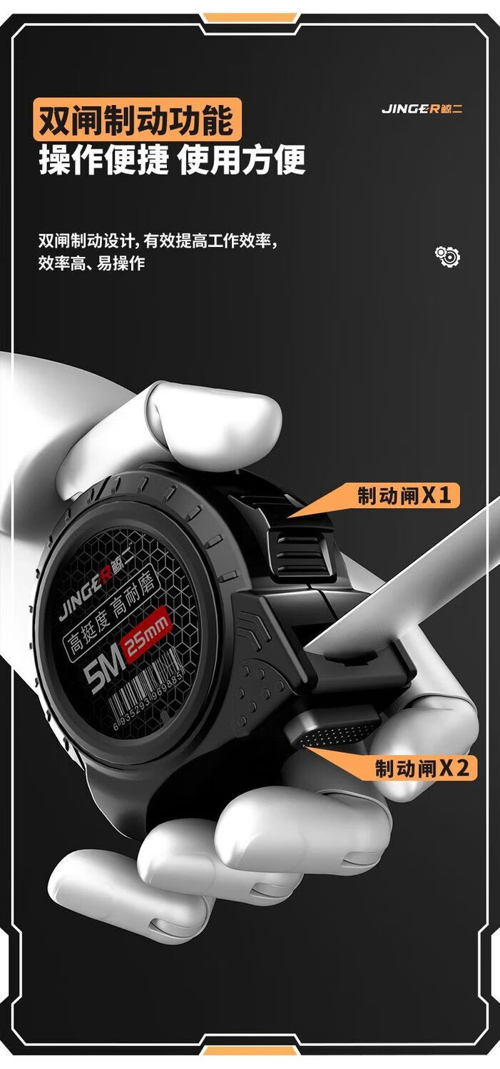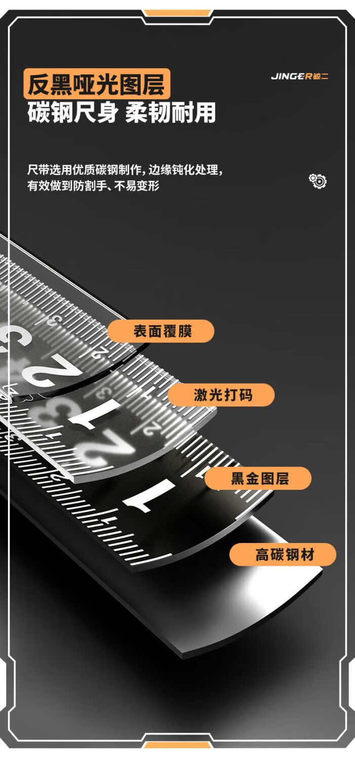Fengxi whale two tape measure 5 meters black gold widened 7.5 meters 10 meters thickened wear-resistant black ruler with box ruler meter height laser inkjet code 5 meters 25 wide flat pick 3 meters 1 package laser spraying process 0 error