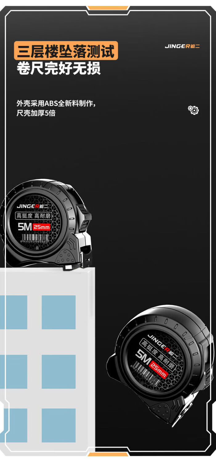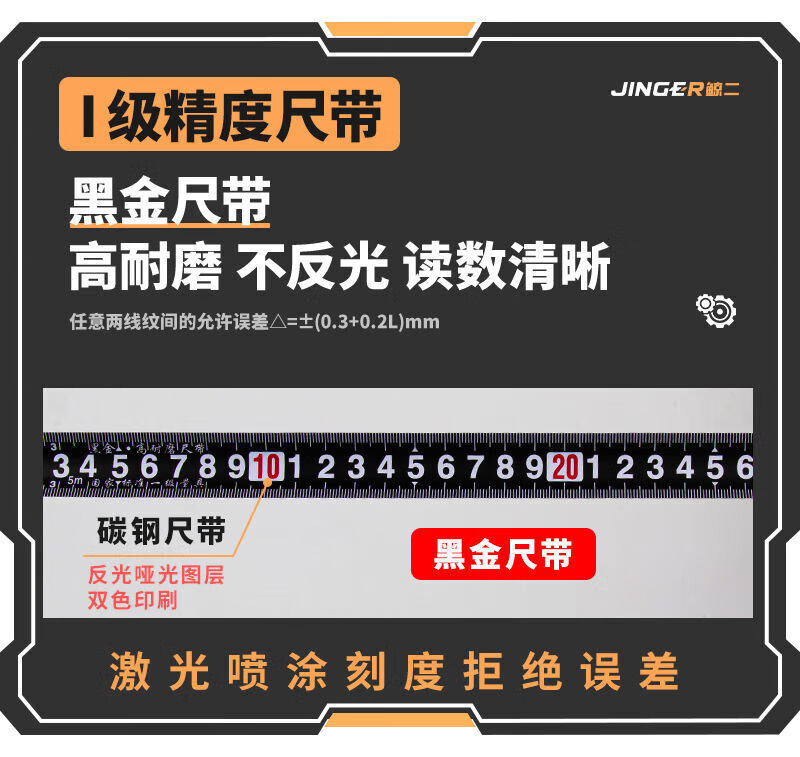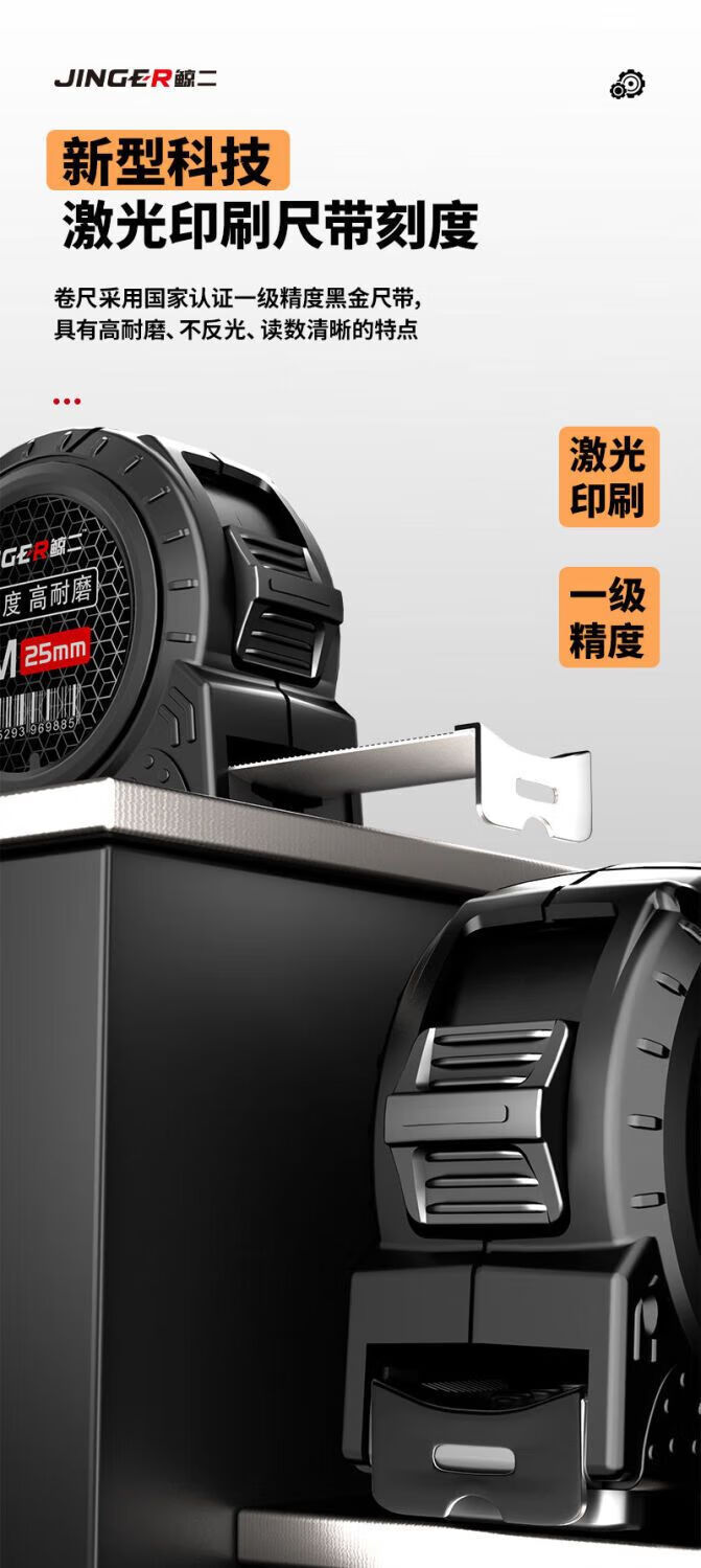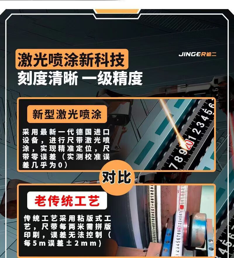 Fengxi whale two tape measure 5 meters black gold widened 7.5 meters 10 meters thickened wear-resistant black ruler with box ruler meter height laser inkjet code 5 meters 25 wide flat pick 3 meters 1 package laser spraying process 0 error
