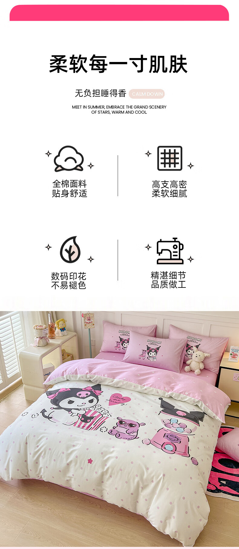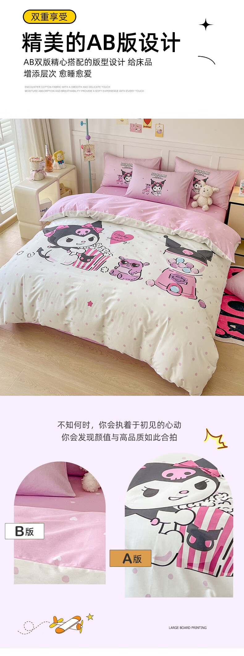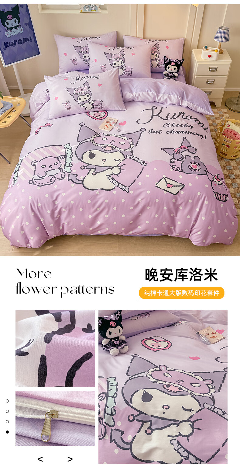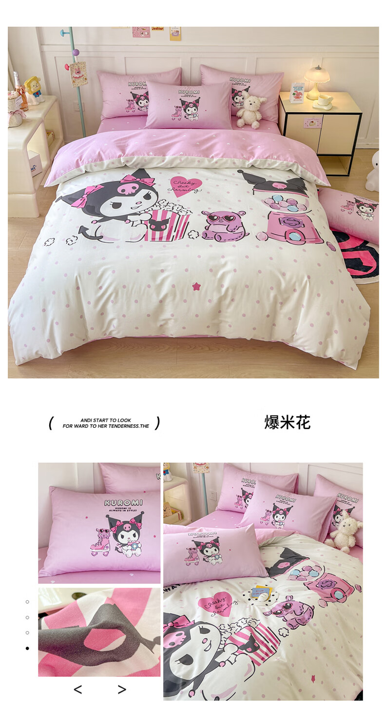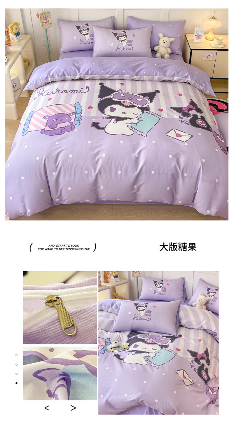 Mercury Series Home Textiles Children's Sanrio Cotton Three/Four Piece Set 120 Count Pure Cotton Cartoon Girl Printed Bed Skirt Bed Sheet Quilt Cover Sheet Large Simple - Good Night Kurome 1.8m Bed Skirt Four Piece Quilt Cover 200*230