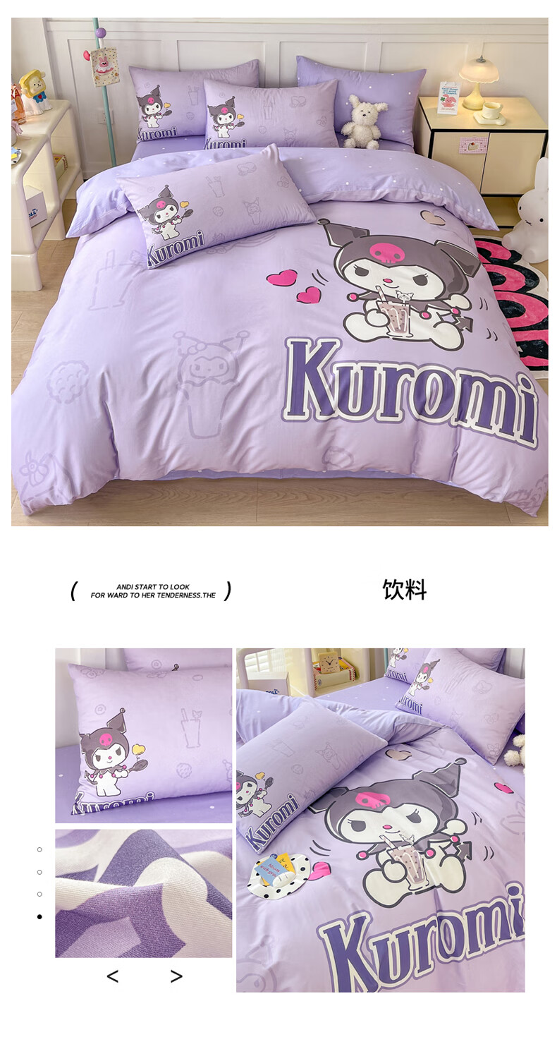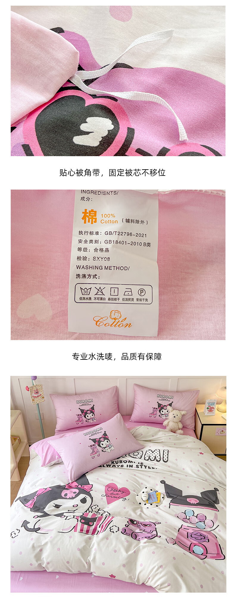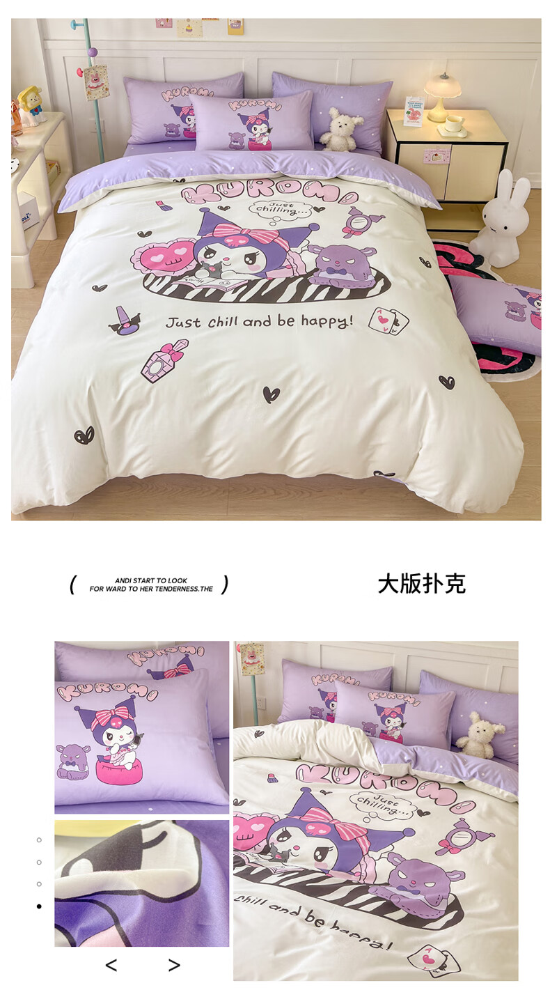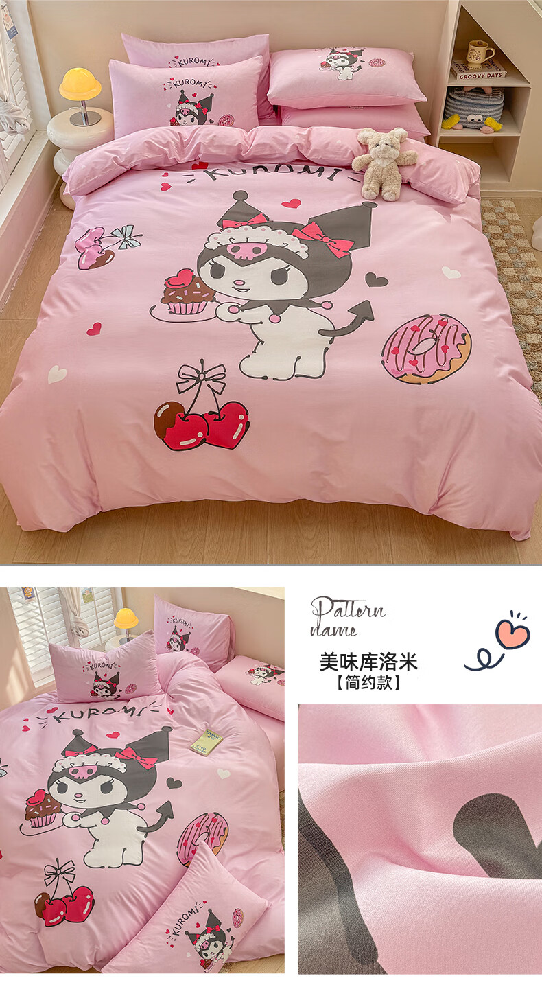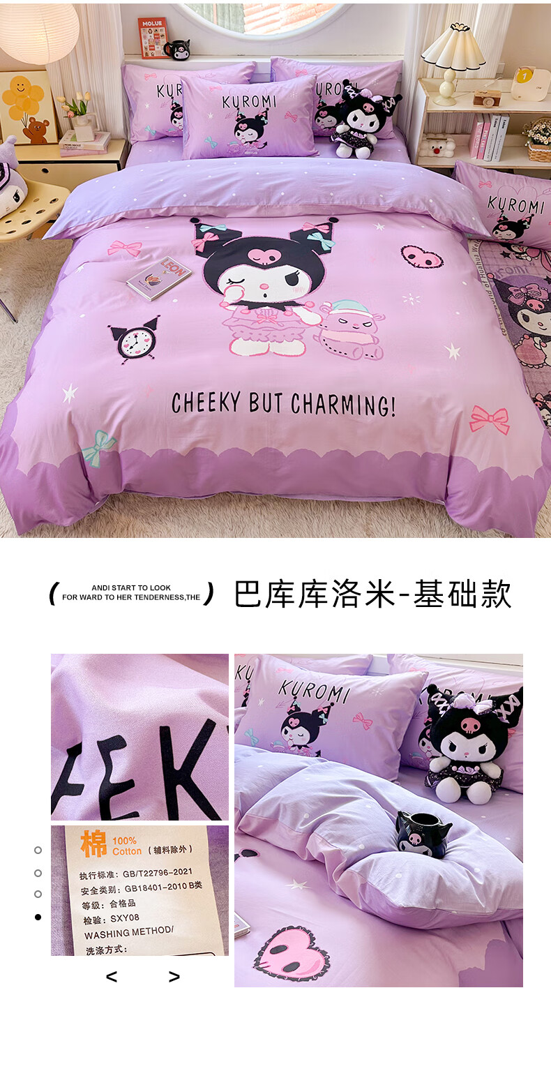 Mercury Series Home Textiles Children's Sanrio Cotton Three/Four Piece Set 120 Count Pure Cotton Cartoon Girl Printed Bed Skirt Bed Sheet Quilt Cover Sheet Large Simple - Good Night Kurome 1.8m Bed Skirt Four Piece Quilt Cover 200*230